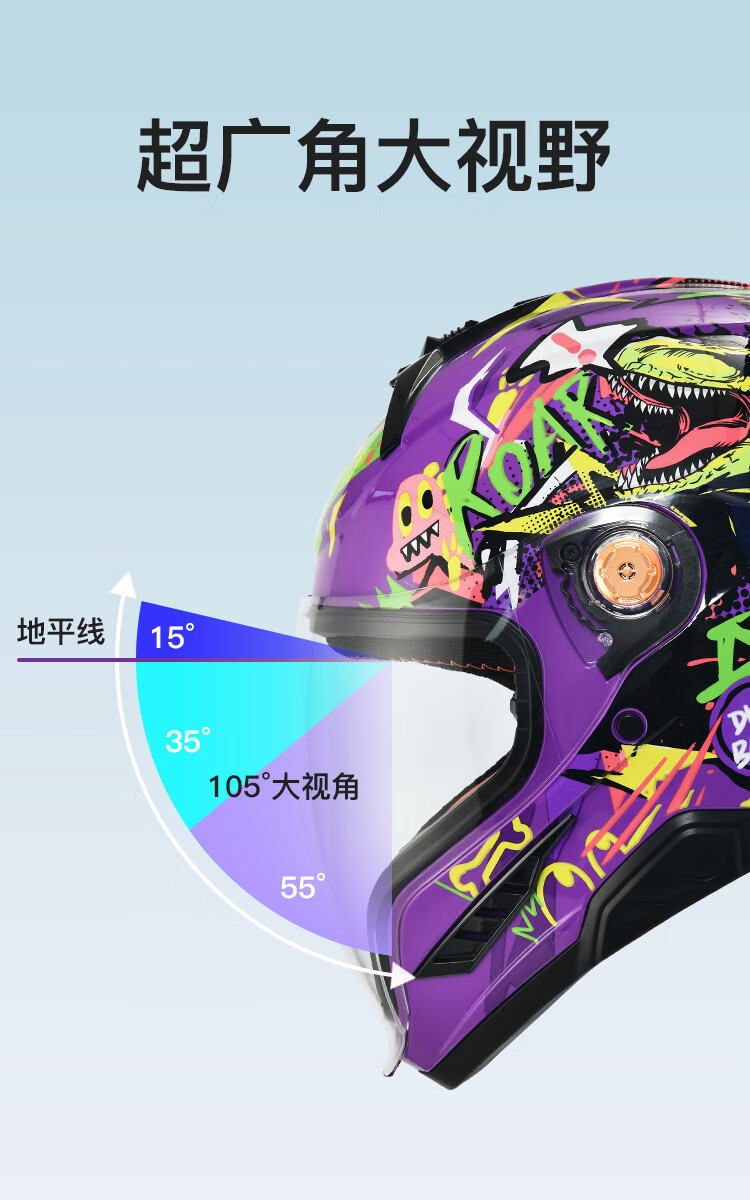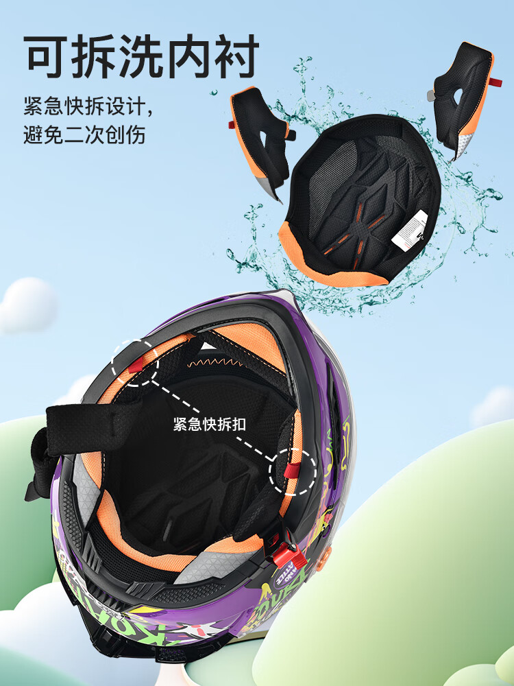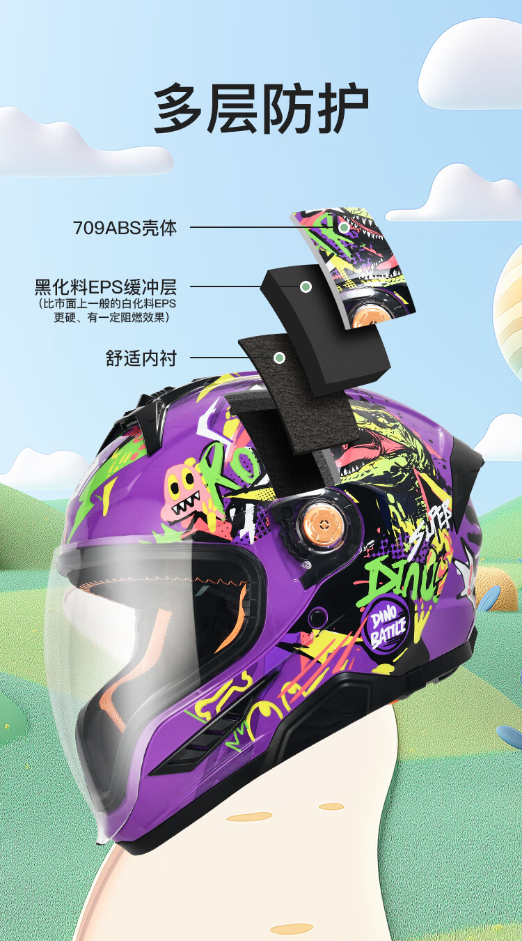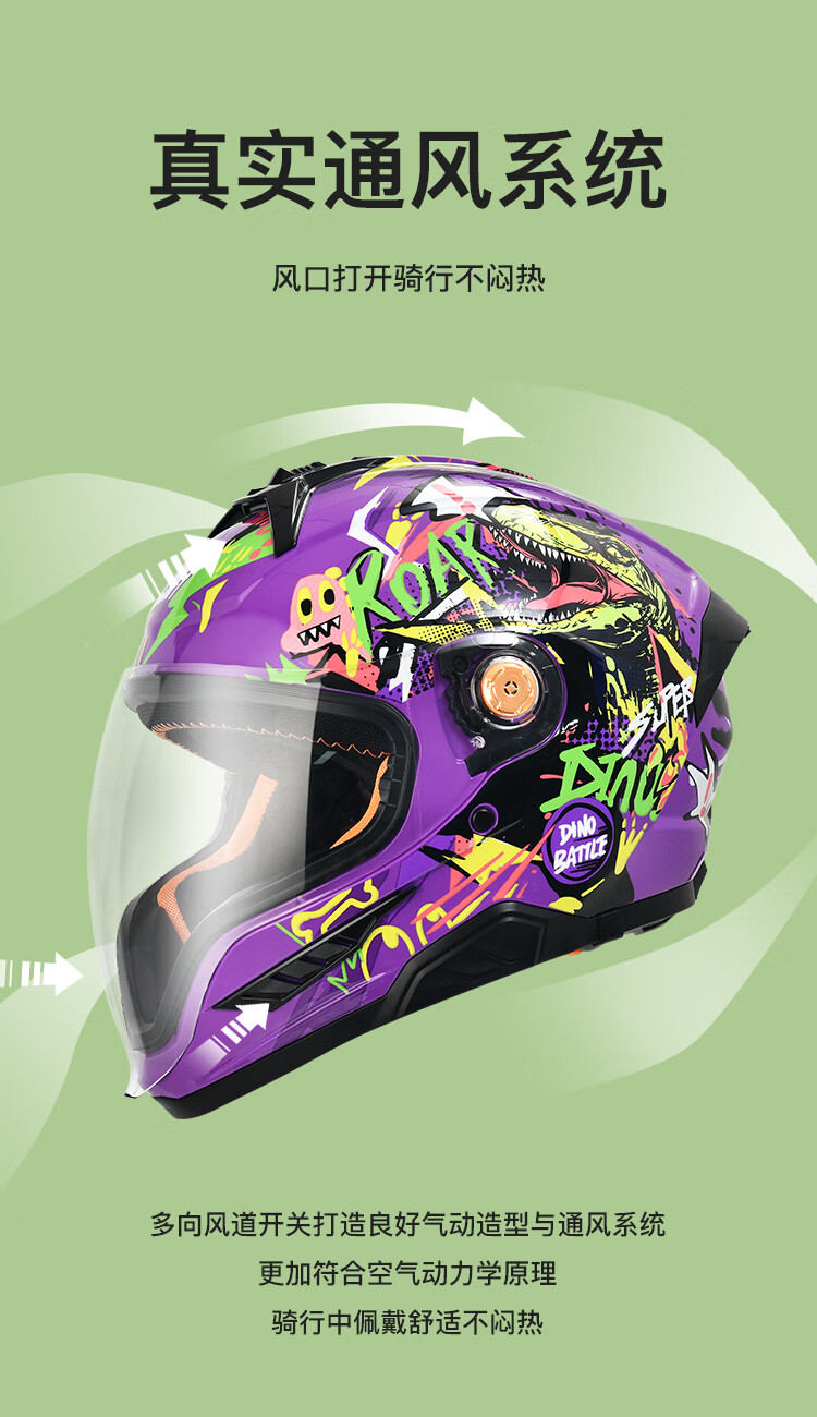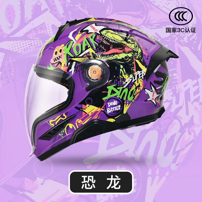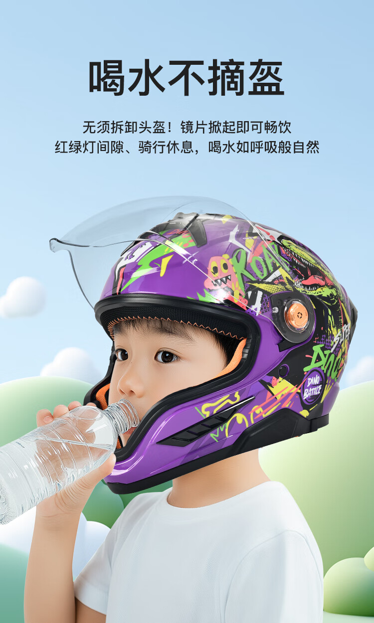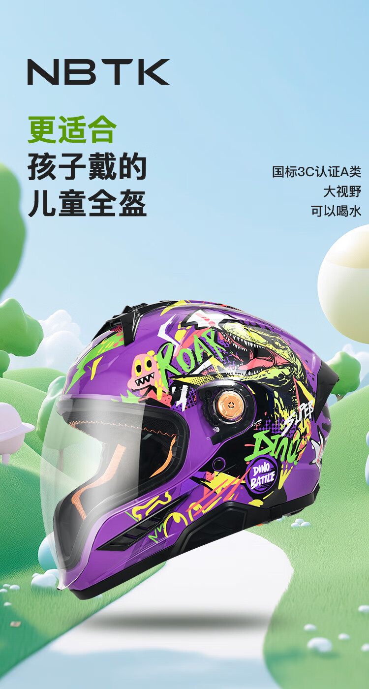 NBTK3C认证儿童头盔喝水头盔大镜片机车全盔摩托车鬼面盔亲子盔 恐龙 L(53CM-55CM)