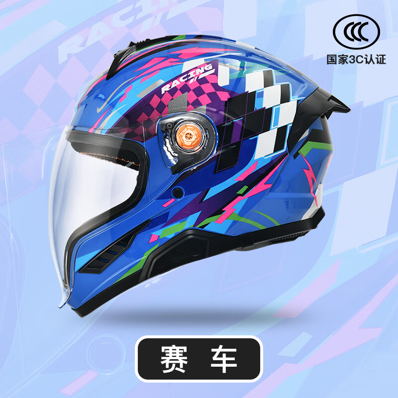 NBTK全盔后大尾翼赛盔r50仿赛街车巡航摩托车春秋3C机车头盔R50 猎焰+透明短镜片+极光蓝短镜片 M(56-58CM)