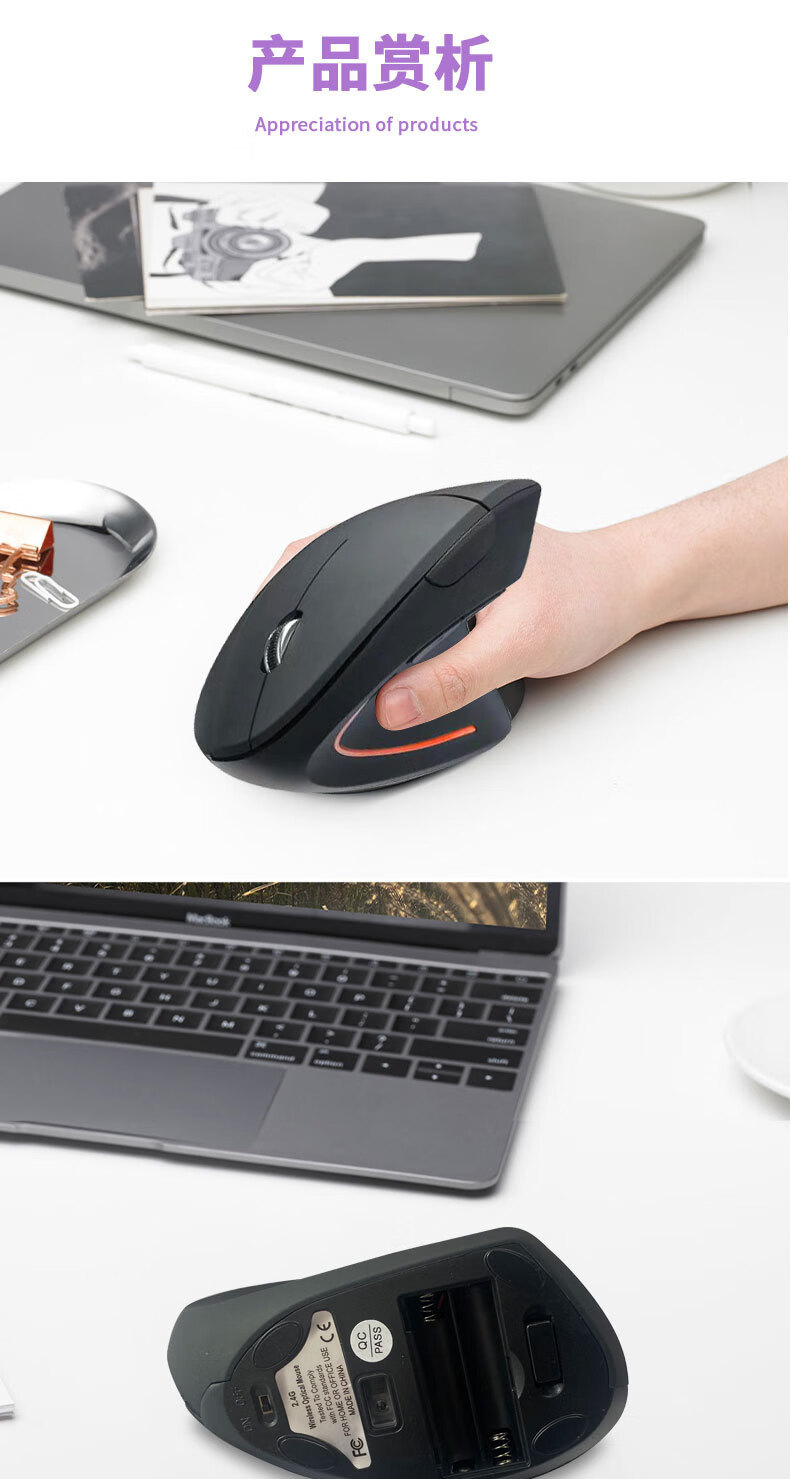 集思源充电垂直无线鼠标人体工学发光双模静音光电蓝牙鼠标 无线充电