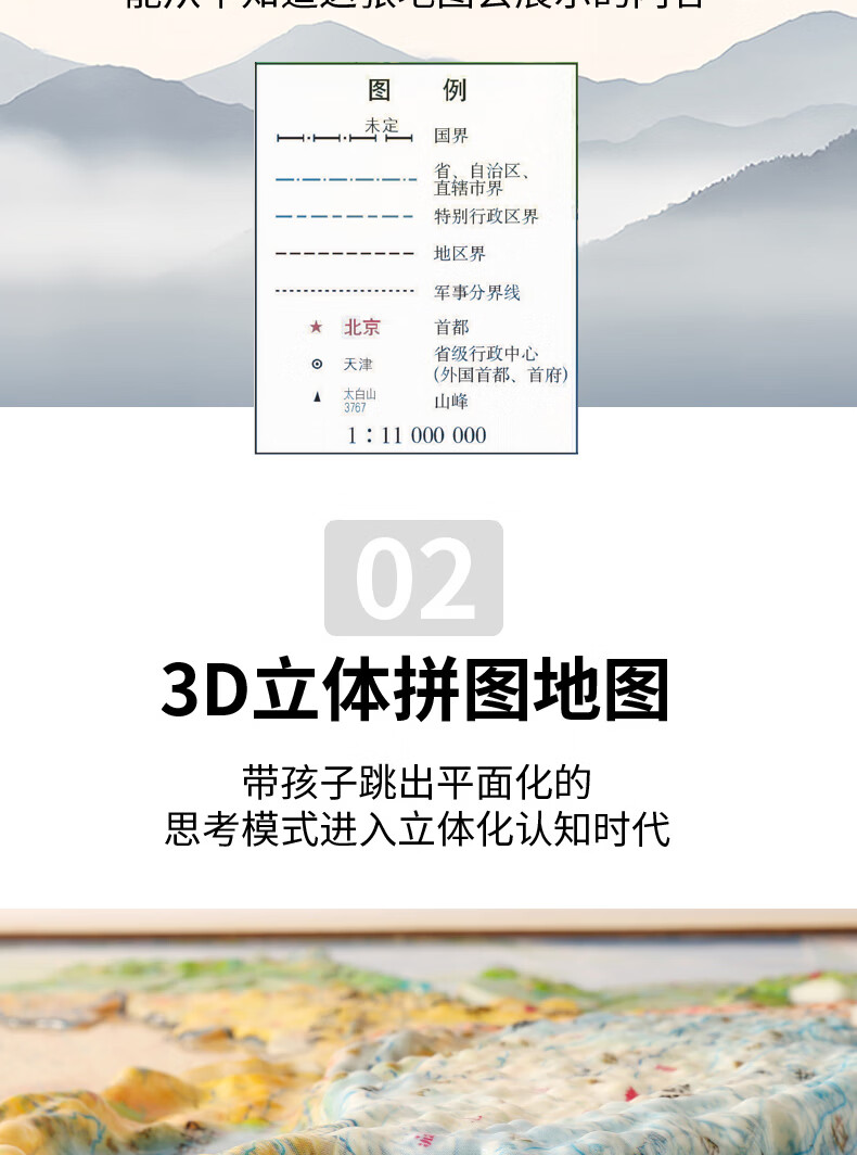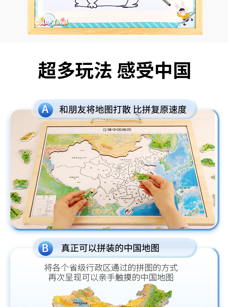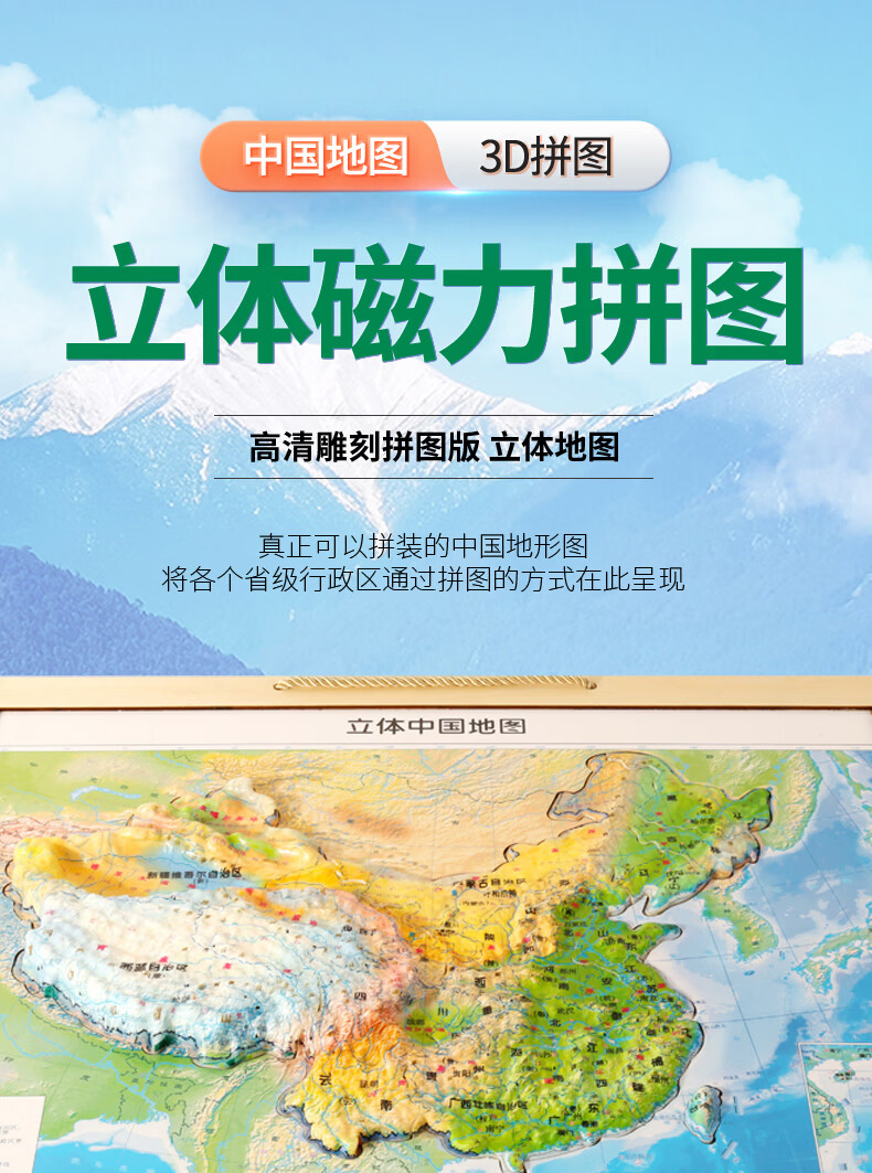 木马智慧磁力中国地图立体拼图加大加厚木质3岁以上儿童早教启智送礼玩具 中号3D立体磁力中国地图拼图
