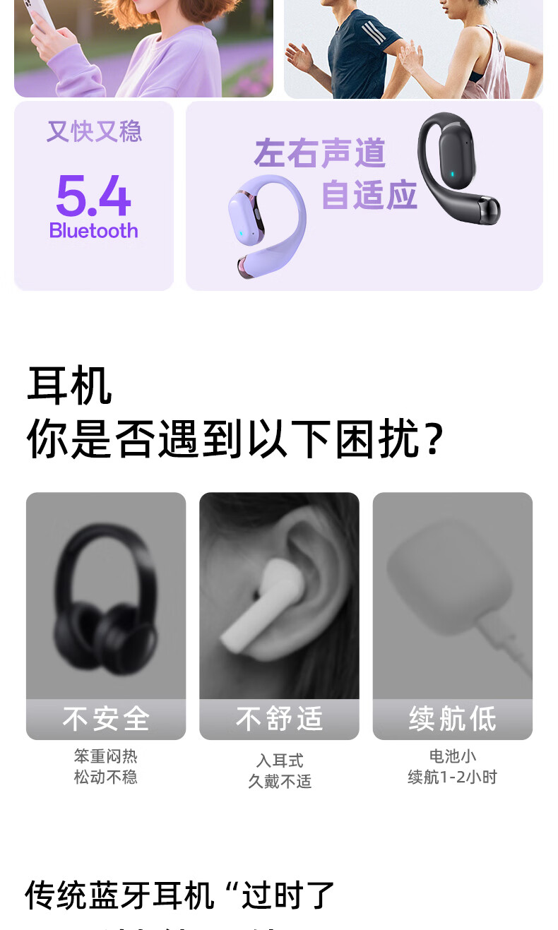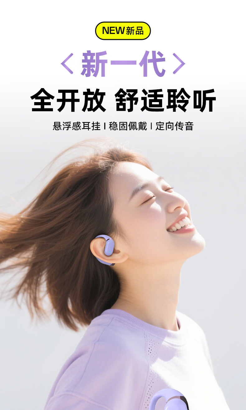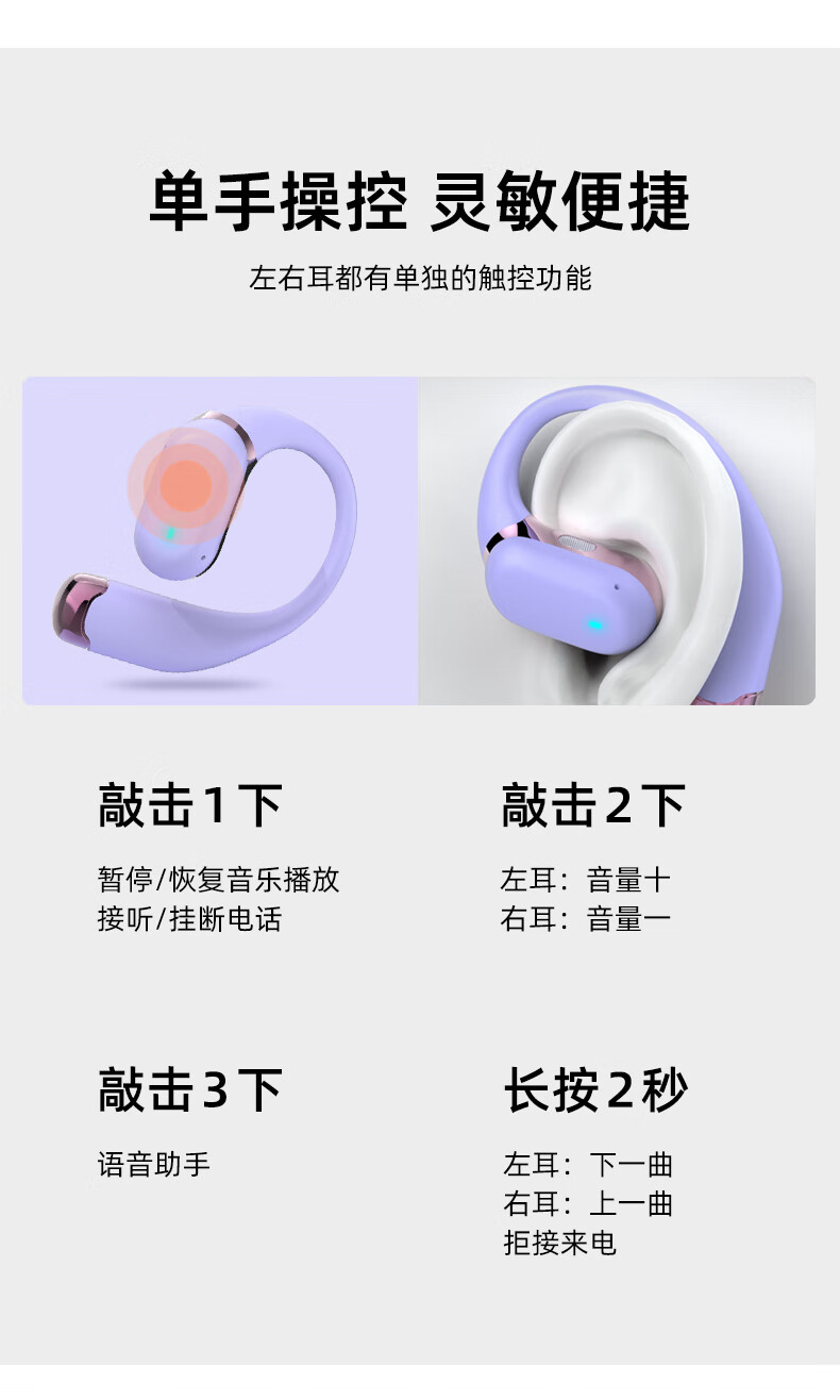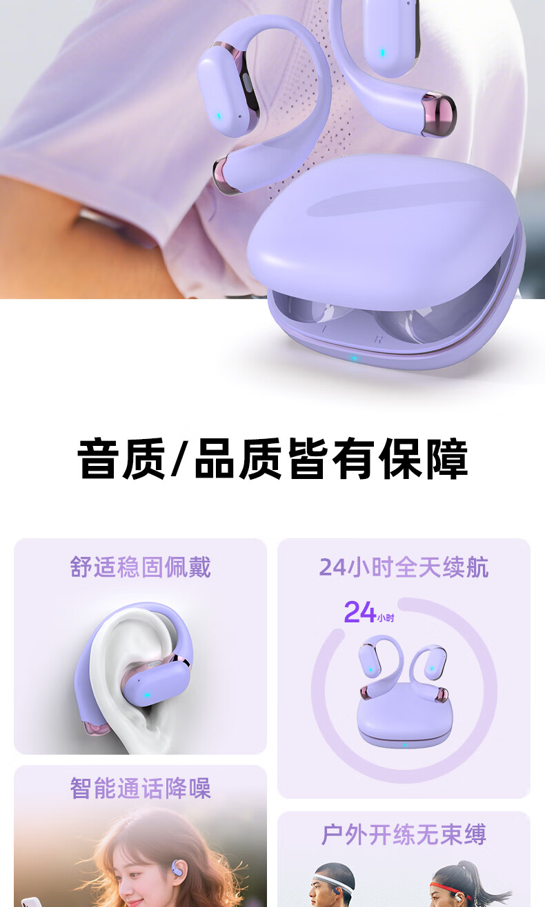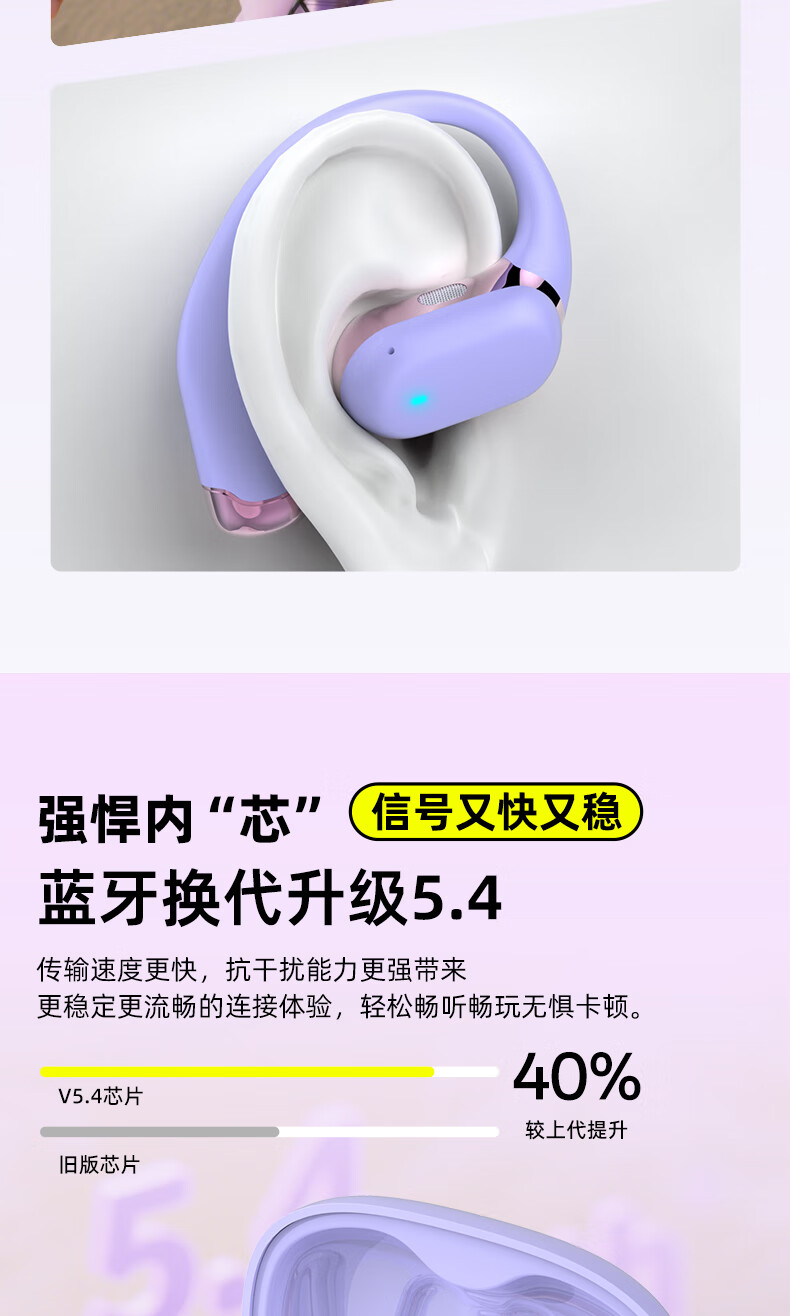 BONETIME骨时Z3蓝牙耳机挂耳式不入耳2025新款运动耳机超长续航耳挂式耳机防水健身日常通勤高音质无线耳机 【顶配版】流光紫-舒适不漏音+环绕音效+超长续航