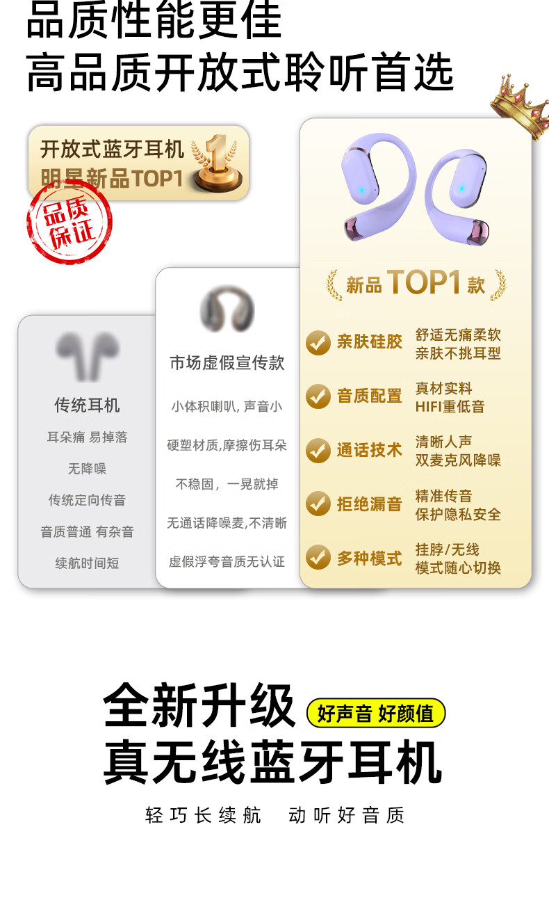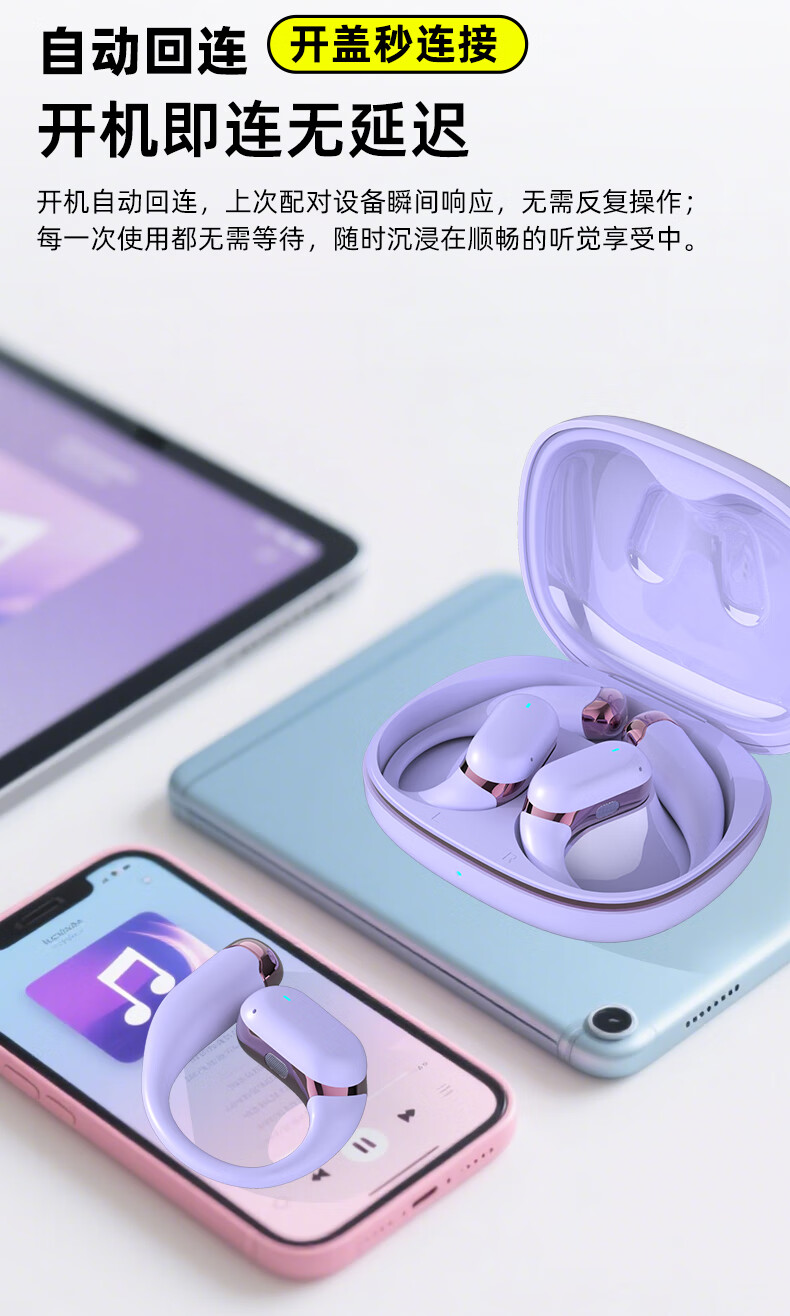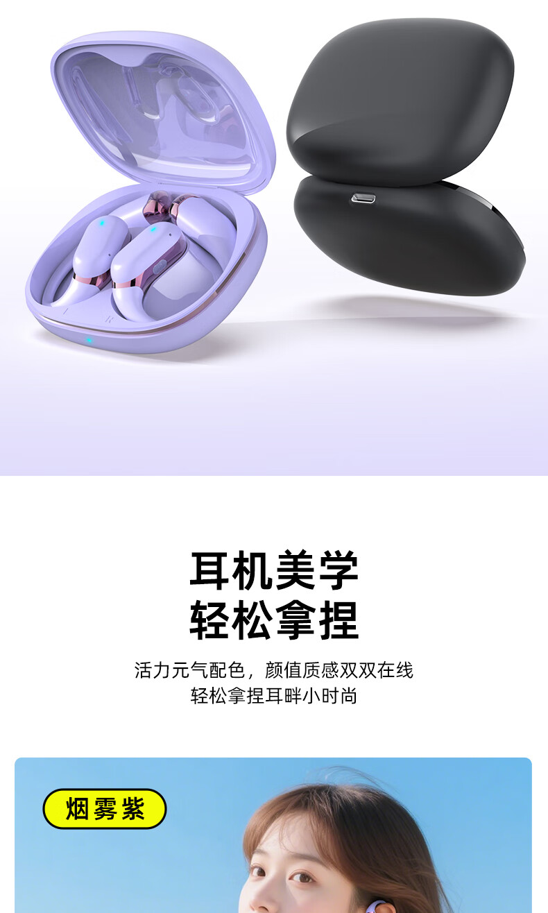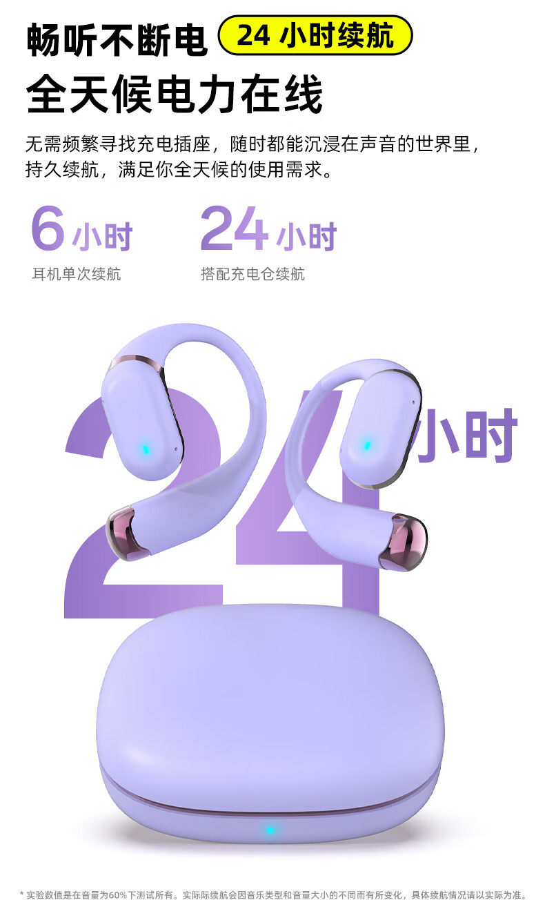 BONETIME骨时Z3蓝牙耳机挂耳式不入耳2025新款运动耳机超长续航耳挂式耳机防水健身日常通勤高音质无线耳机 【顶配版】流光紫-舒适不漏音+环绕音效+超长续航