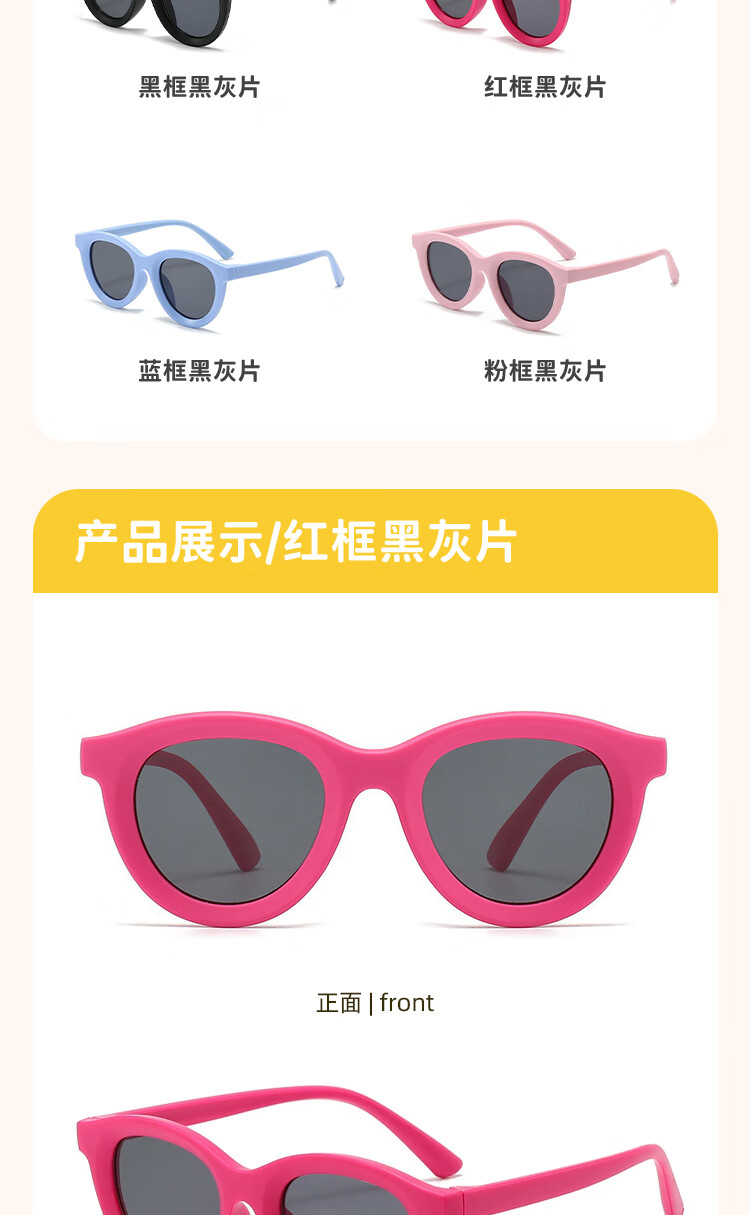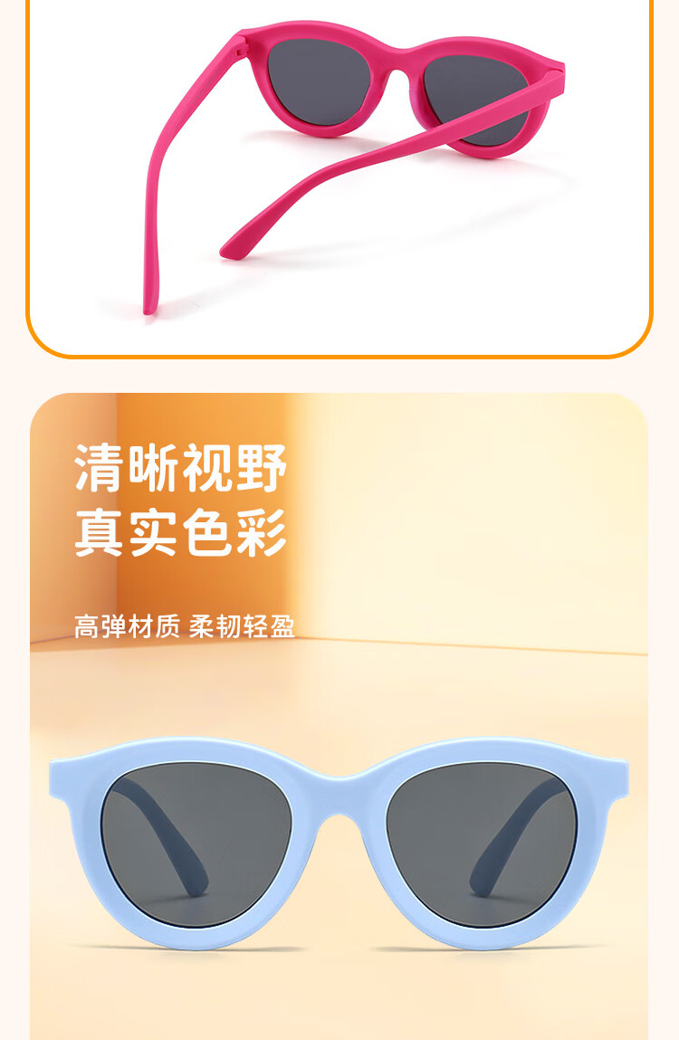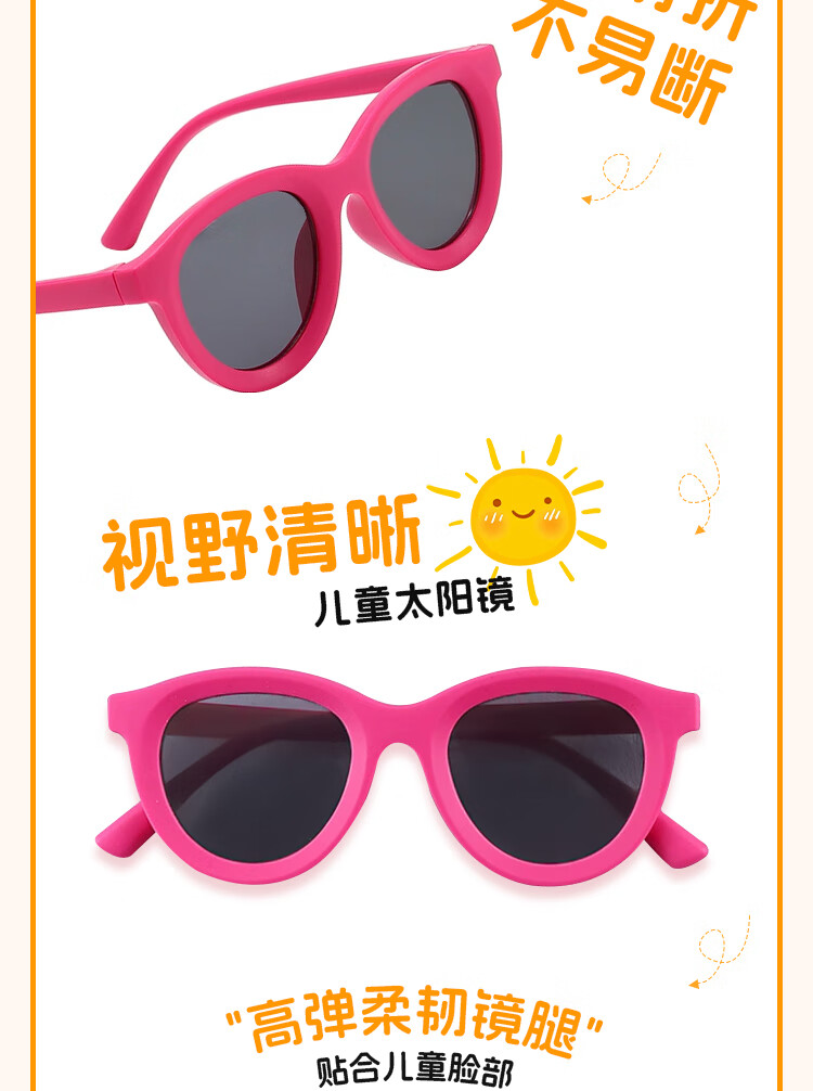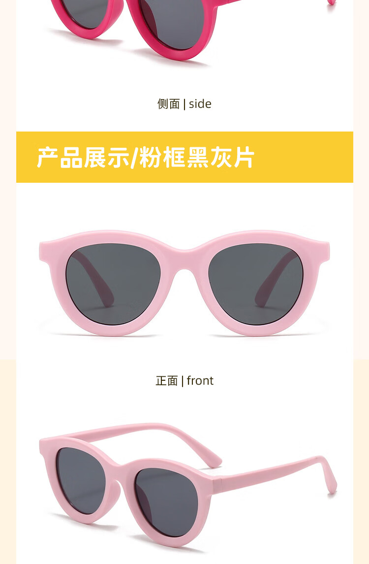 米奇啵啵糖果派对太阳镜 儿童圆框 男女童 防UV400 可爱高弹镜腿 宝宝墨镜 粉框黑灰片