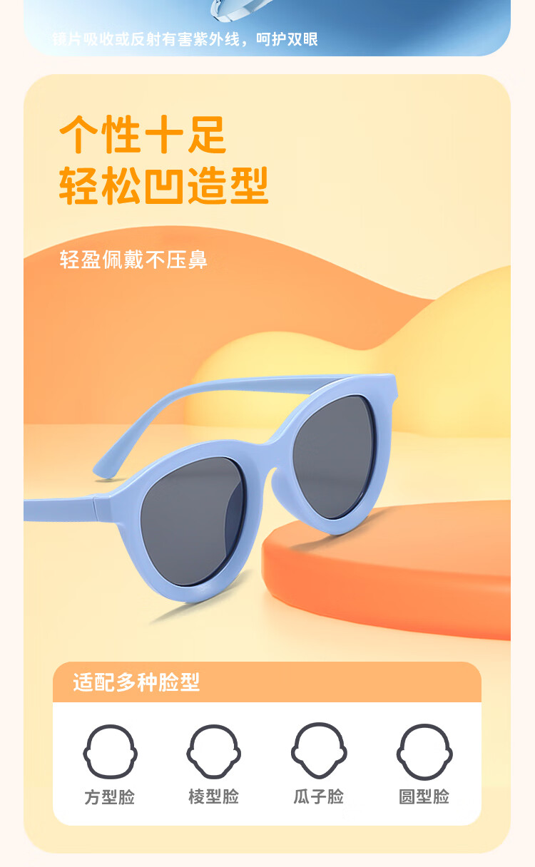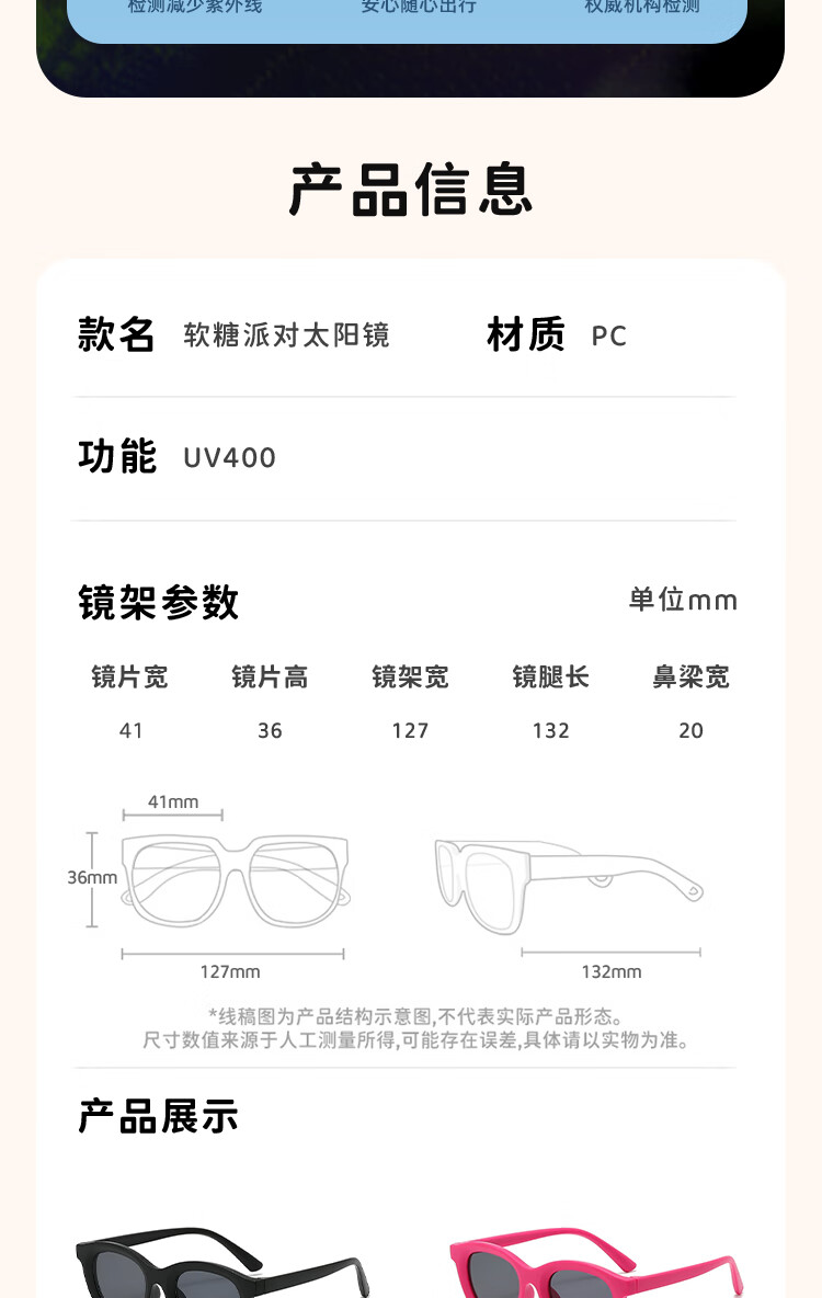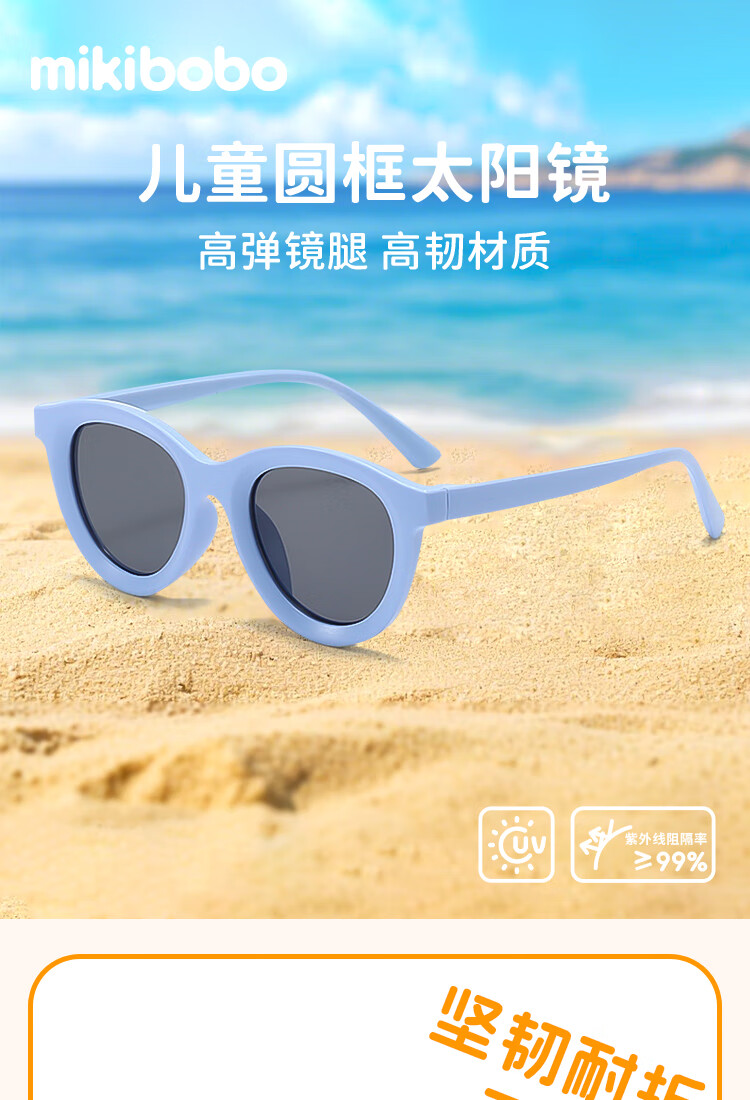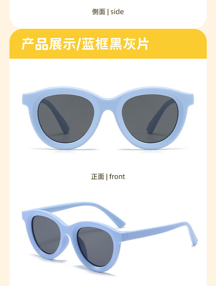米奇啵啵糖果派对太阳镜 儿童圆框 男女童 防UV400 可爱高弹镜腿 宝宝墨镜 粉框黑灰片