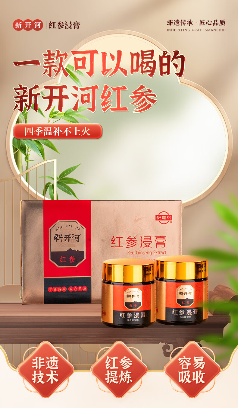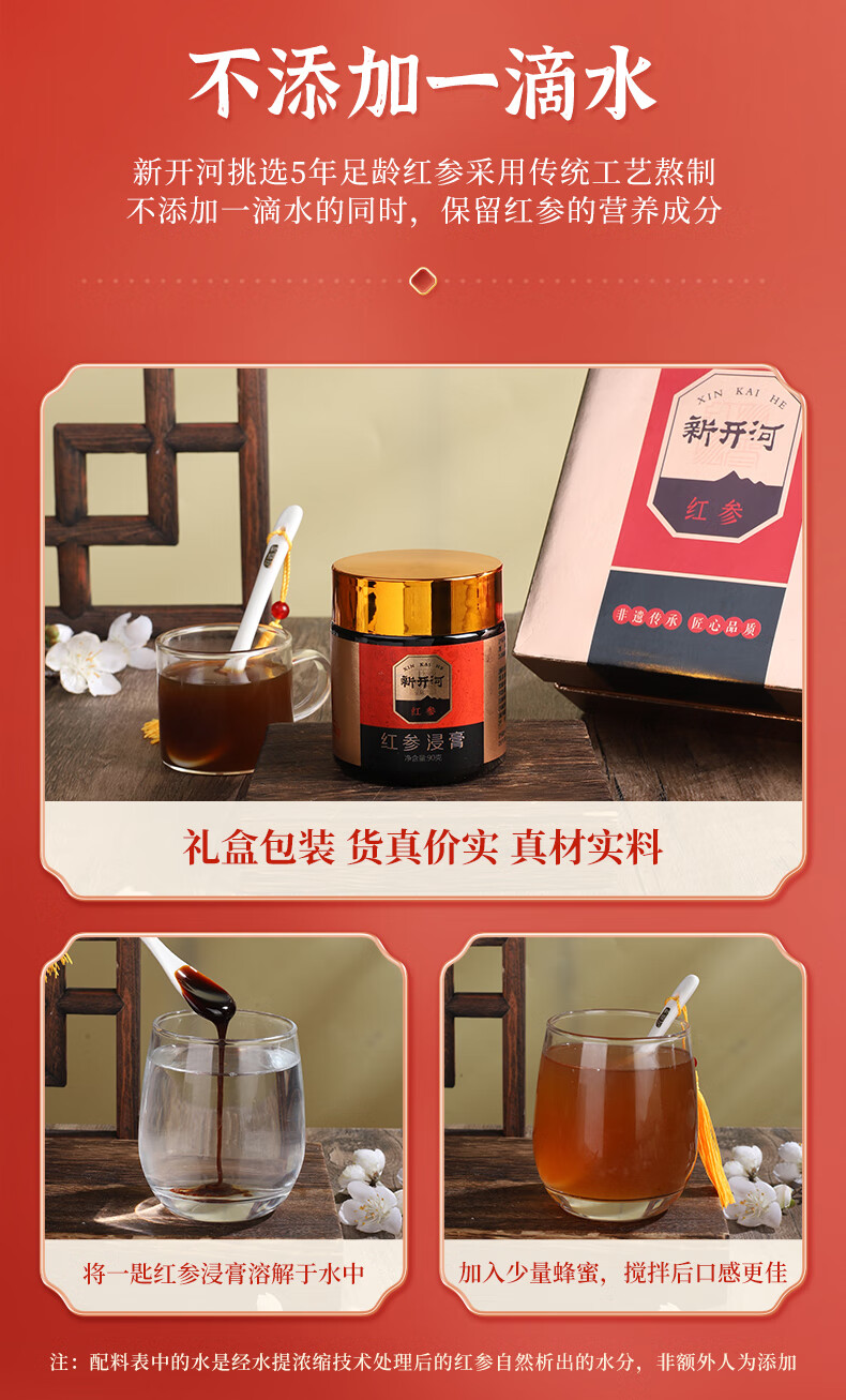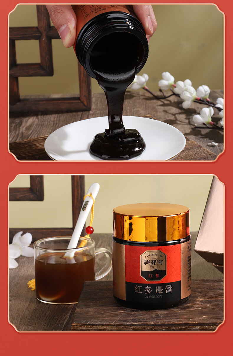 新开河红参浸膏5年根吉林长白山红参浓缩液 泡水送长辈礼盒送礼90g*2瓶 【礼盒装】90g*2瓶