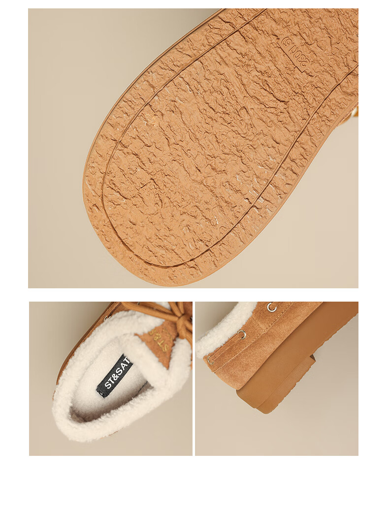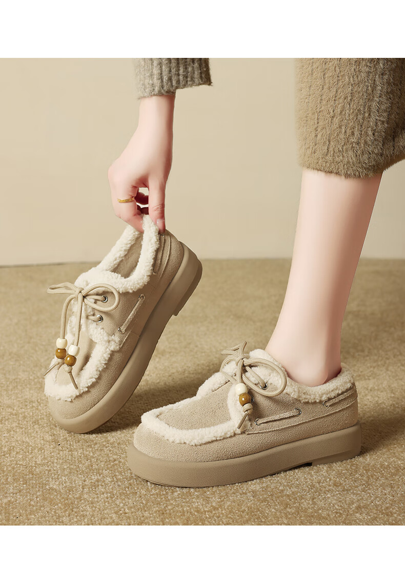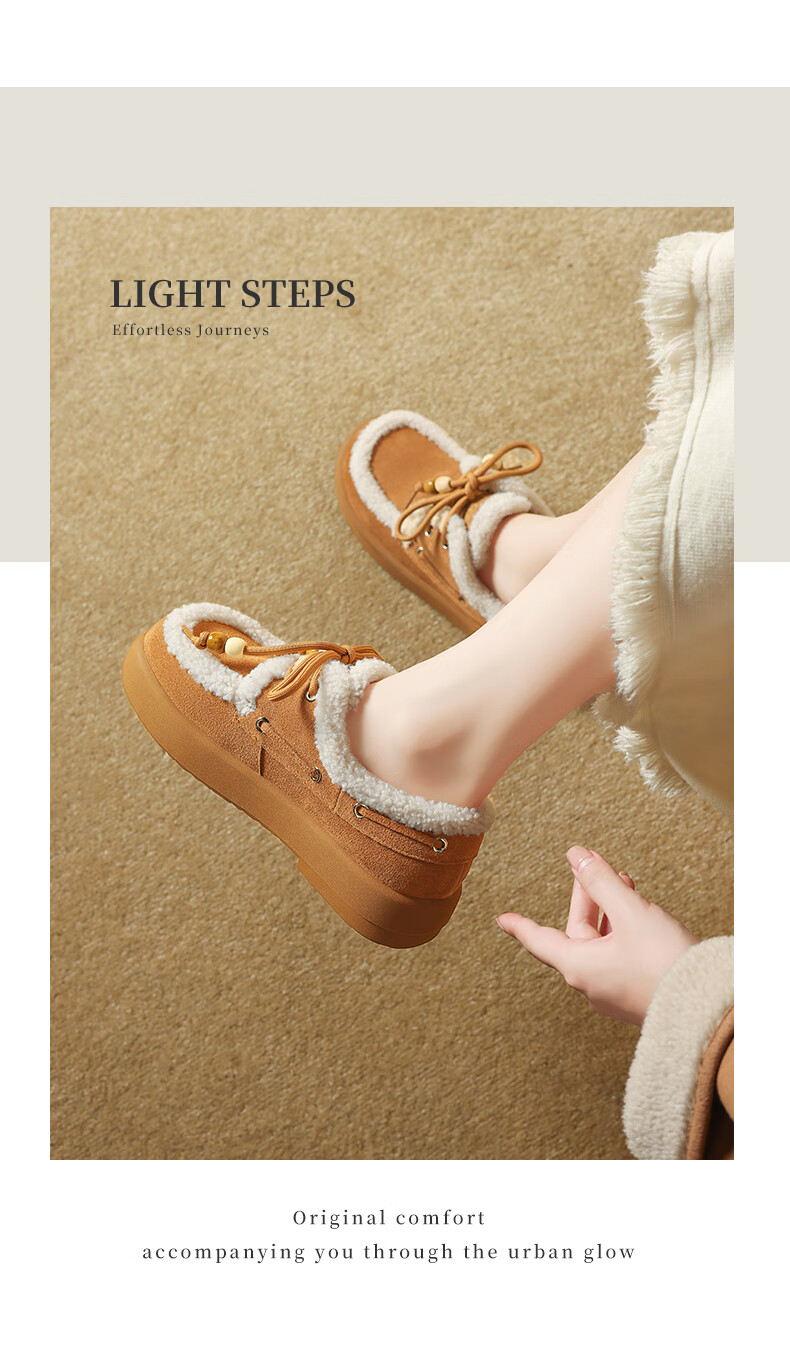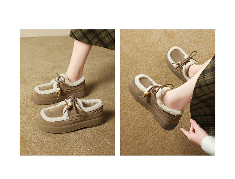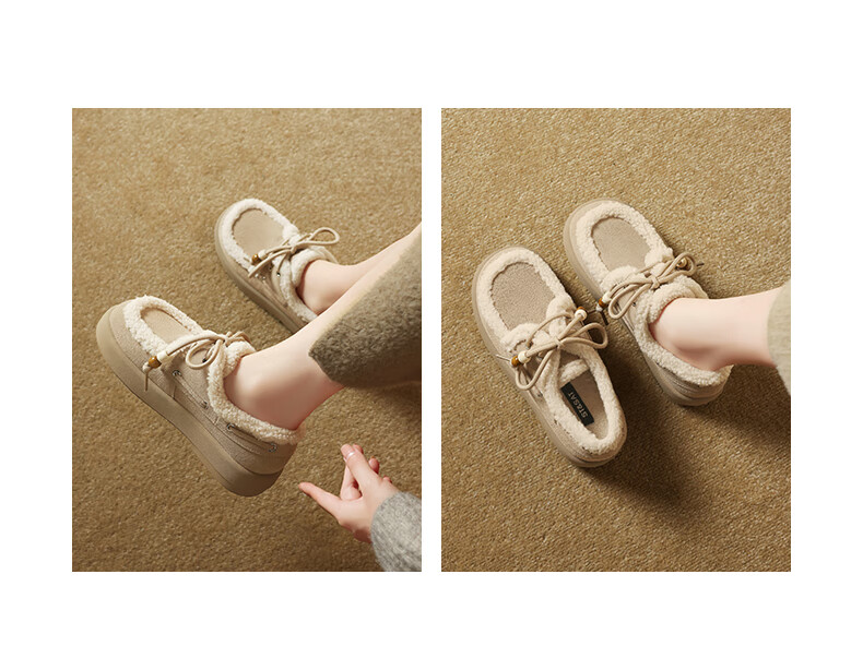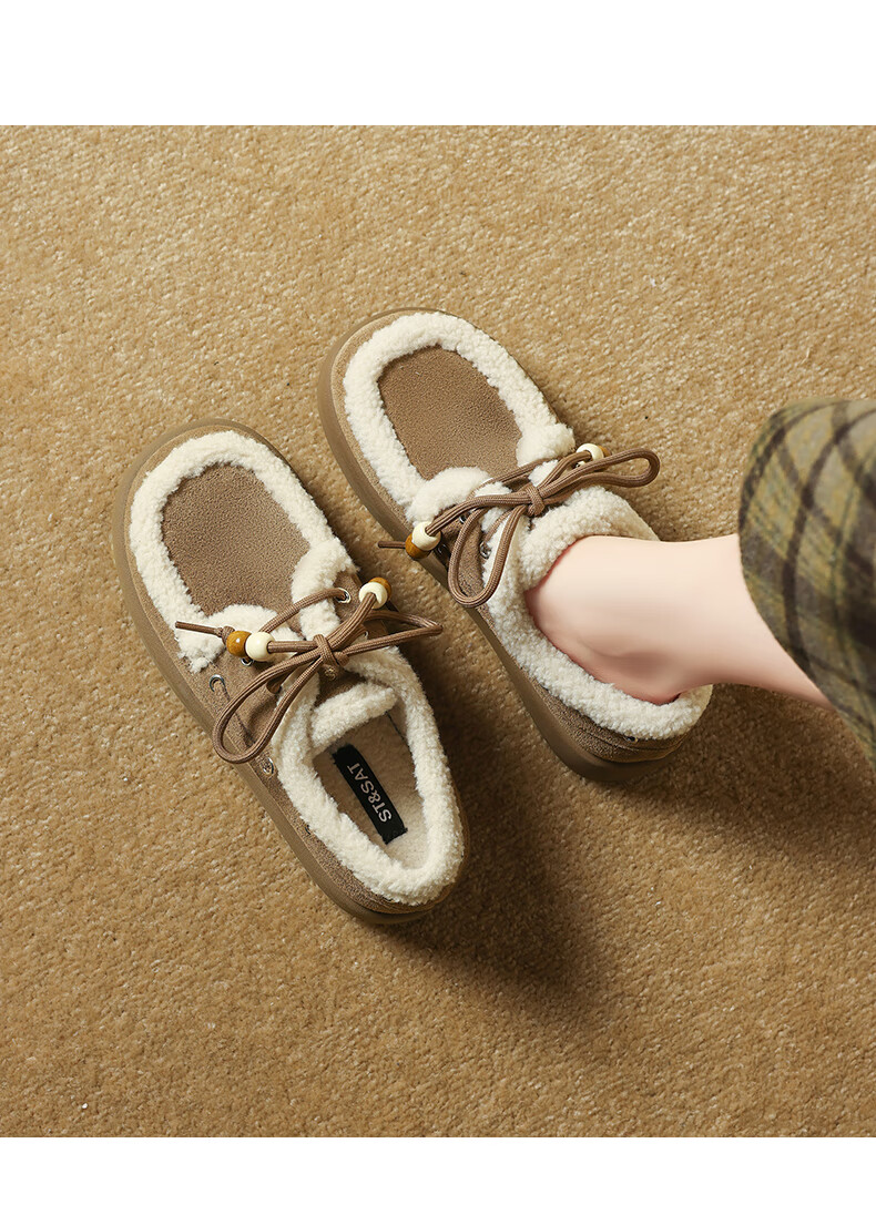 星期六(St&Sat)2025新款冬季毛毛豆豆鞋棉鞋加绒加厚外穿鞋子洋气百搭时尚女鞋子 驼色 37