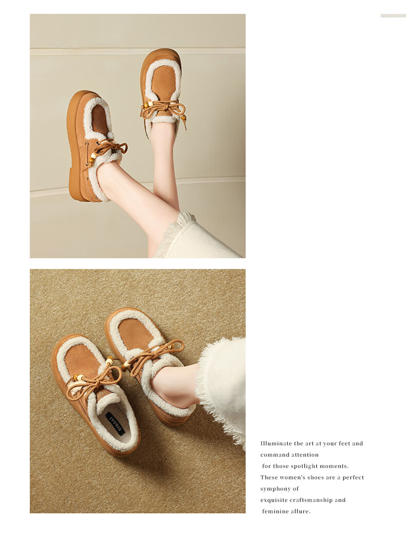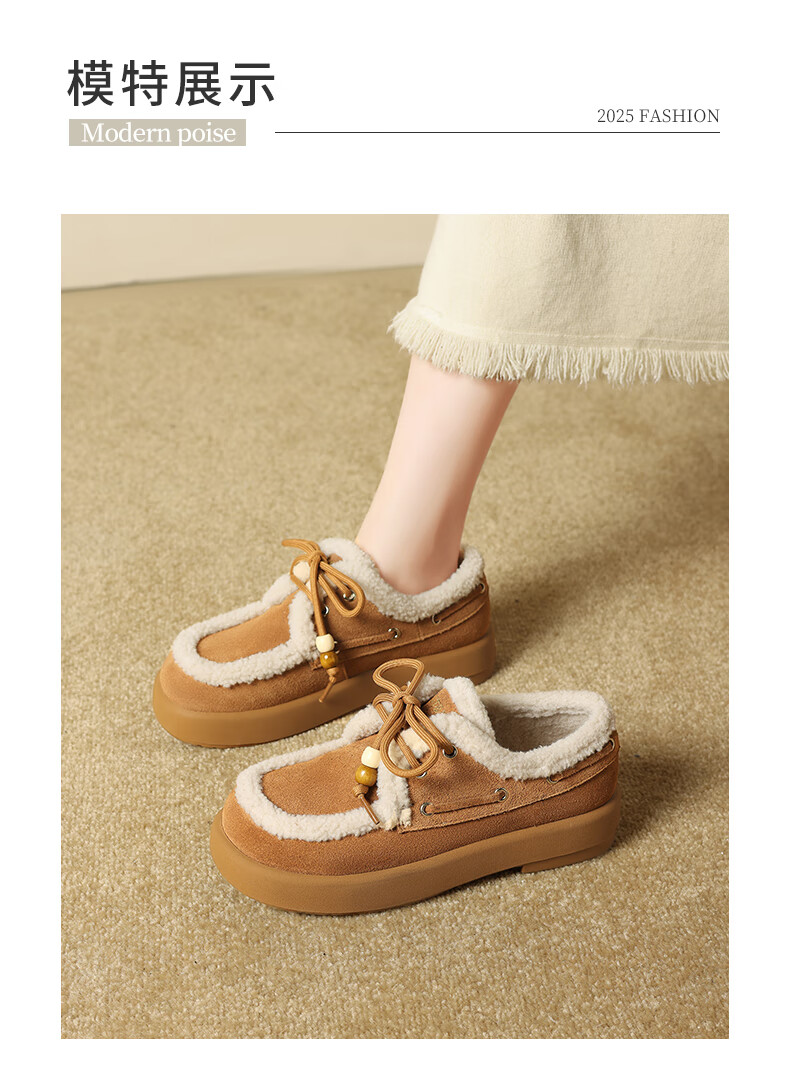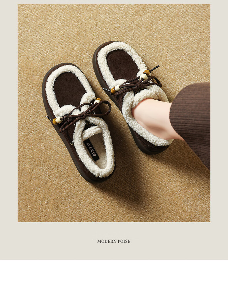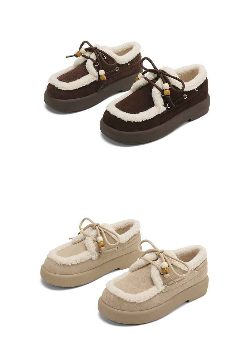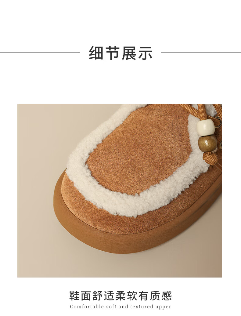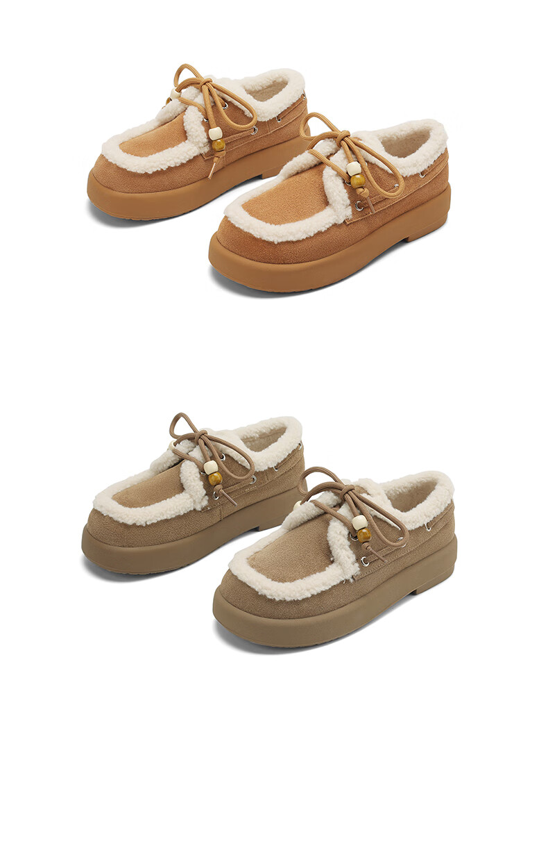 星期六(St&Sat)2025新款冬季毛毛豆豆鞋棉鞋加绒加厚外穿鞋子洋气百搭时尚女鞋子 驼色 37