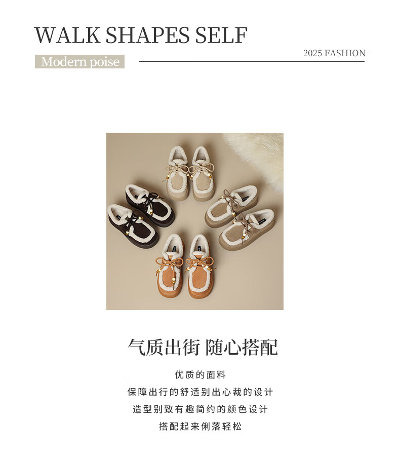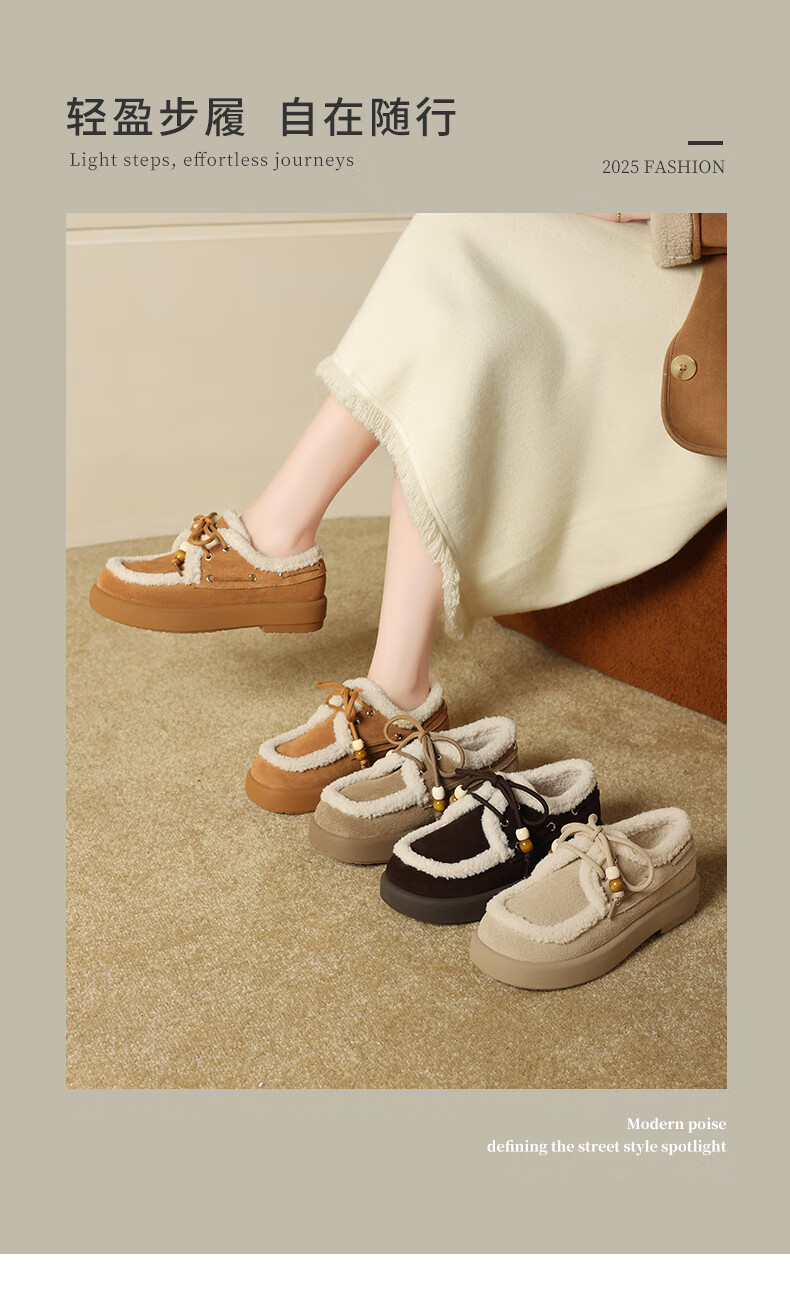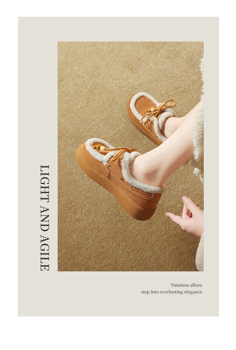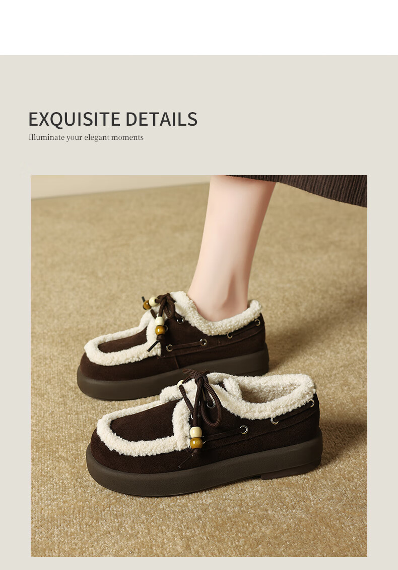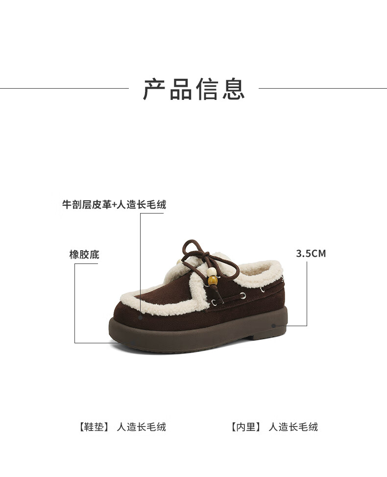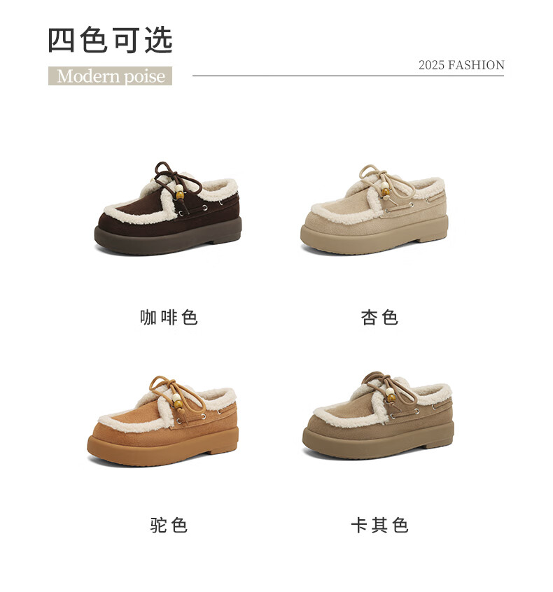 星期六(St&Sat)2025新款冬季毛毛豆豆鞋棉鞋加绒加厚外穿鞋子洋气百搭时尚女鞋子 驼色 37