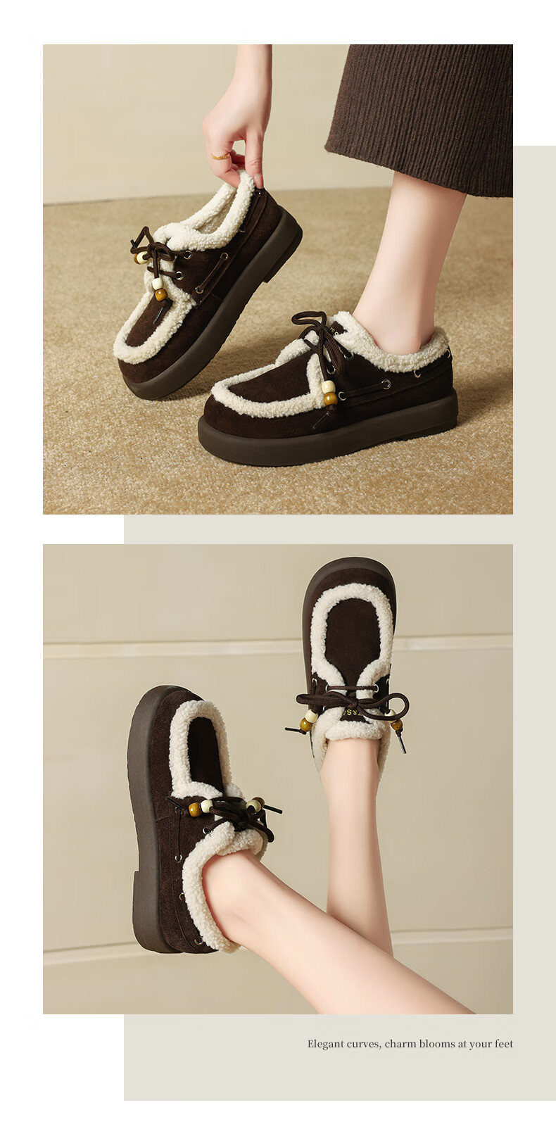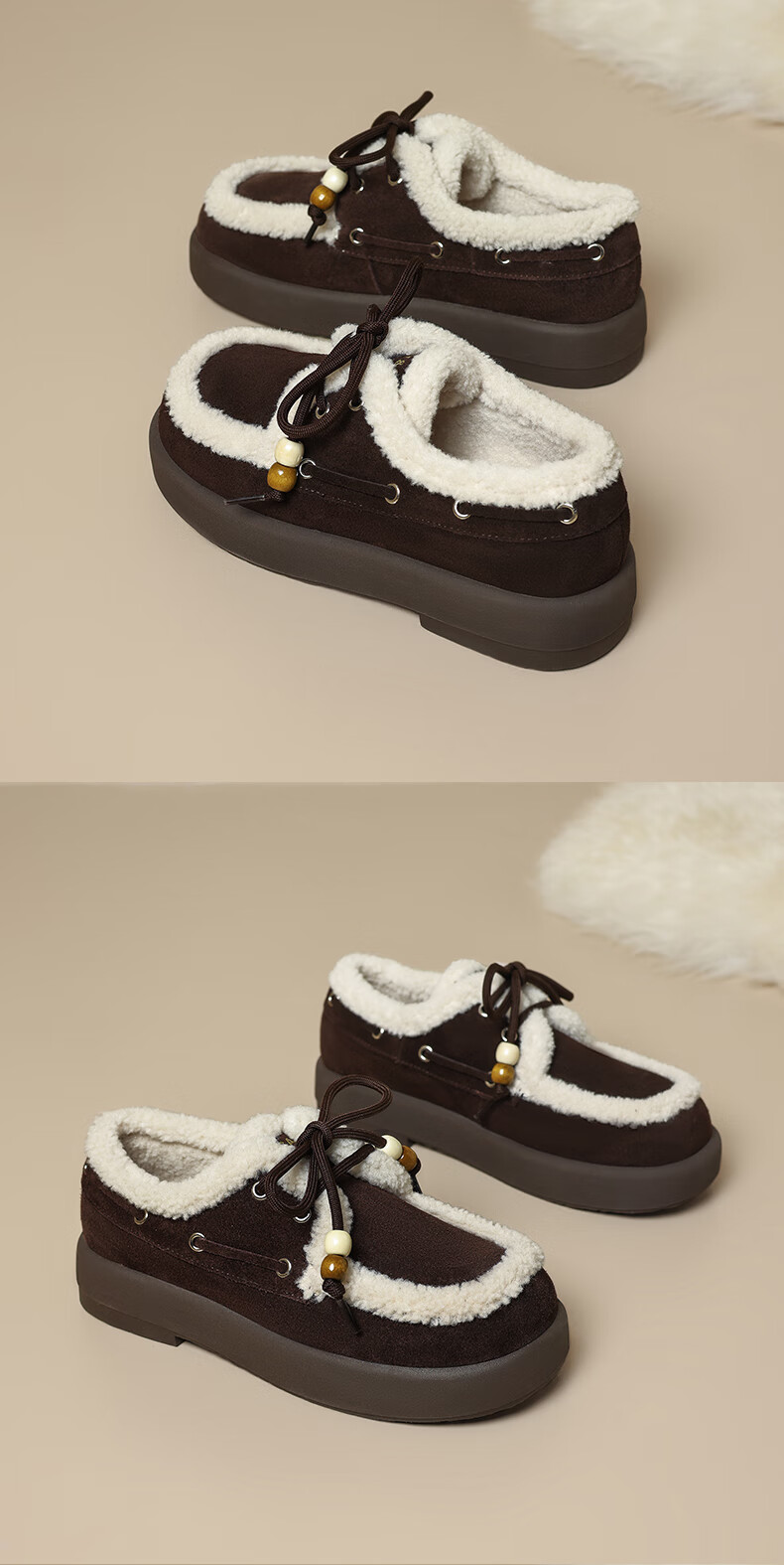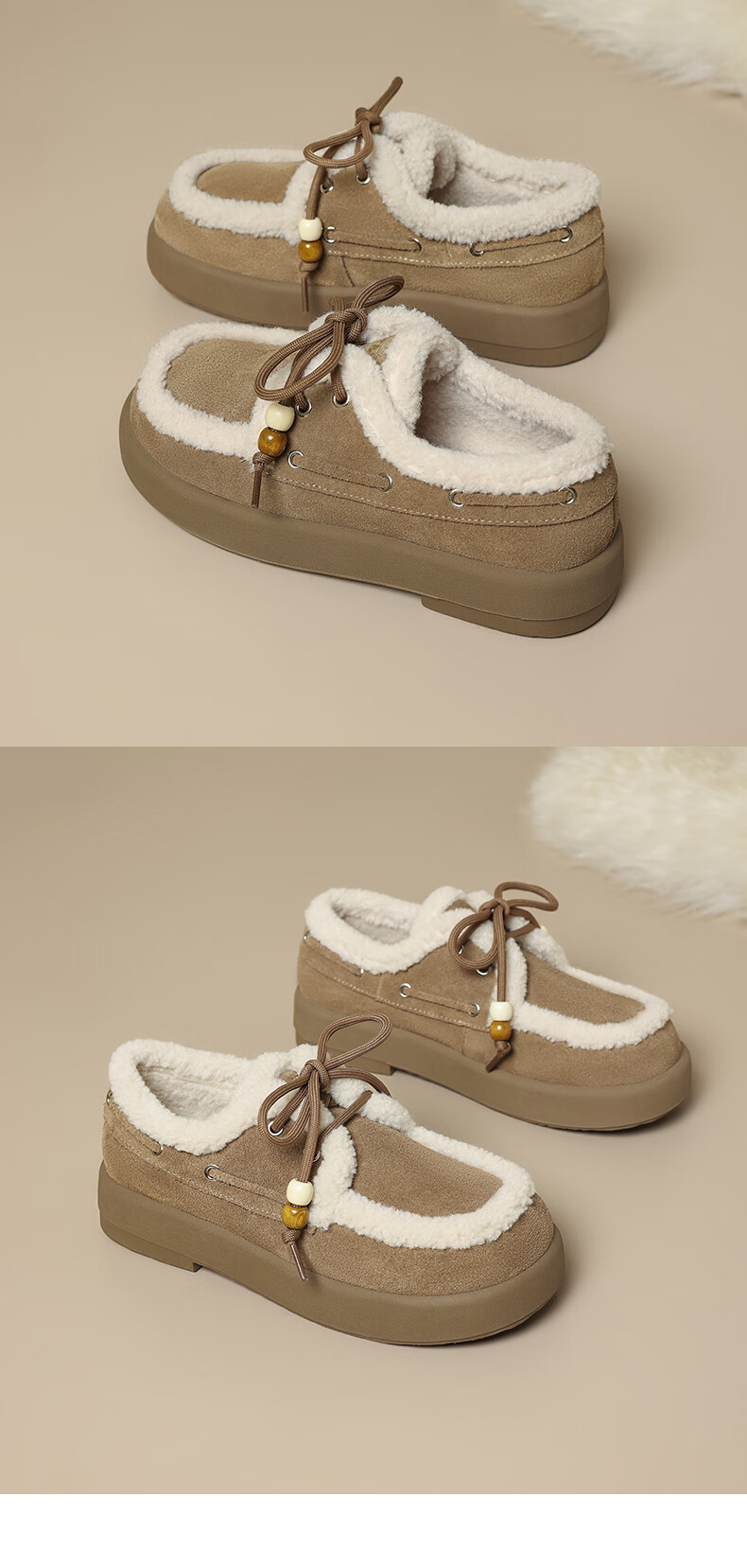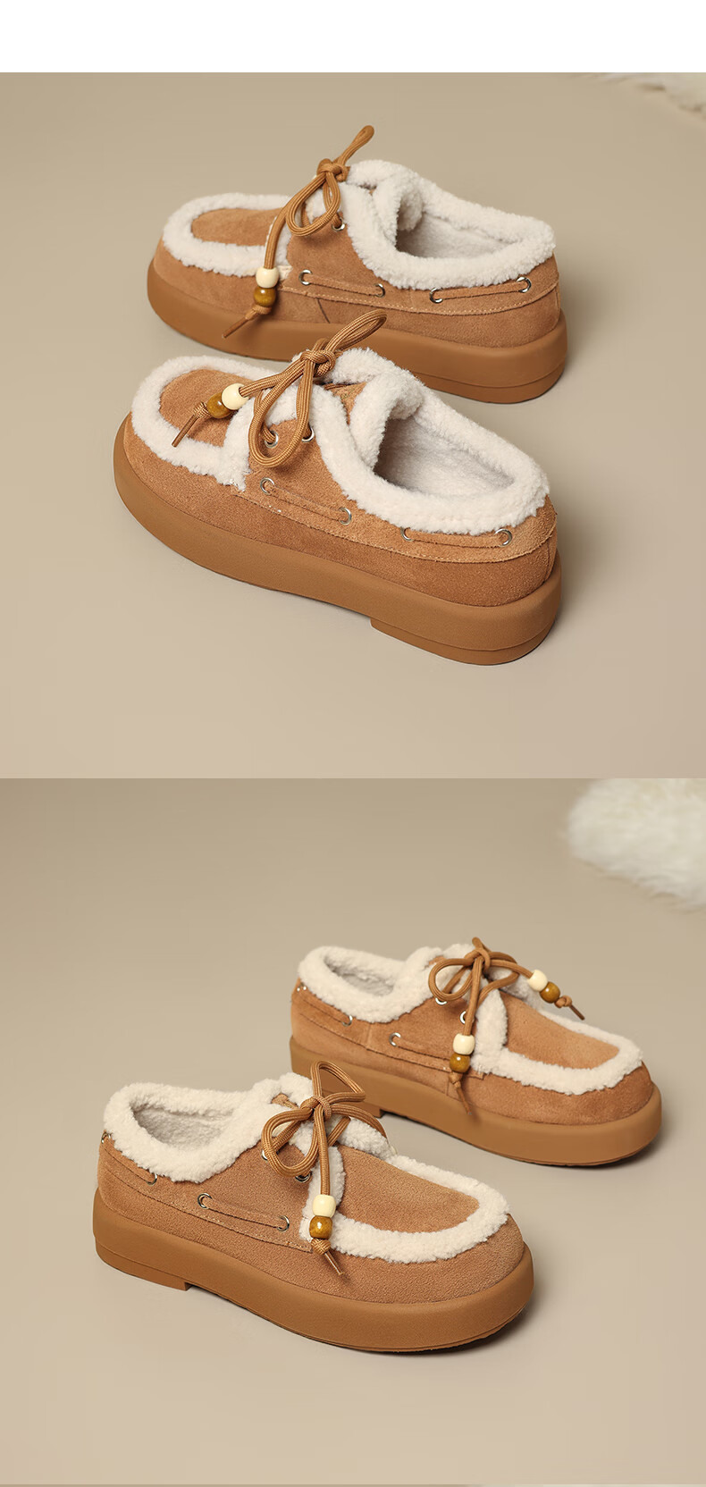星期六(St&Sat)2025新款冬季毛毛豆豆鞋棉鞋加绒加厚外穿鞋子洋气百搭时尚女鞋子 驼色 37