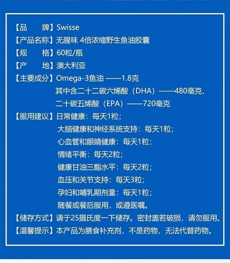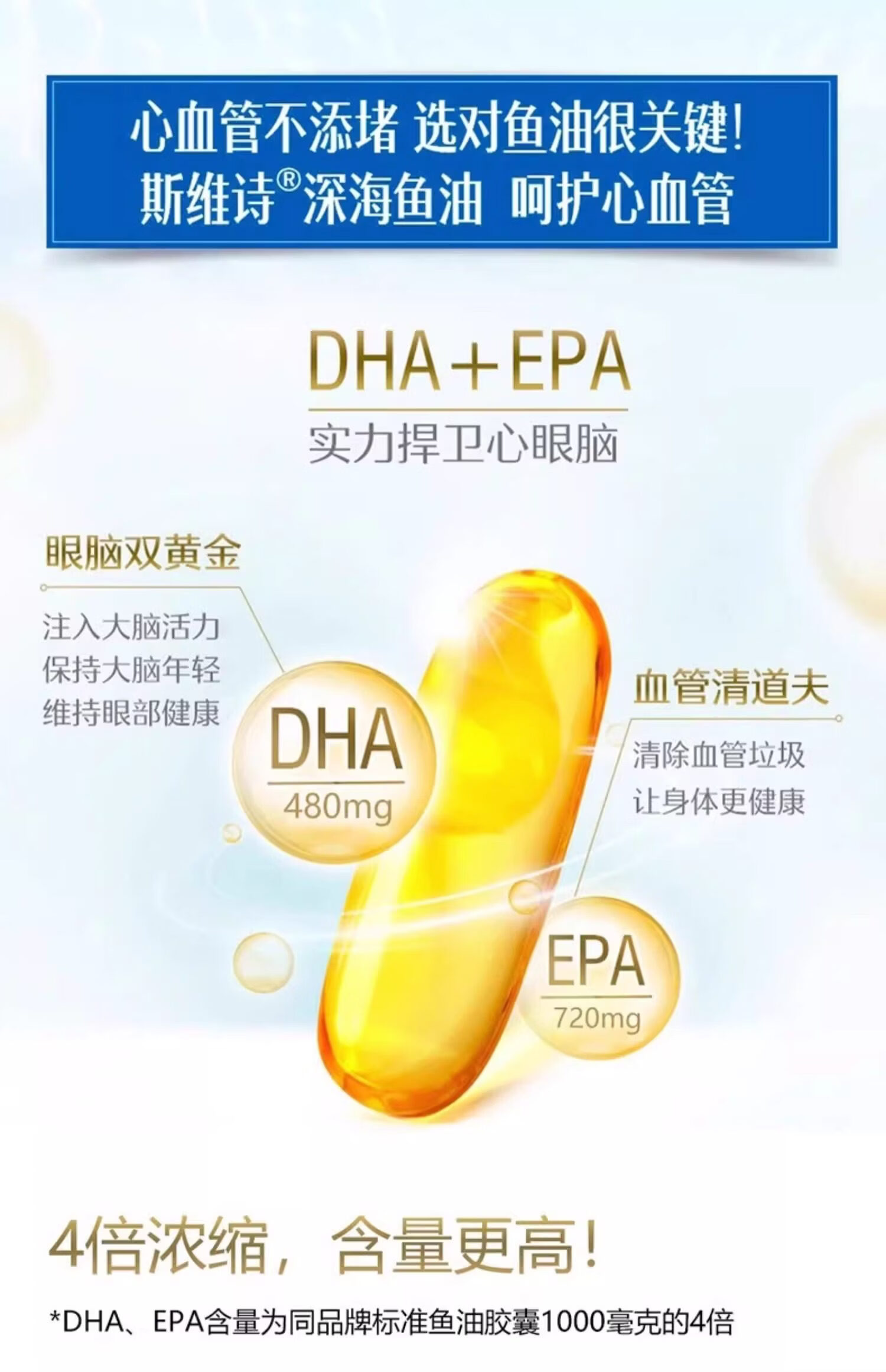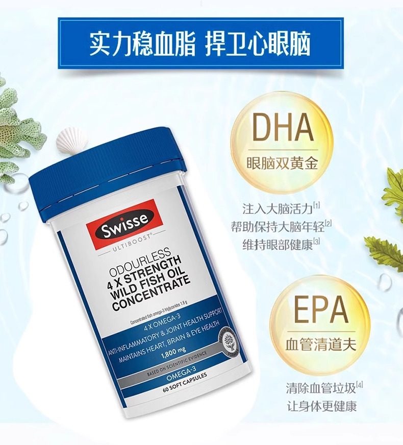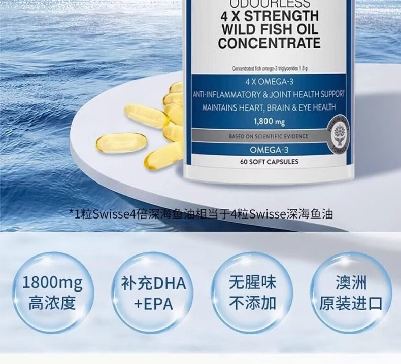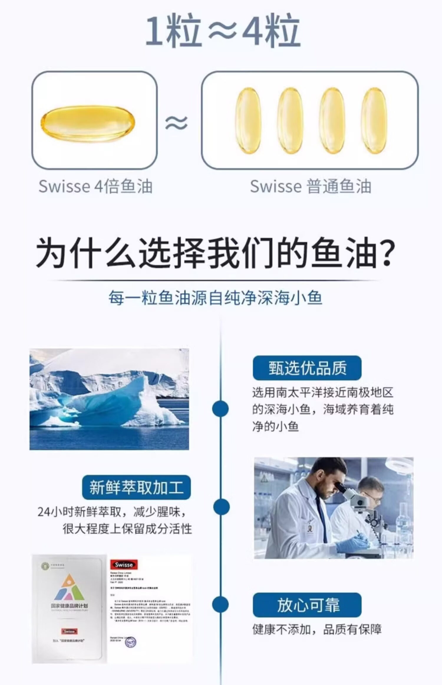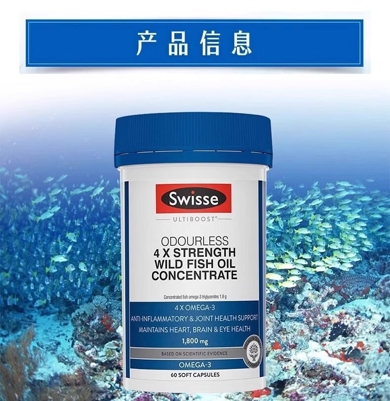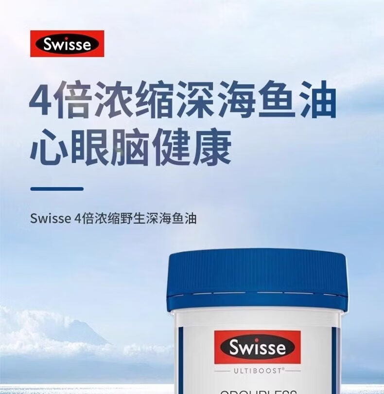 Swisse ; Swisse斯维诗四倍深海rTG鱼油omega3高浓度胶囊60粒成人中老年dha