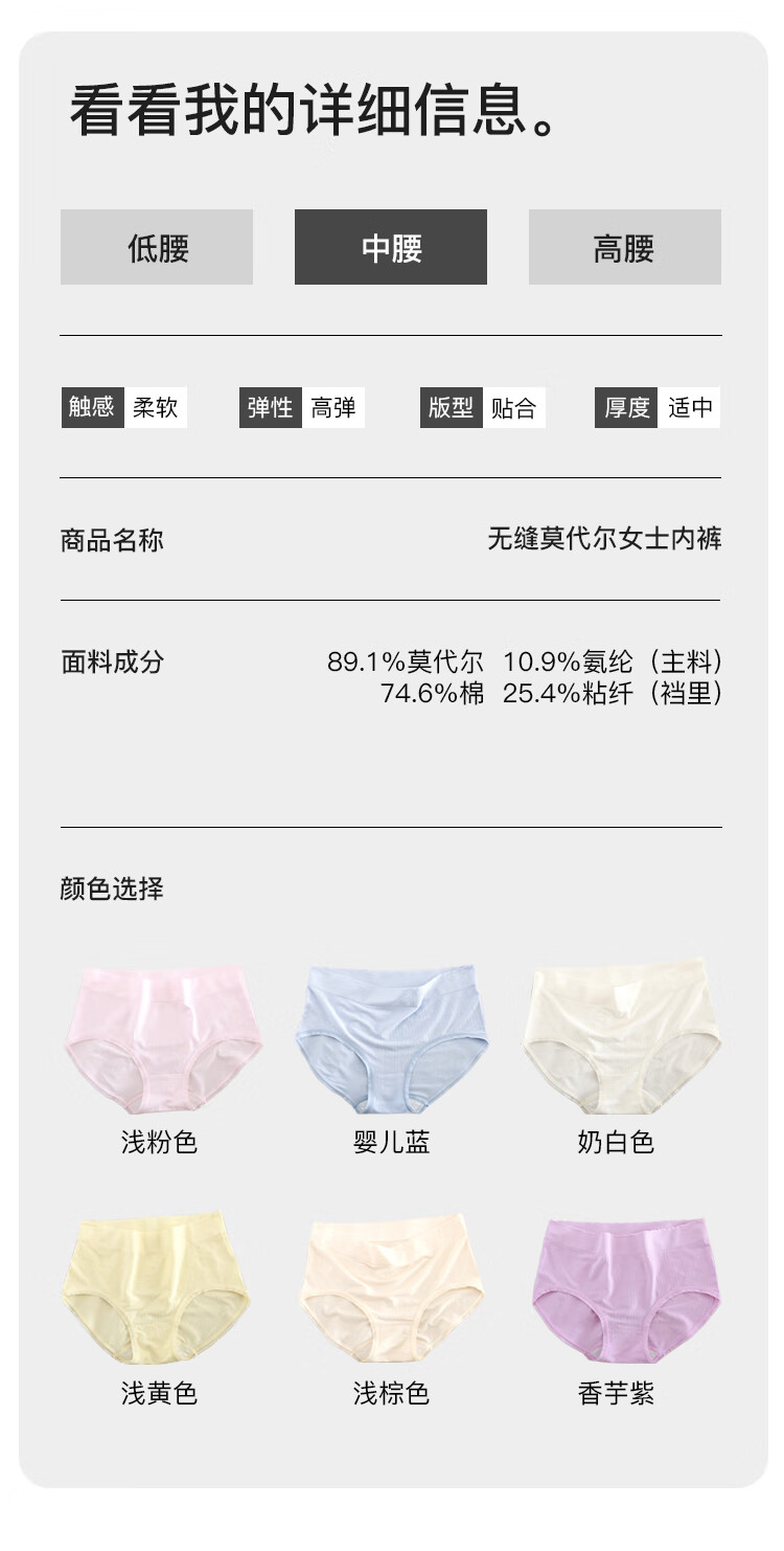 舒适莫代尔无缝中腰三角裤10A抗菌高弹包臀无痕透气内裤女高品质 浅棕色+奶白色 2条 XL 建议115-140斤