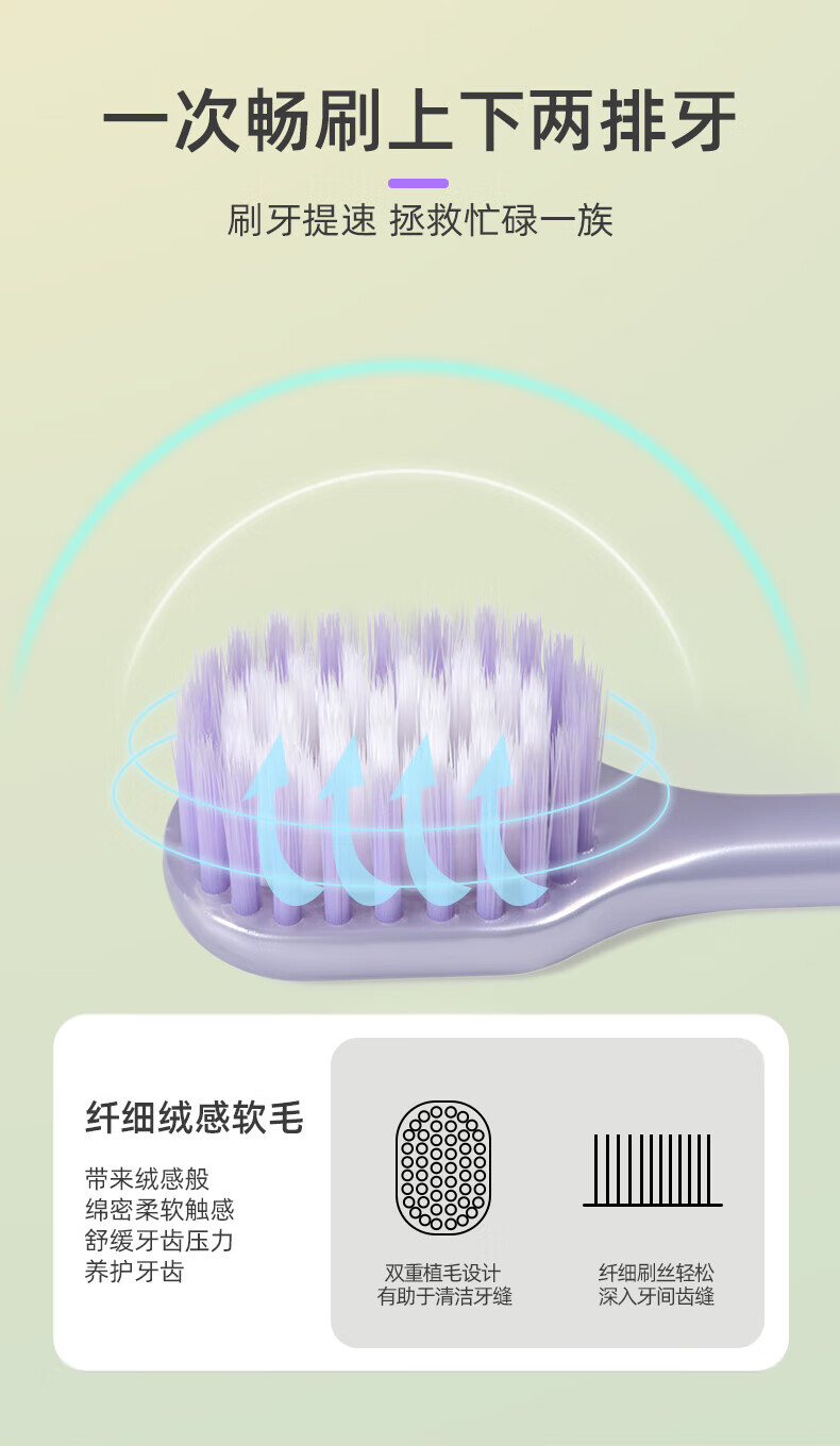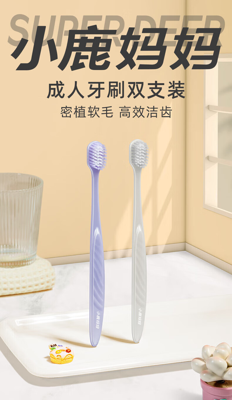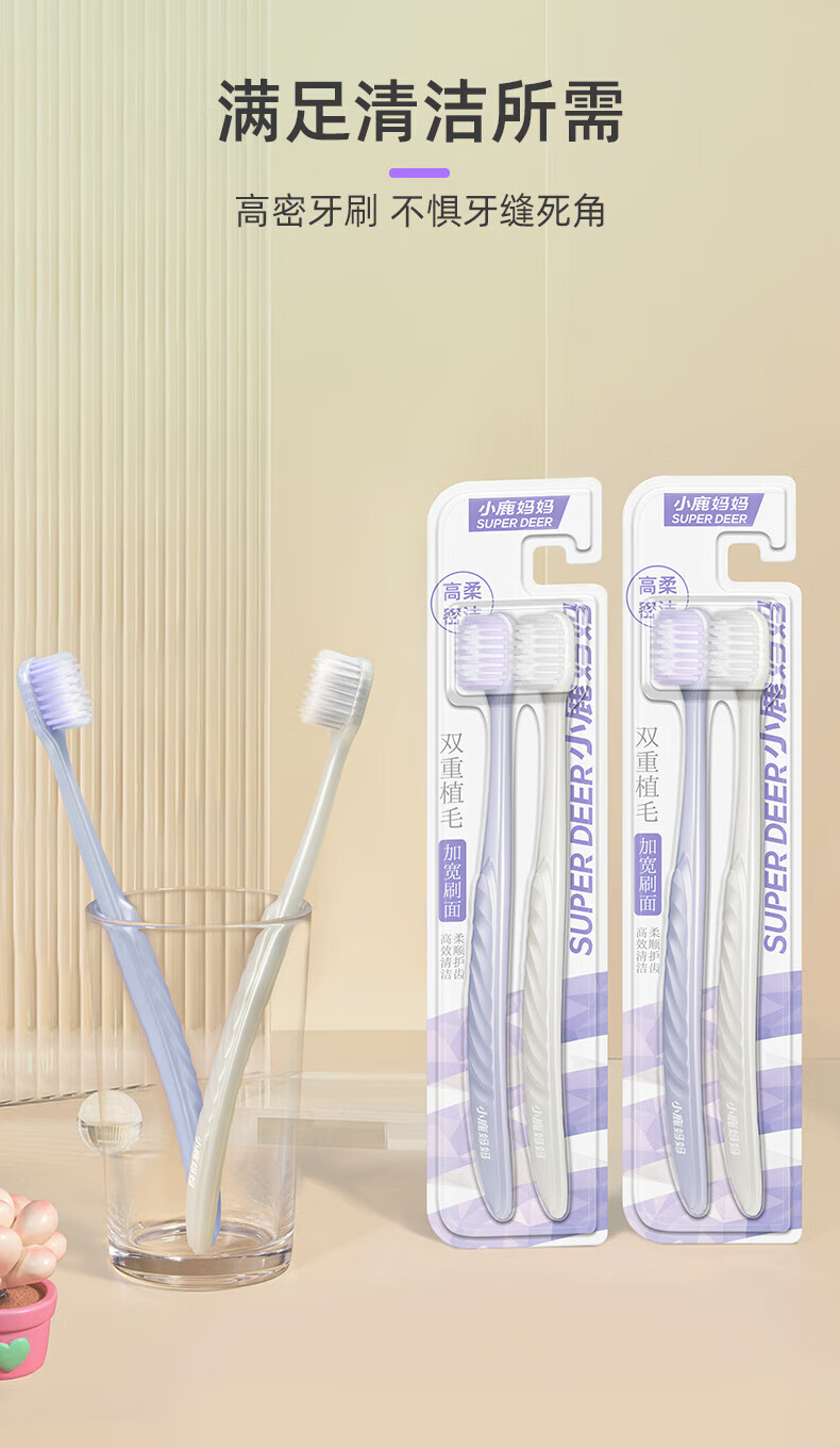 小鹿妈妈软毛牙刷宽头高端牙刷情侣女男士家庭装简约宿舍正品 【紫+白】 4支 +牙膏30g