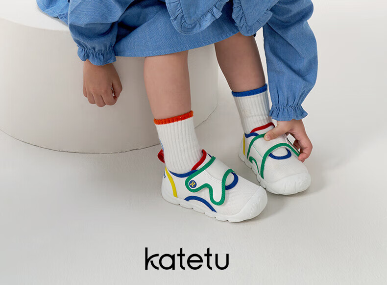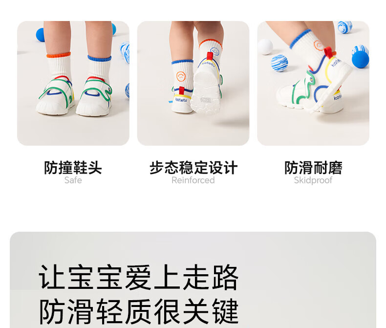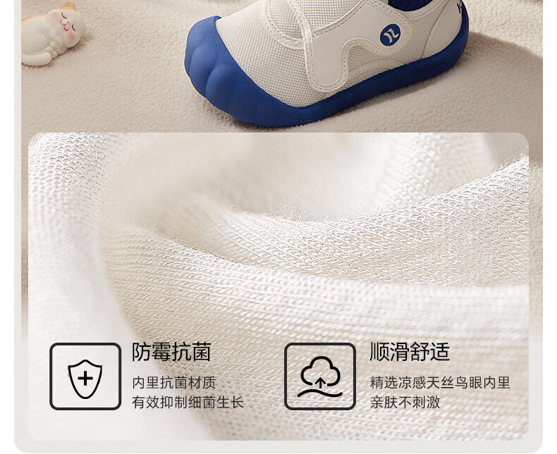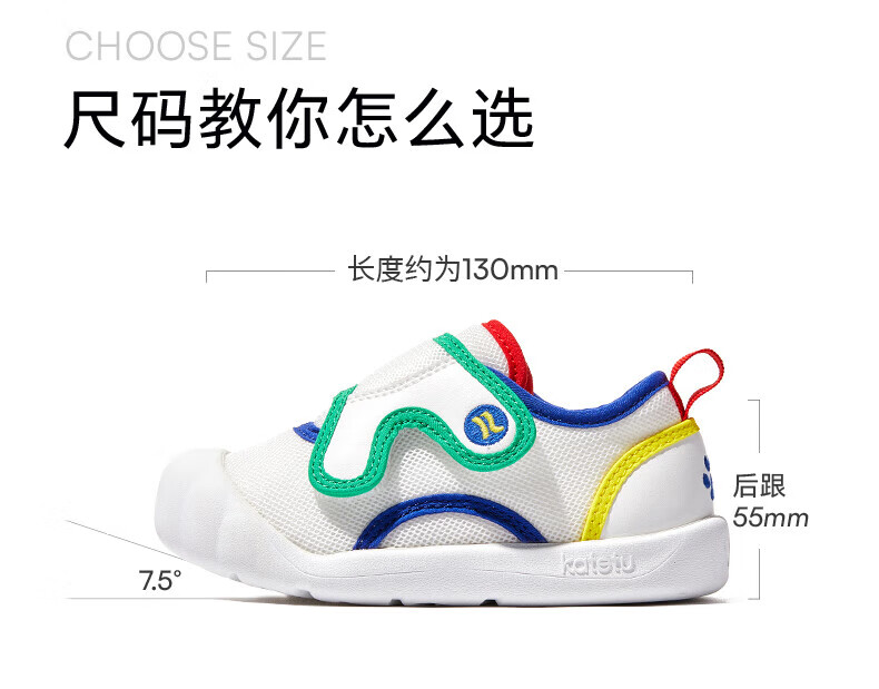 卡特兔学步鞋宝宝喵喵鞋春季男童透气室内鞋幼儿园小白鞋女童防滑机能鞋 白蓝绿色 21 内长13.0cm 脚长12.0-12.5
