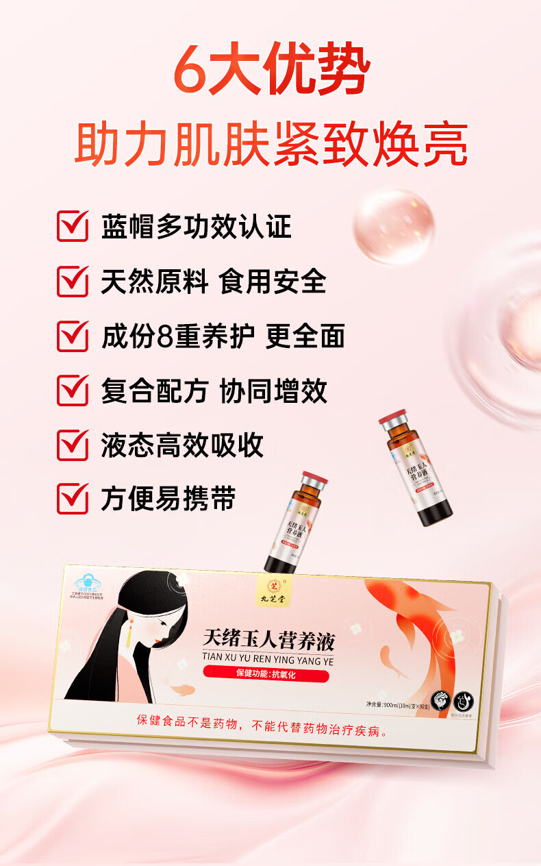 九芝堂胶原蛋白口服液 抗氧化美白抗衰老天绪玉人营养液90支/盒礼盒礼品 天绪玉人营养液 90支*1盒
