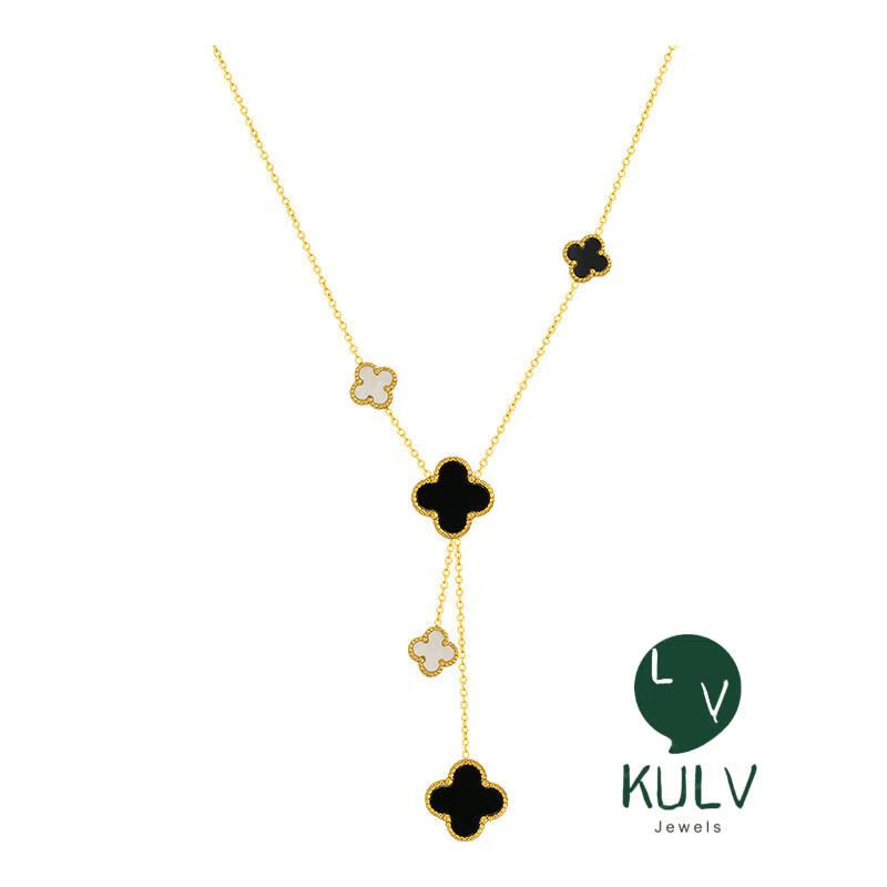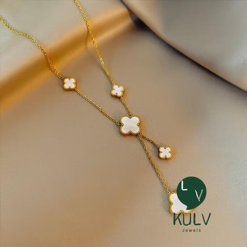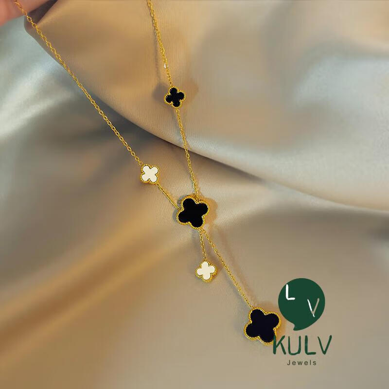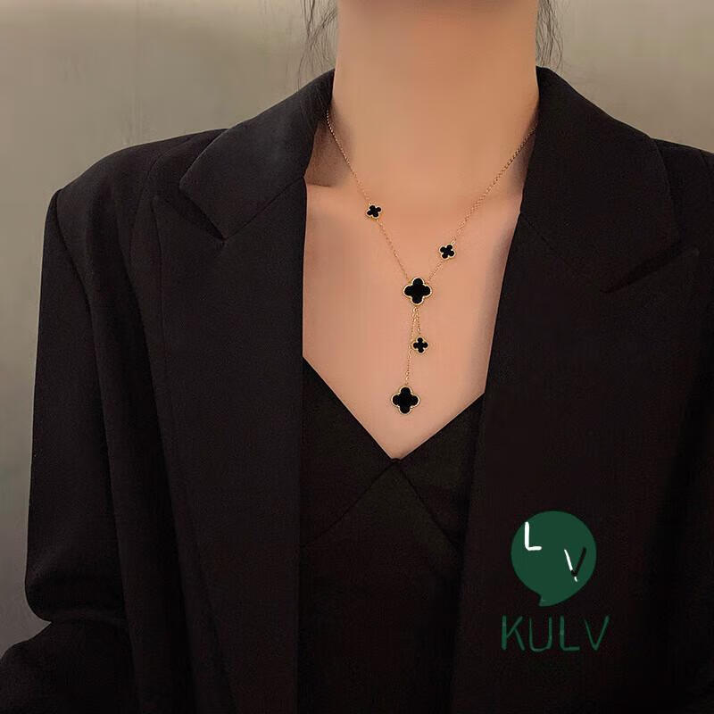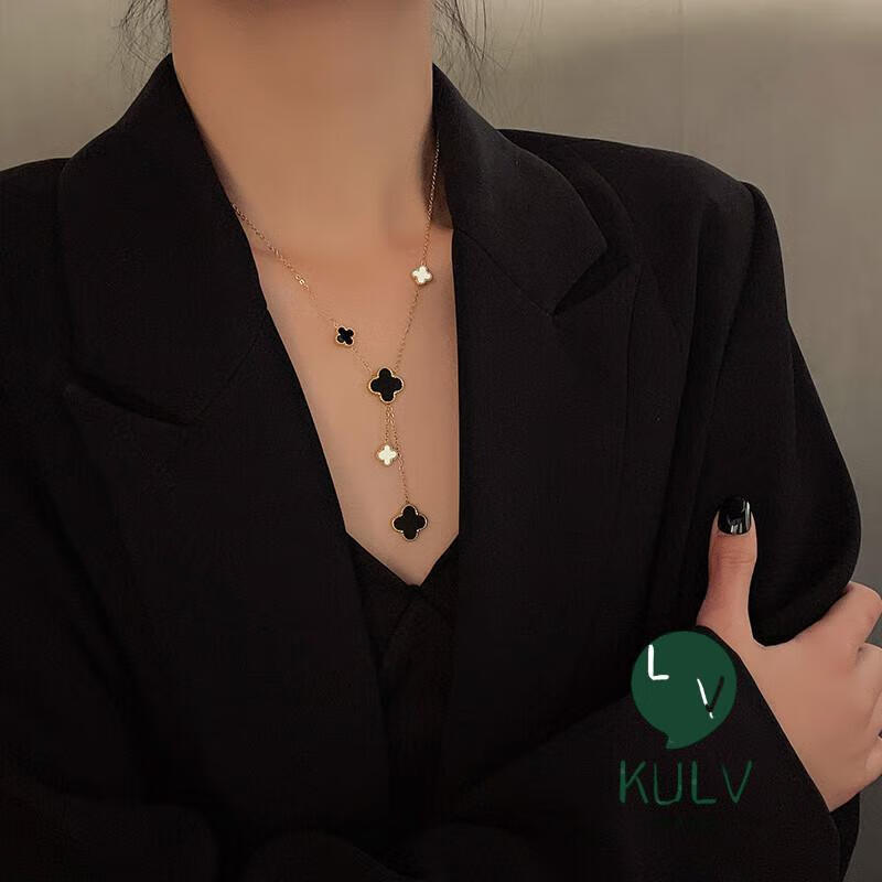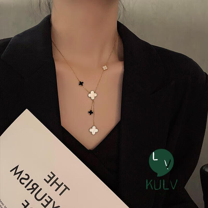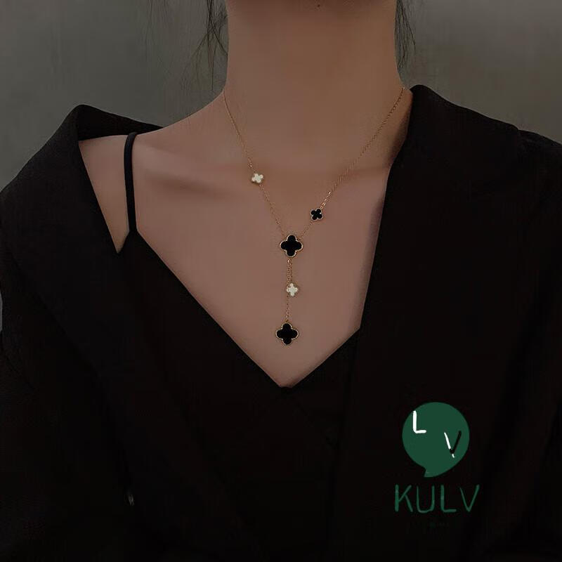 胖东来品质四叶草项链镀18k金感大小双面女锁骨链轻奢流苏吊坠时 大小双面四叶草-项链