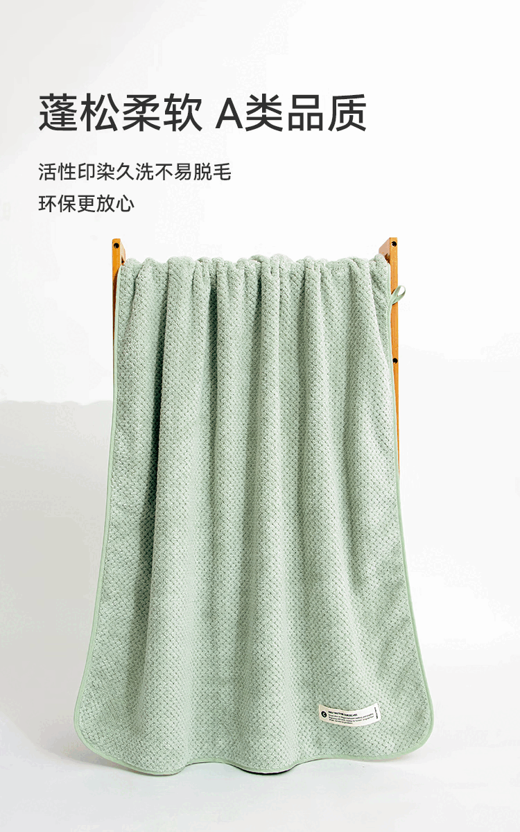 三利浴巾 A类珊瑚绒柔软吸水菠萝格浴巾干裹巾 70*140cm 粉色