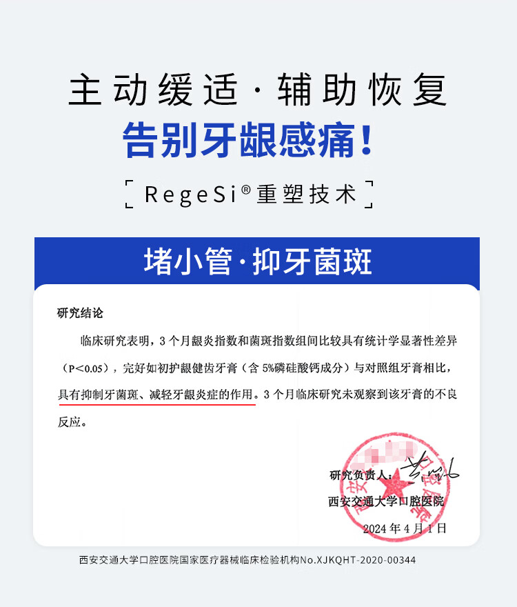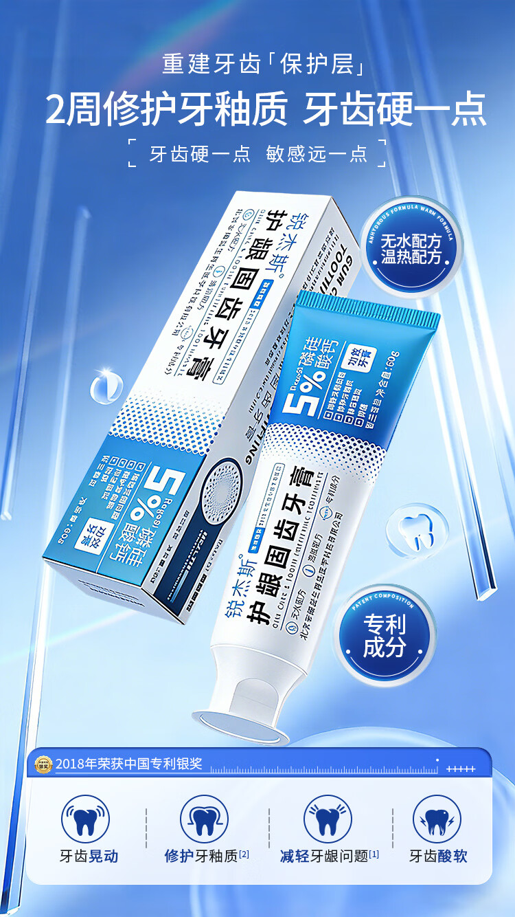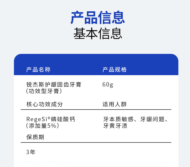 锐杰斯护龈固齿牙膏RegeSi磷硅酸钙护牙釉牙龈问题防蛀防龋含氟官方正品 固齿牙膏60g*1支[赠牙刷1个]
