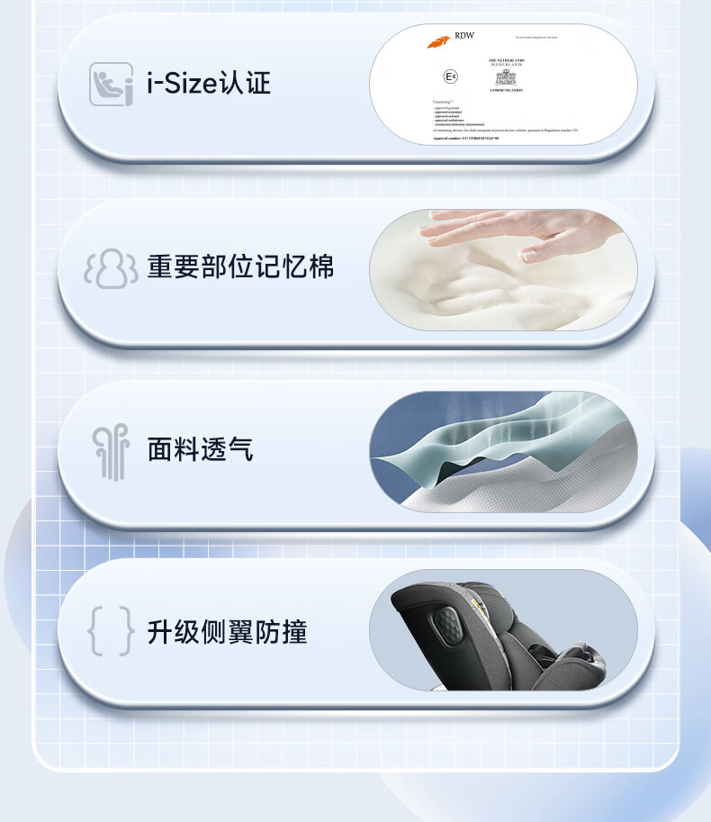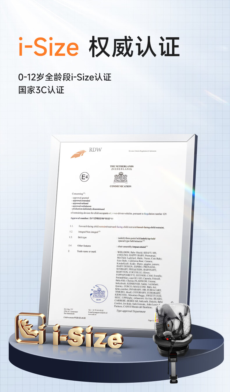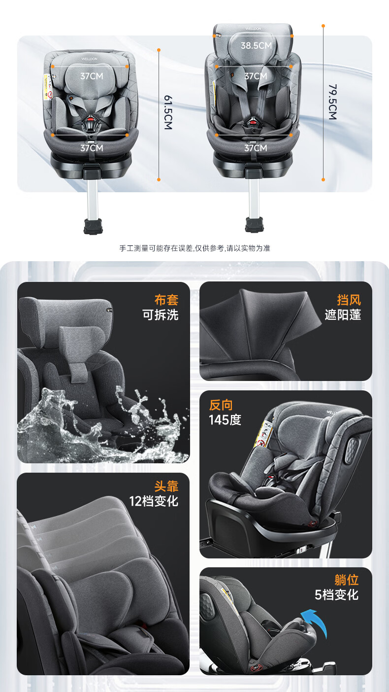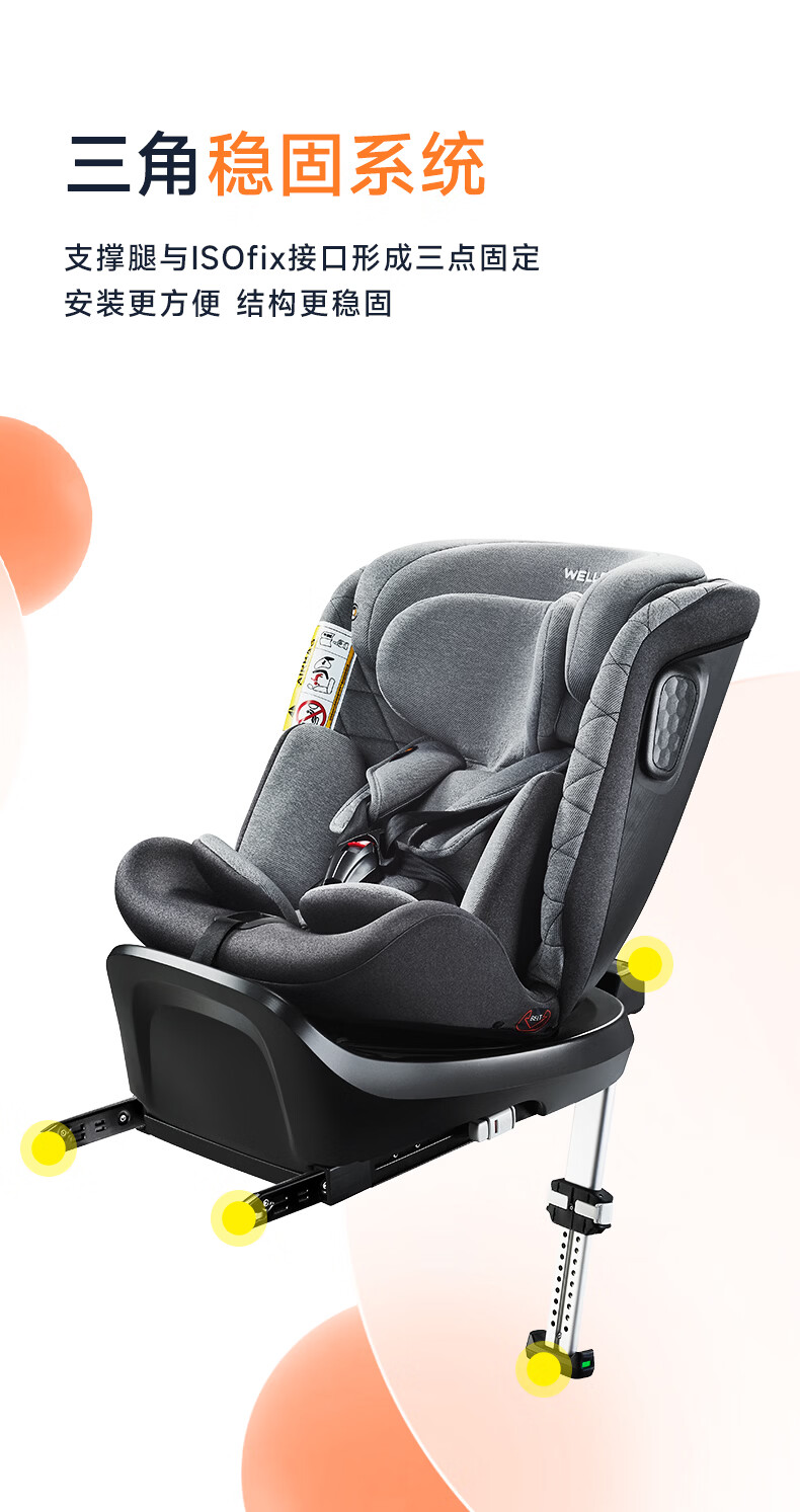 惠尔顿(Welldon)儿童安全座椅 0–12岁车载婴儿 360度旋转 i-Size认证 安琪拉PRO