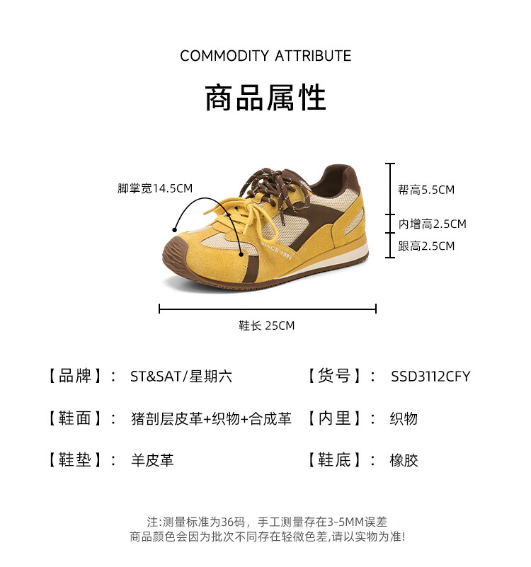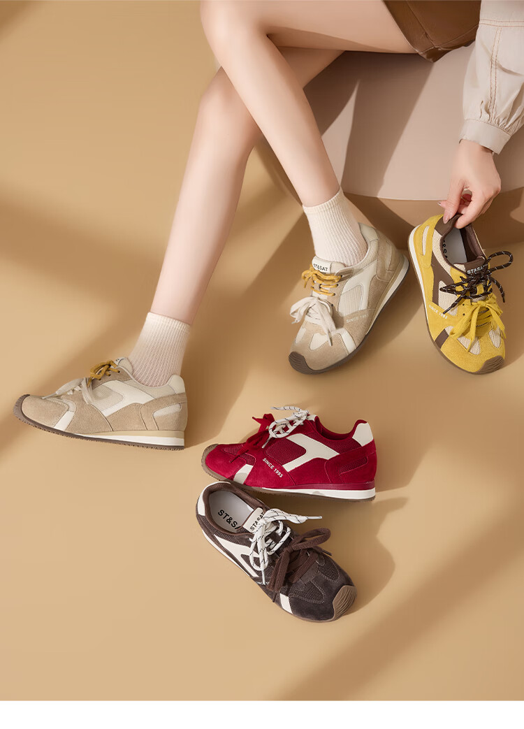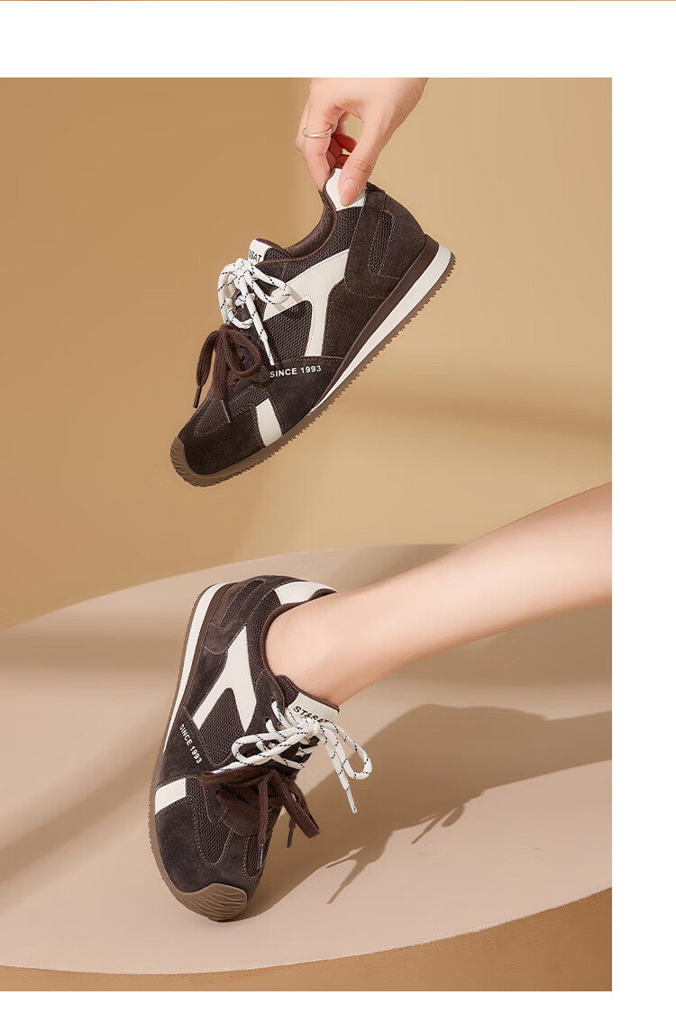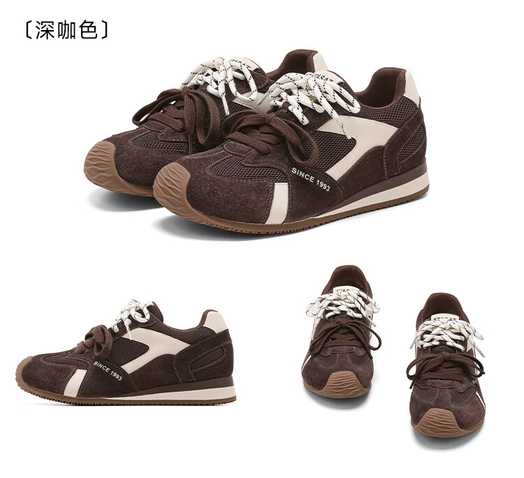 星期六咖色德训鞋女款2025新款秋季鞋子内增高运动女鞋复古阿甘运动鞋 深咖色 36