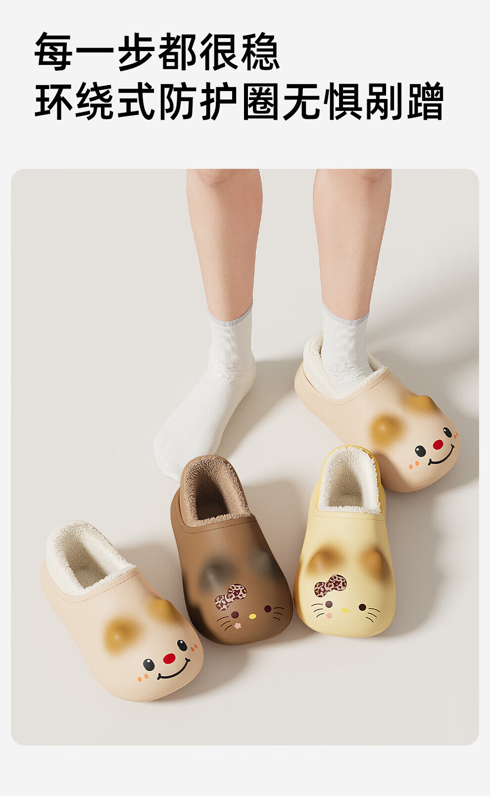 FZT卡通棉拖鞋女士2025冬季新款加绒保暖防水防滑室内居家可爱棉鞋男 棕色卡皮 36-37 正码【内长195mm】