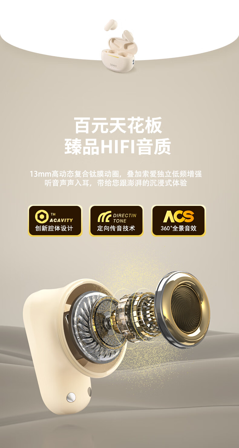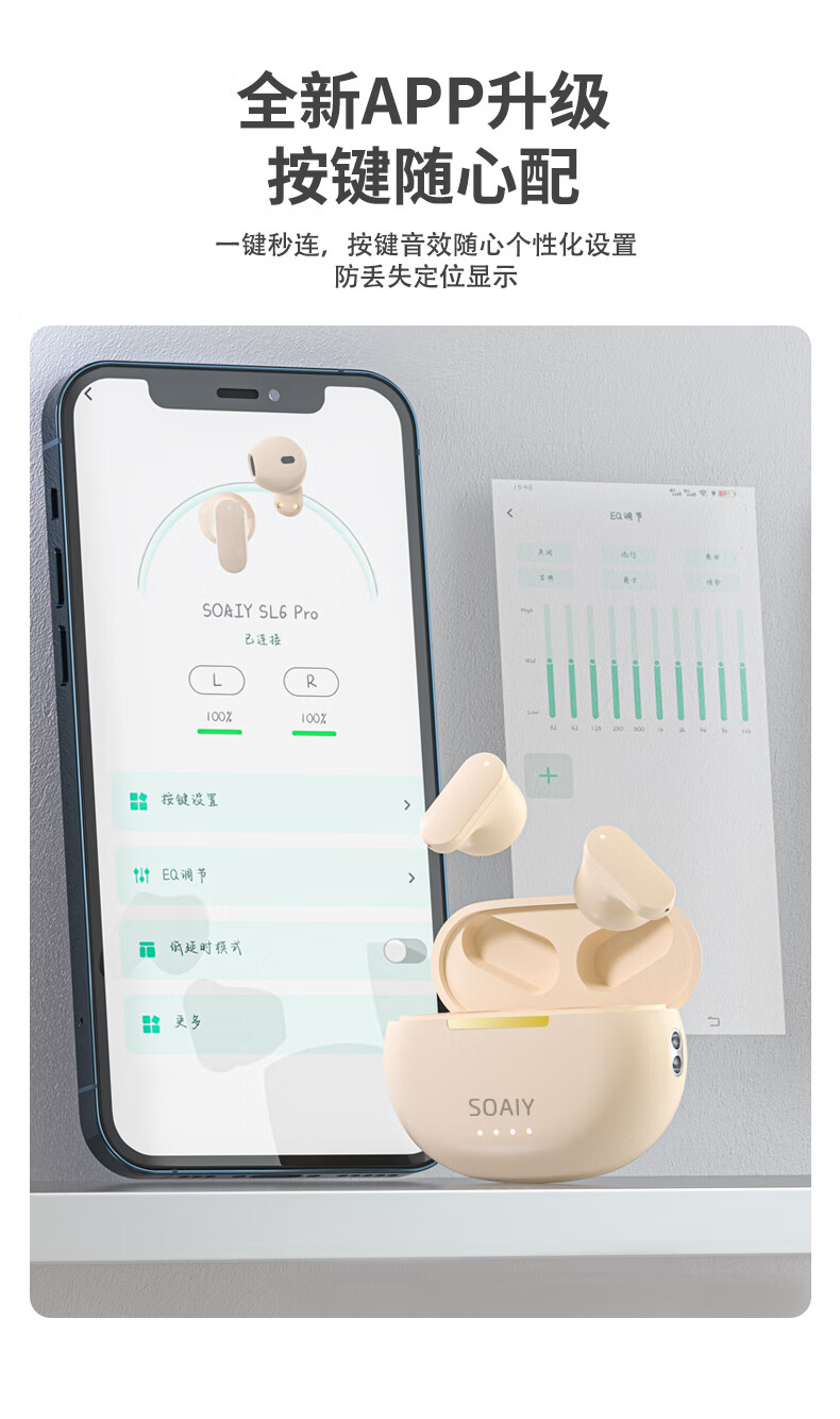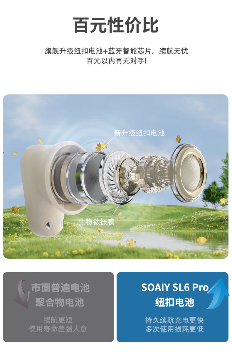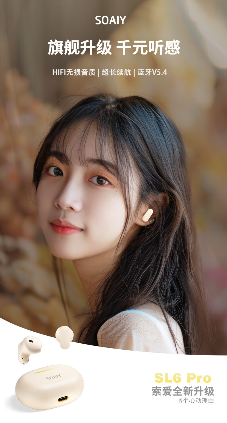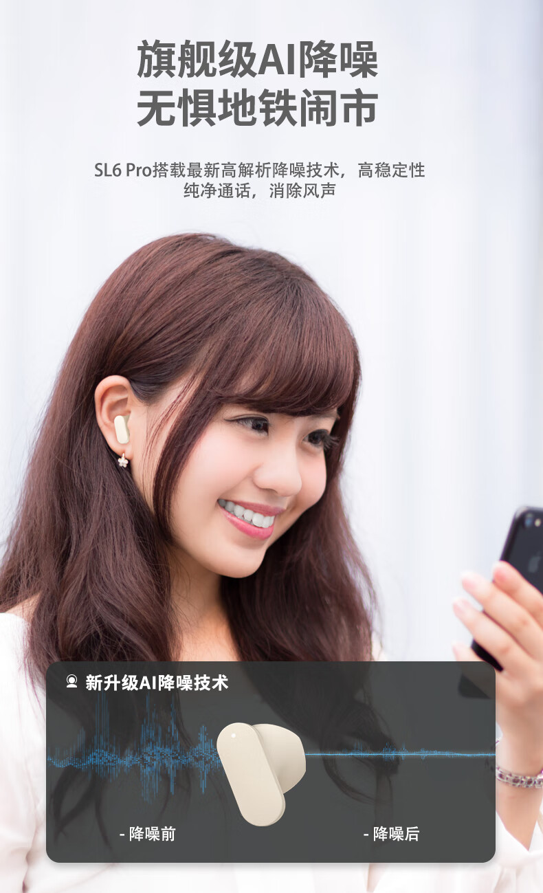 索爱SL6 Pro 蓝牙耳机真无线开放半入耳式运动智能app跑步骑行通话降噪适用苹果华为小米 白