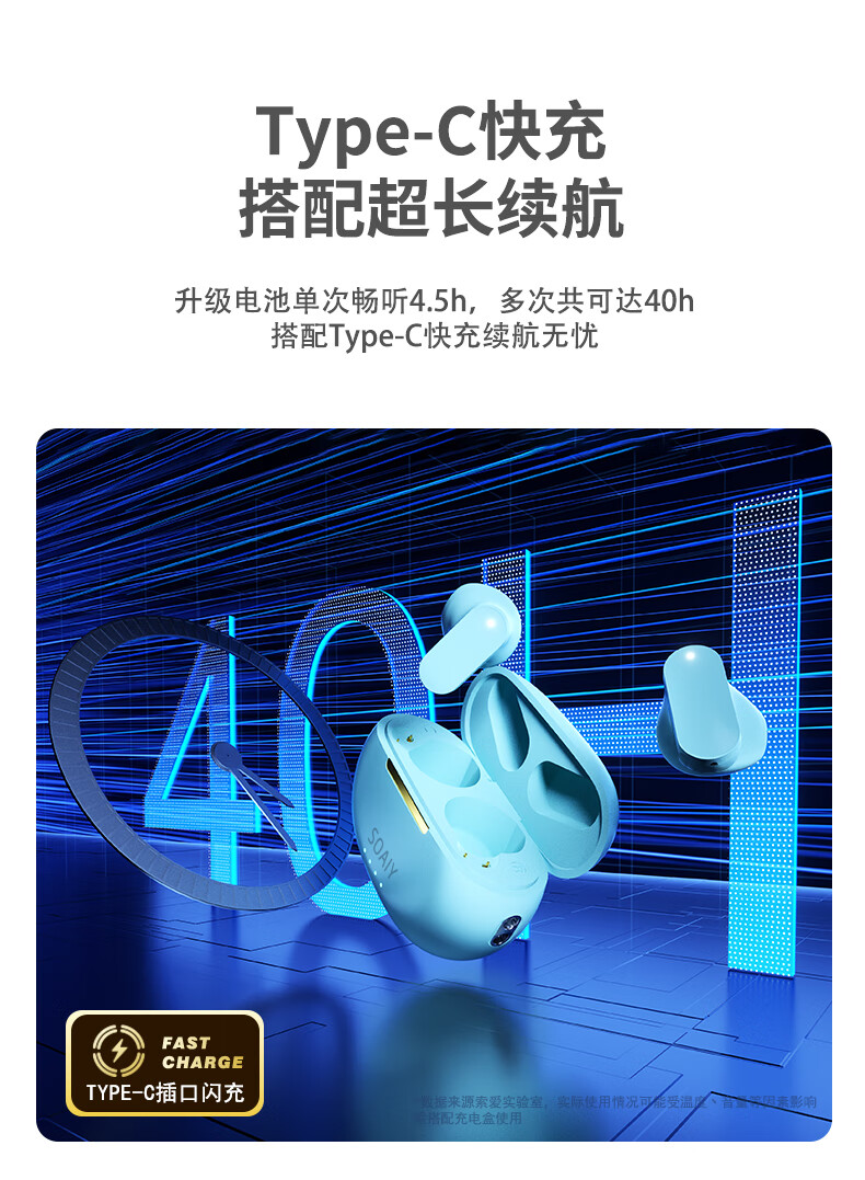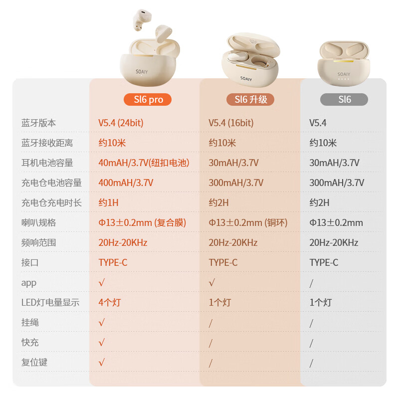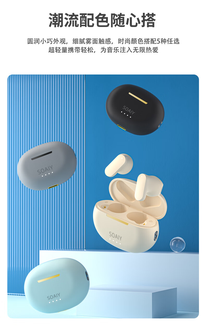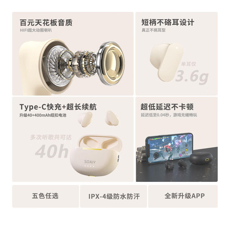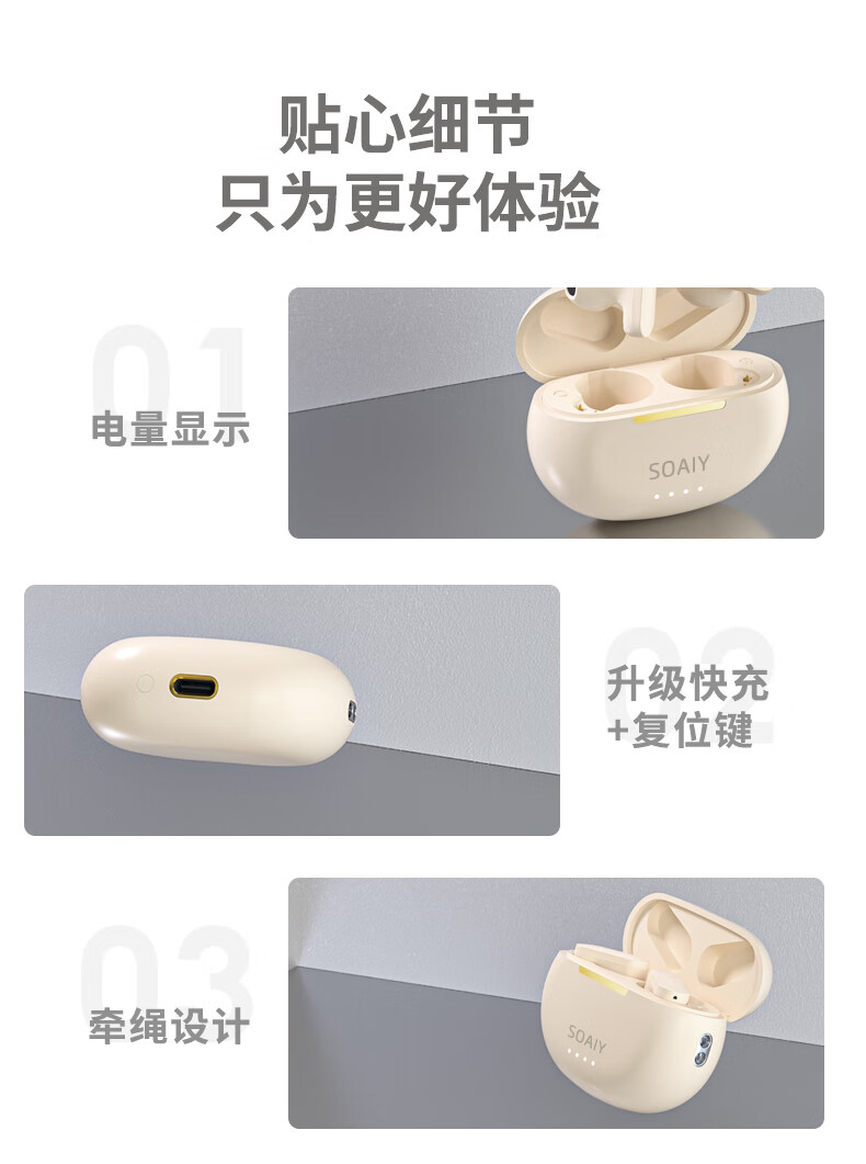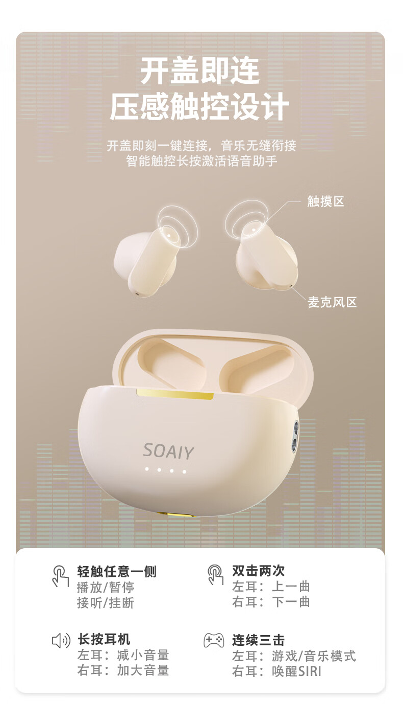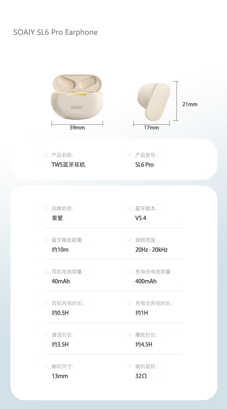 索爱SL6 Pro 蓝牙耳机真无线开放半入耳式运动智能app跑步骑行通话降噪适用苹果华为小米 白