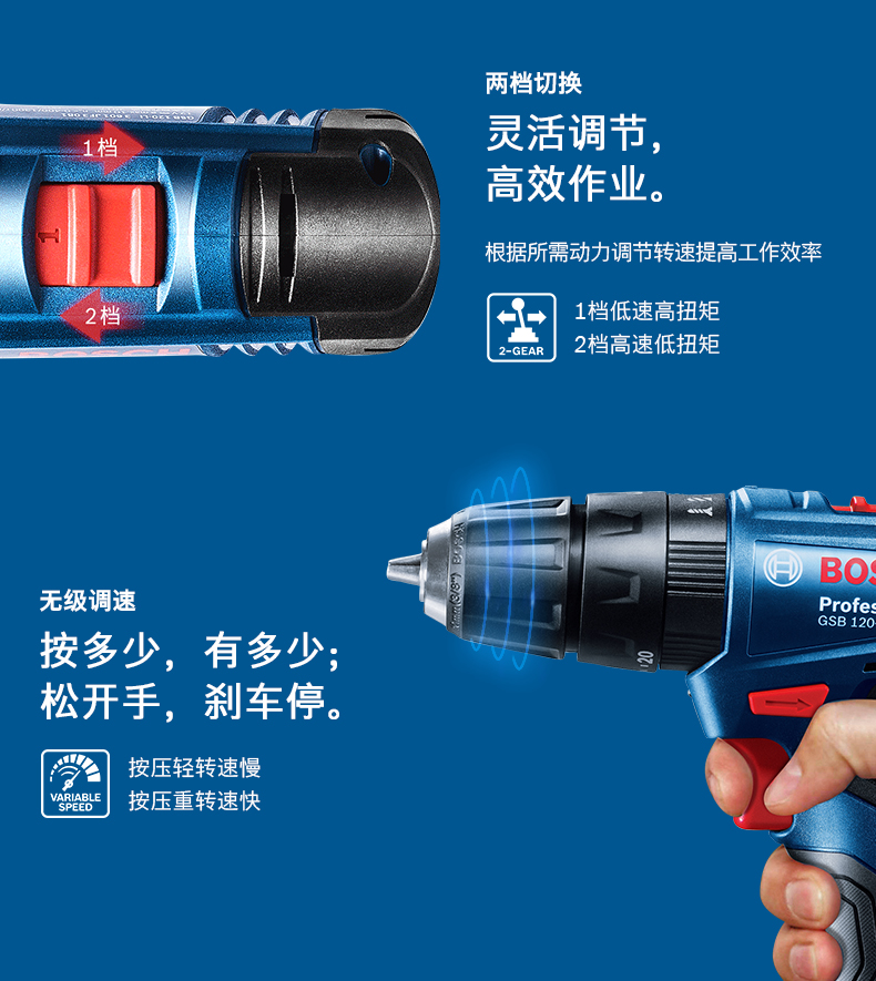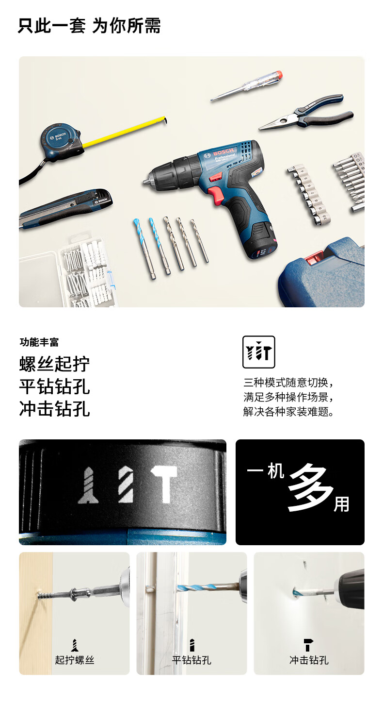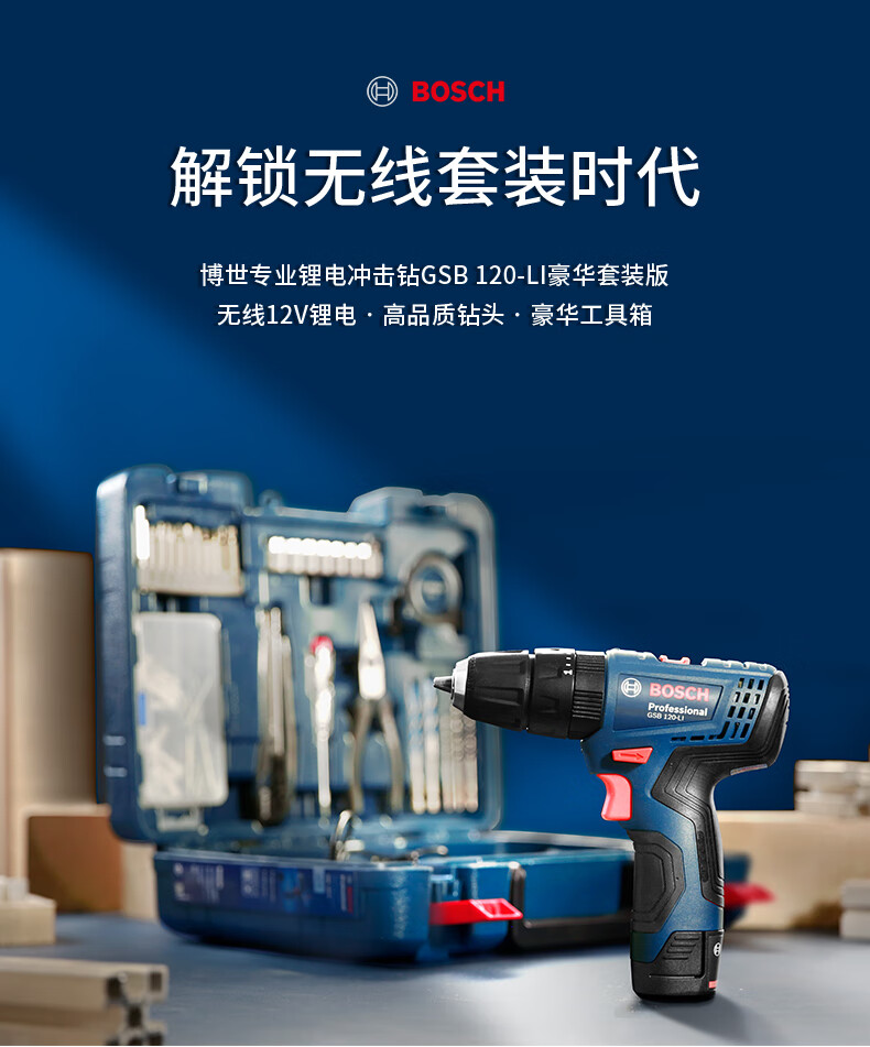 博世(BOSCH)电钻钻墙打孔多功能家用GSB120单电12V锂电(84附件+手动工具)