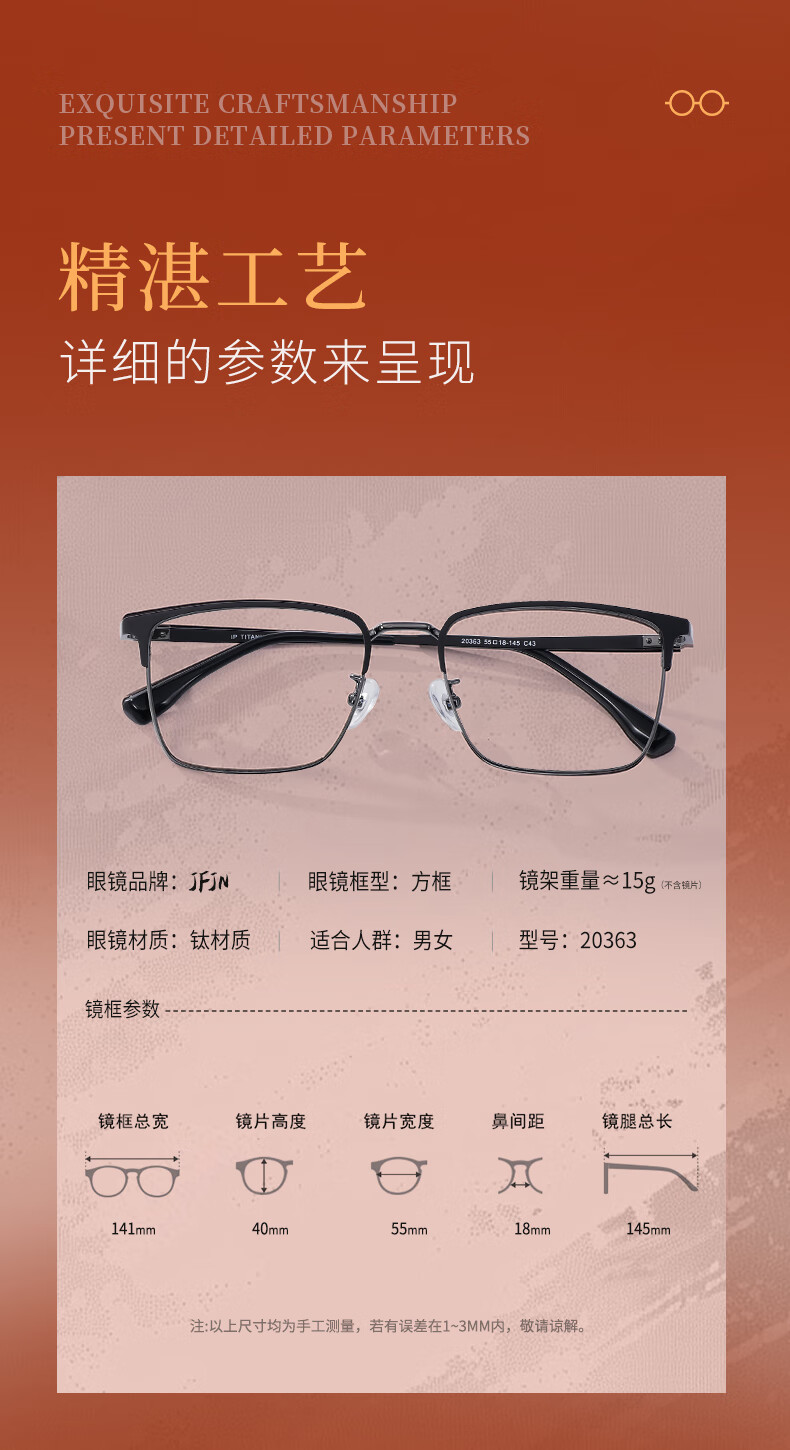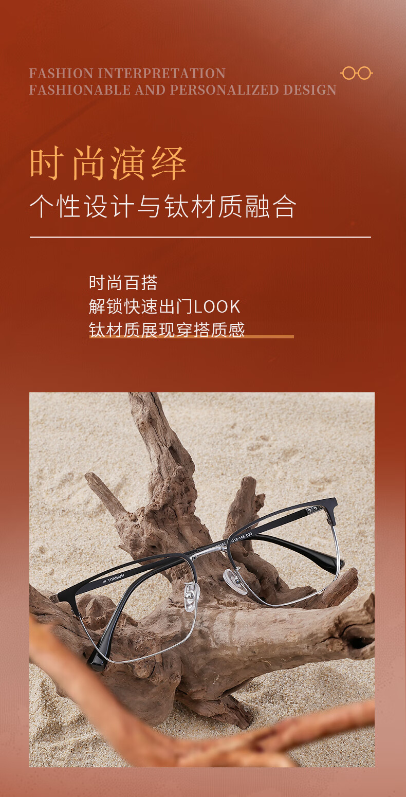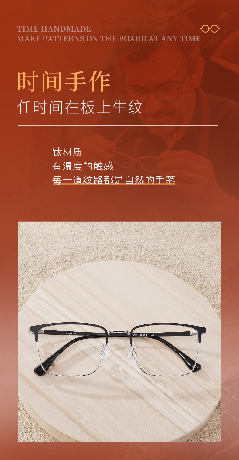 JFJN近视眼镜男款时尚半框眼镜钛材质防蓝光眼镜可配度数20363黑银色