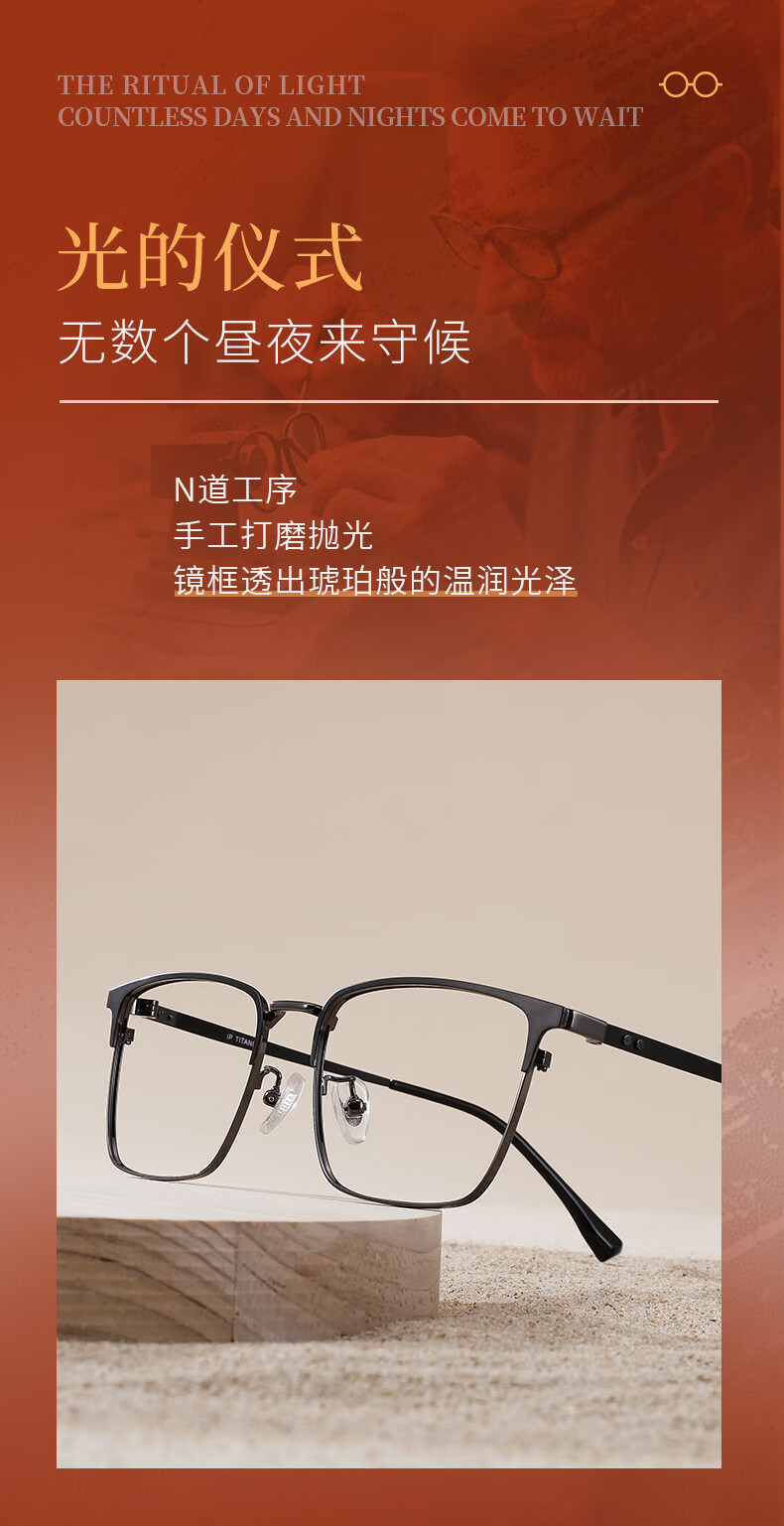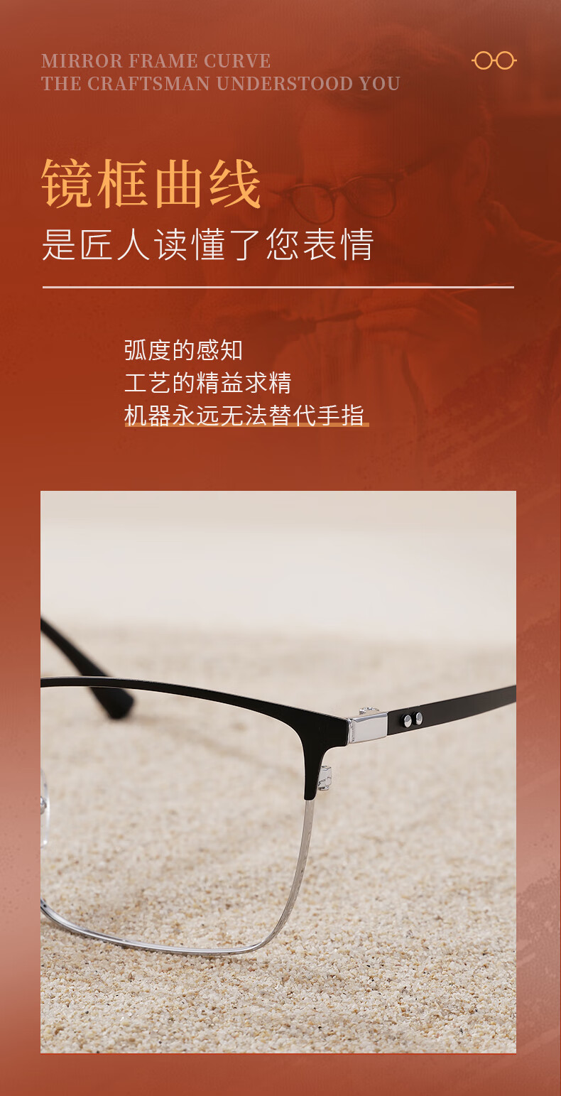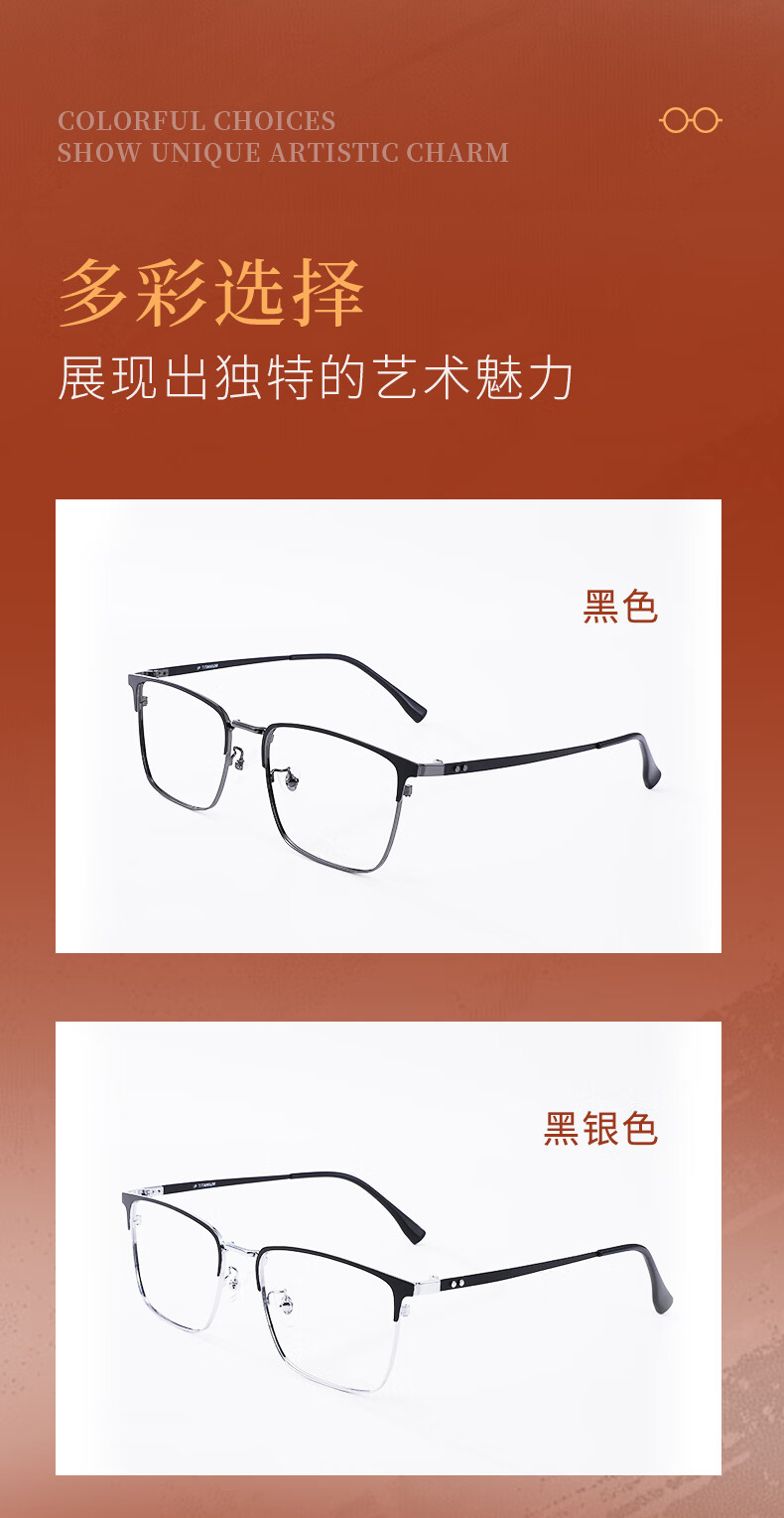 JFJN近视眼镜男款时尚半框眼镜钛材质防蓝光眼镜可配度数20363黑银色