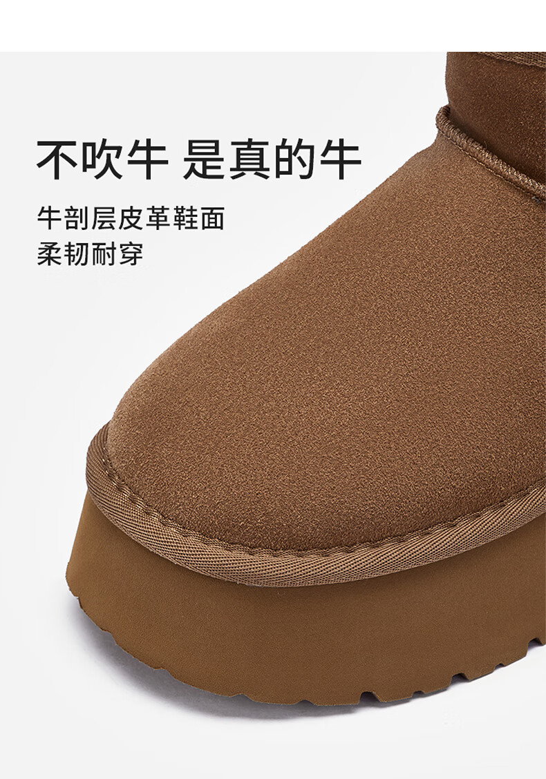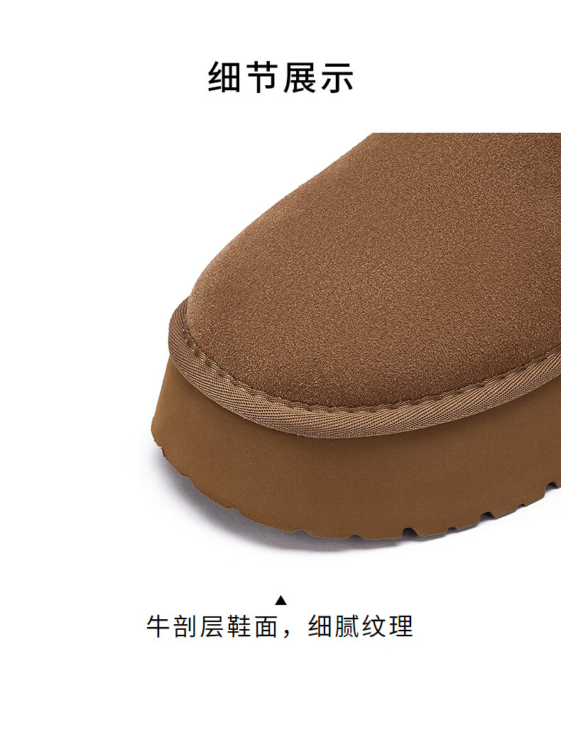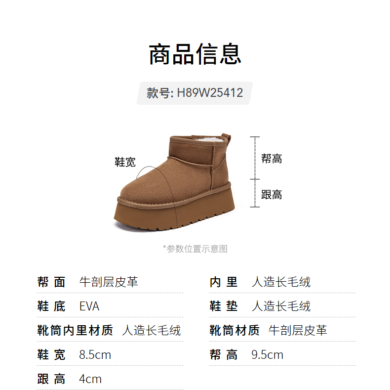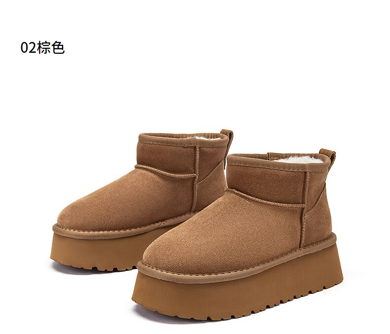 热风(Hotwind)【商场同款】厚底雪地靴2025年冬季新款经典休闲百搭加绒棉鞋女鞋 02棕色 34