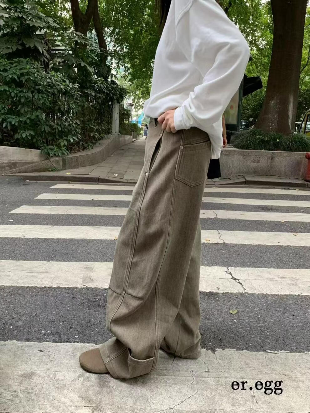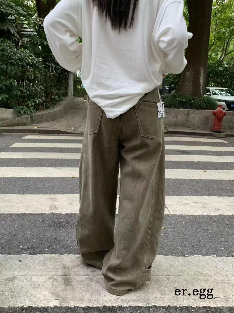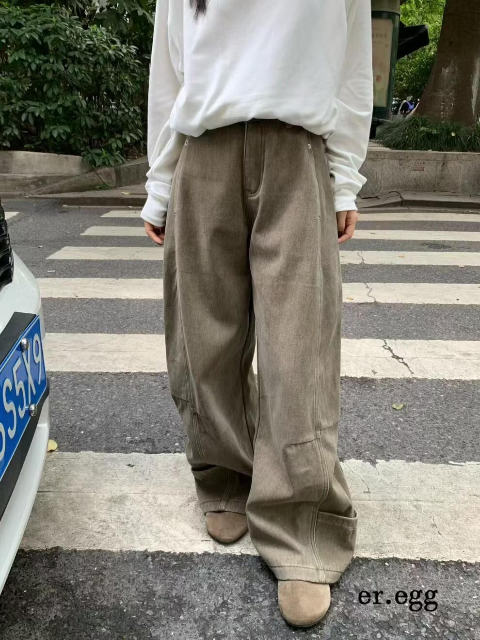MODX春款宽松慵懒工装牛仔裤百搭显瘦休闲弯刀裤女 卡其色 S