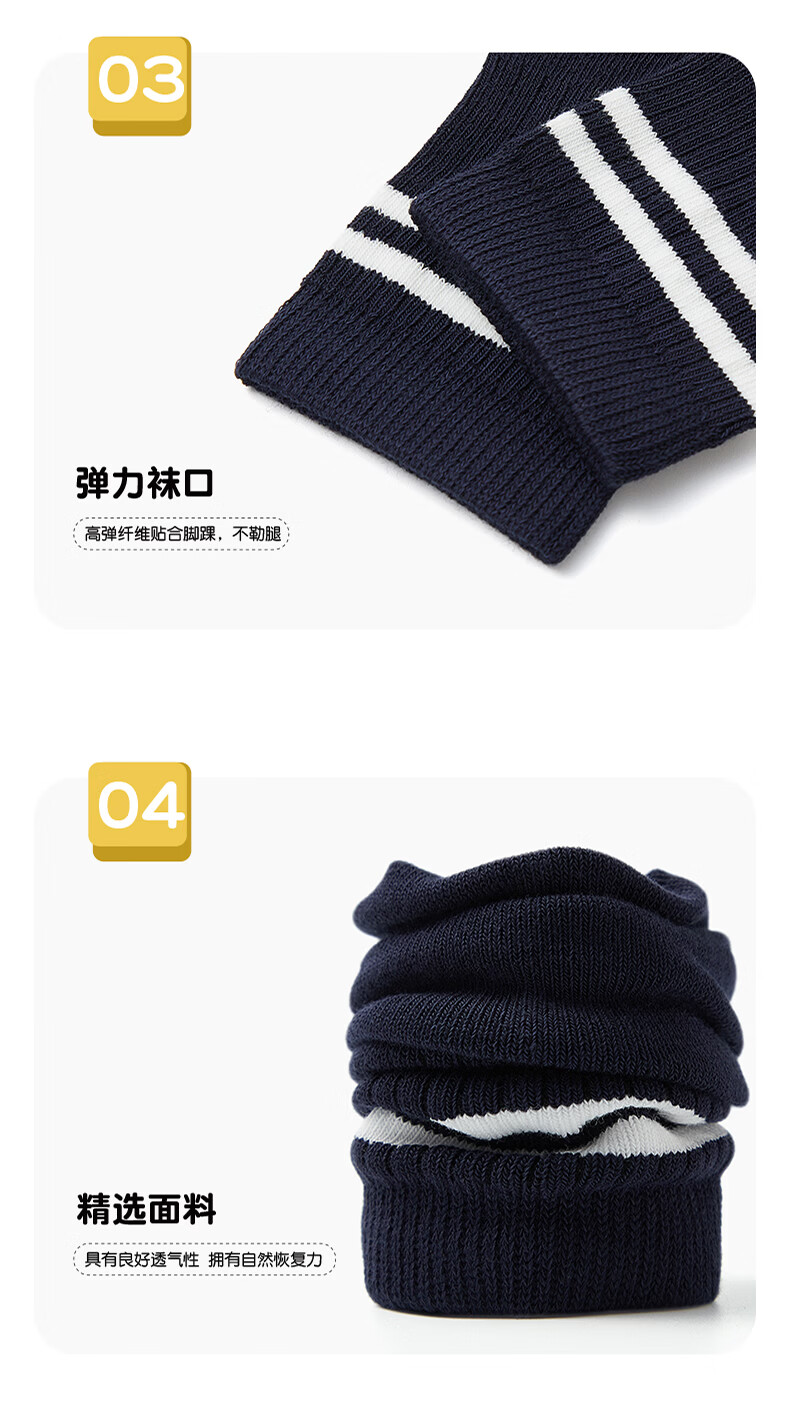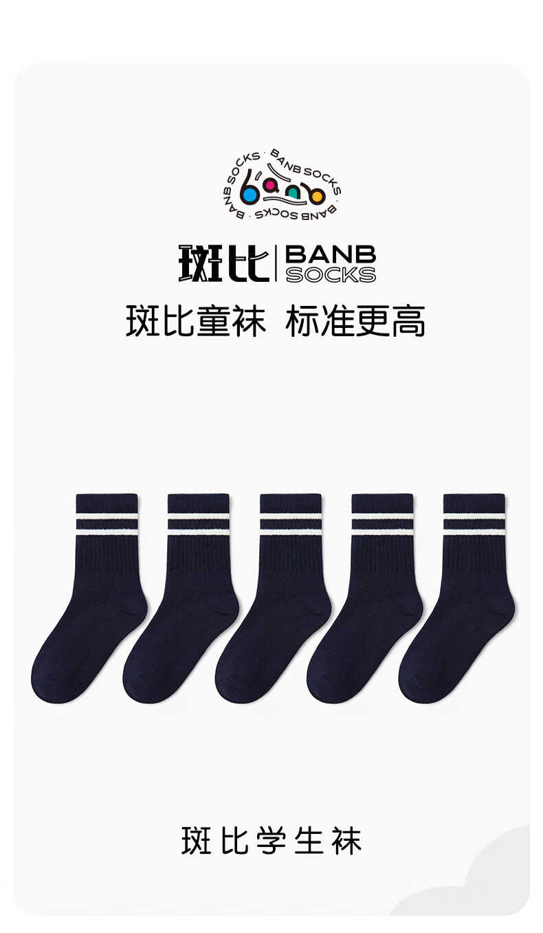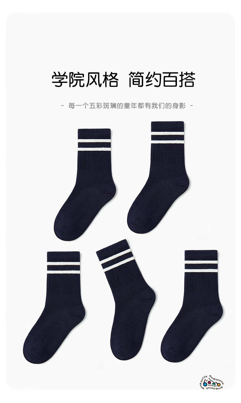 斑比儿童袜子春秋款纯色棉袜男大童秋冬季学生袜无骨袜 BB22528 春秋学院风儿童袜 5双 3-5岁 建议脚码21-26码【16-18】