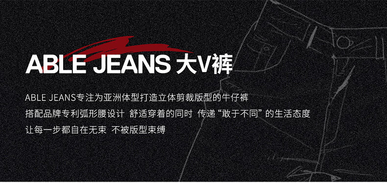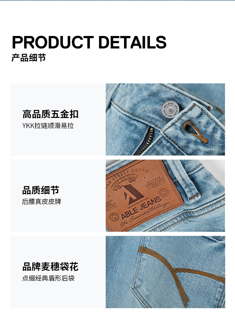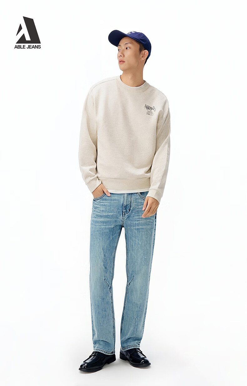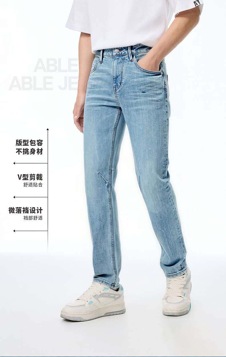 ABLE JEANS【大V裤】26春新款牛仔裤潮流休闲男裤复古百搭裤子弹力丹宁长裤 天青 /801658 32