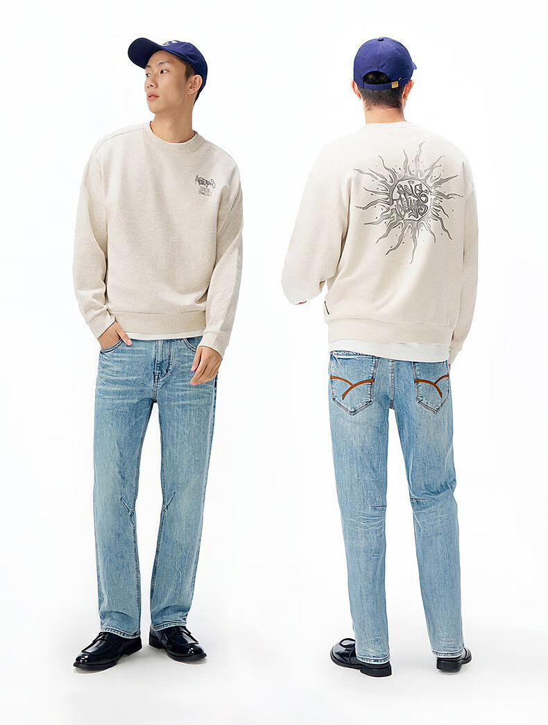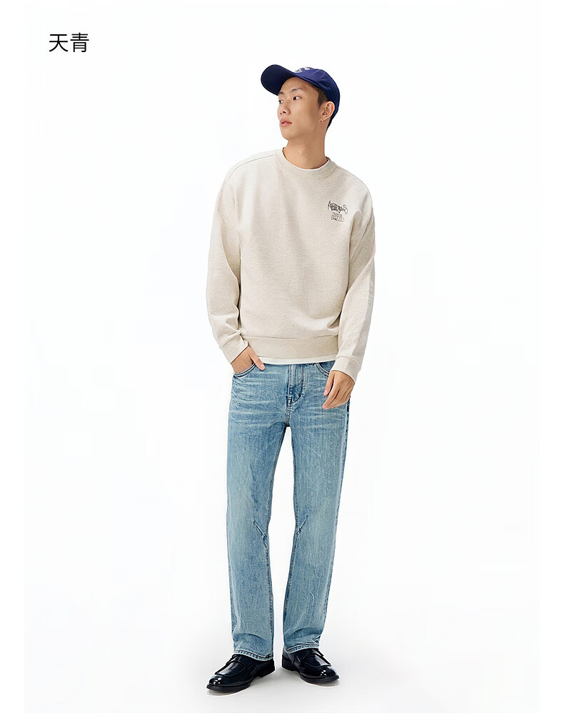 真维斯(Jeanswest)牛仔裤男潮牌新款男高街休闲裤男士2026春秋季百搭垂感直筒长裤男 深牛仔蓝 纯色 31 (2尺4)