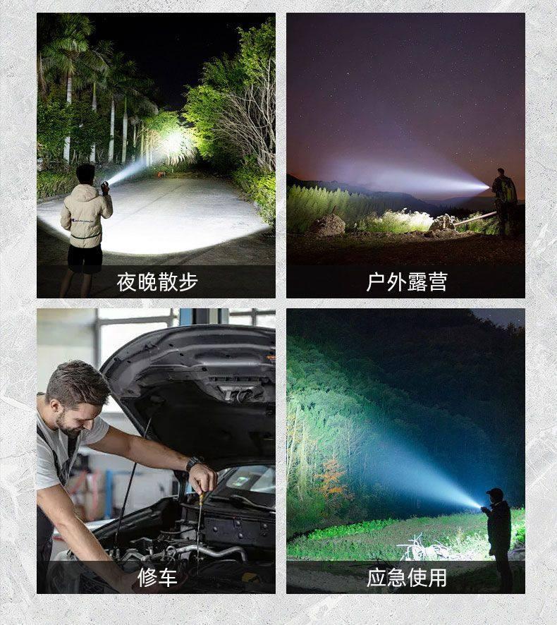 微笑鲨强光手电筒超亮变焦远射户外可充电超长续航大功率便携应急照明灯 爆亮远射【铝合金外壳】伸缩调焦