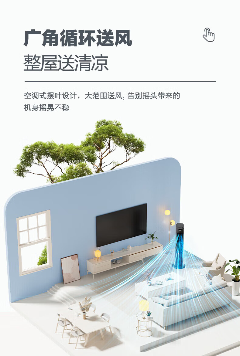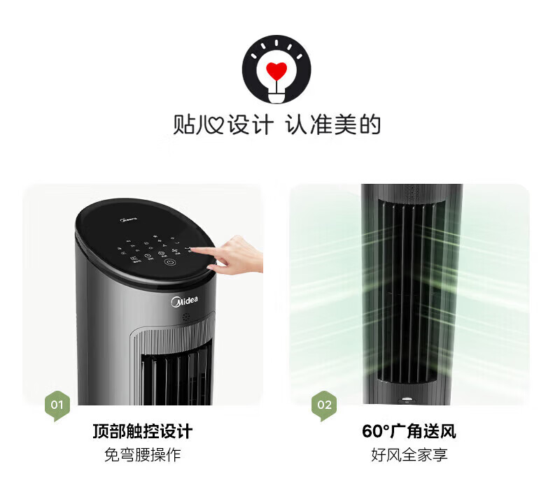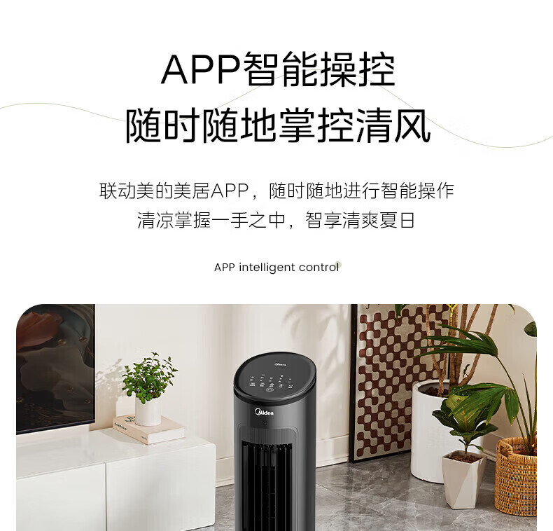 美的(Midea)塔扇家用冷风扇立式低噪无叶风扇卧室客厅空气循环风扇定时预约电扇宿舍节能风扇制冷极速 ZAH09MY【无叶环抱送风】