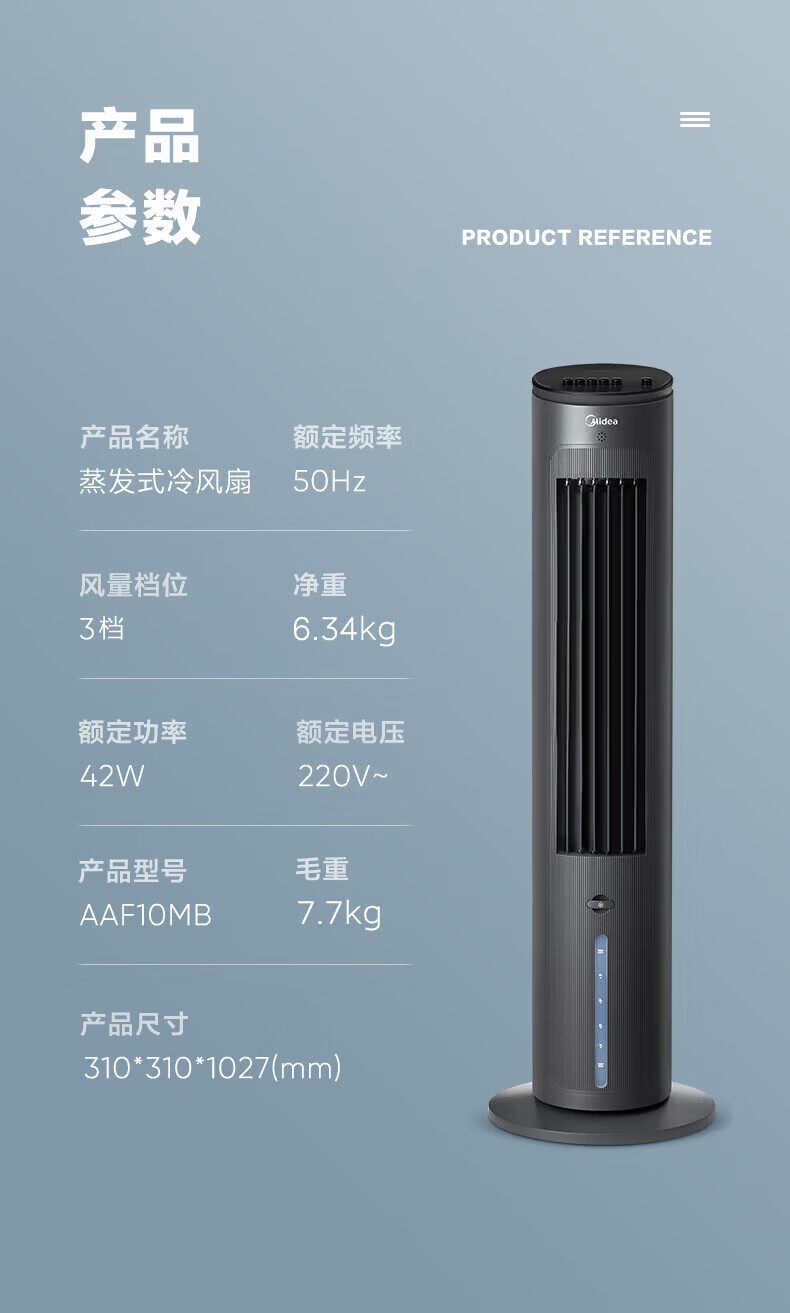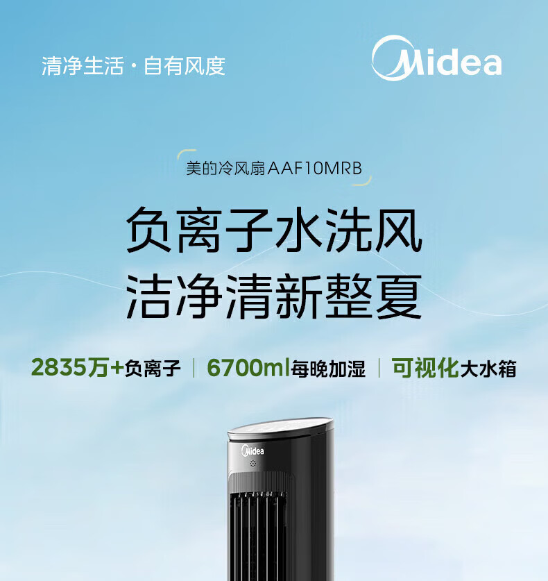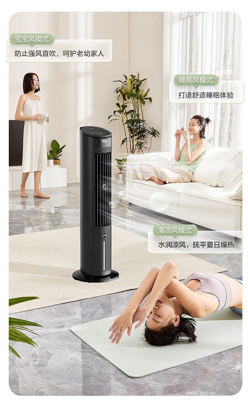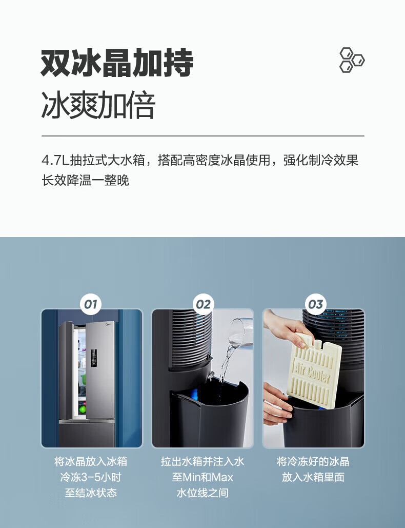 美的(Midea)冷风扇家用冷风机加湿制冷极速降温制冷器空调扇净化水冷无叶塔扇落地冷风机轻音制冷小空调 【白色经典款】