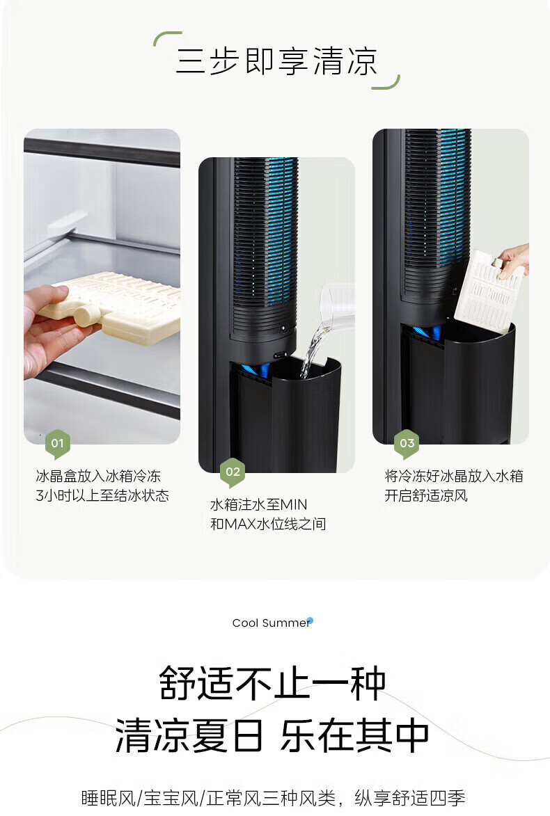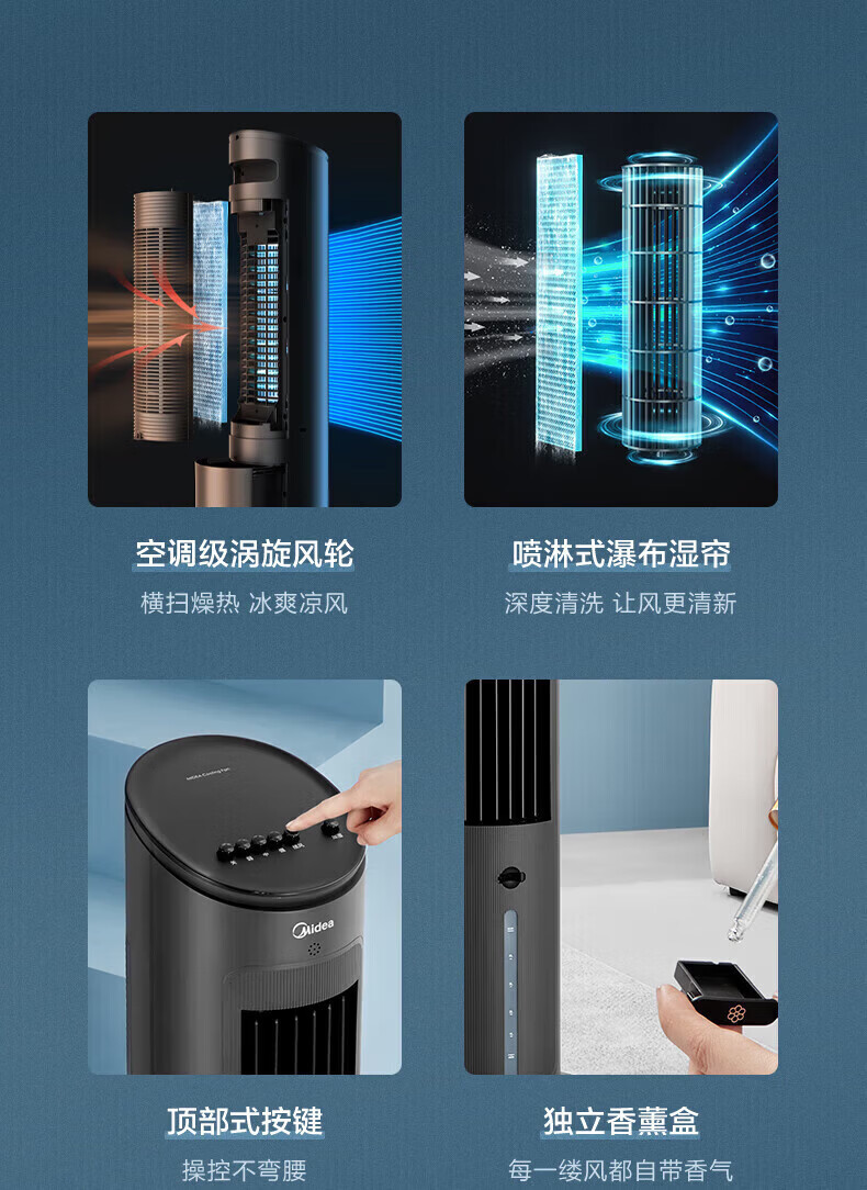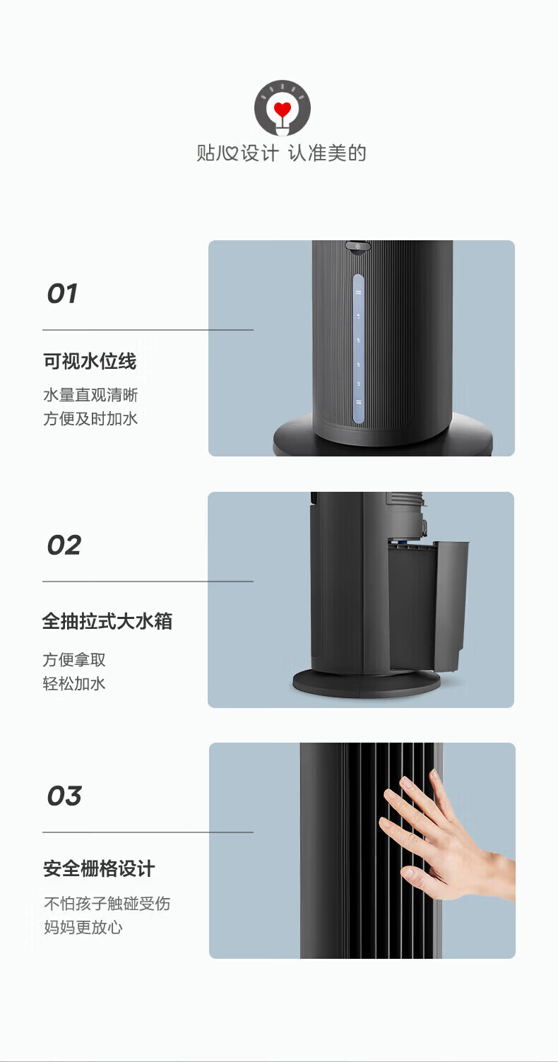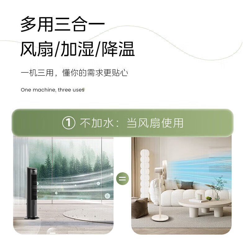 美的(Midea)冷风扇家用冷风机加湿制冷极速降温制冷器空调扇净化水冷无叶塔扇落地冷风机轻音制冷小空调 【白色经典款】