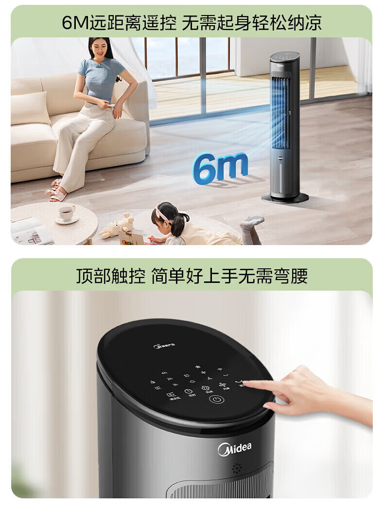 美的(Midea)立式冷风扇家用商业两用落地水冷塔扇大容量水箱制冷空调冷气机静音空气循环空调扇降急速 遥控语音热销款【7L容量+10小时定时】
