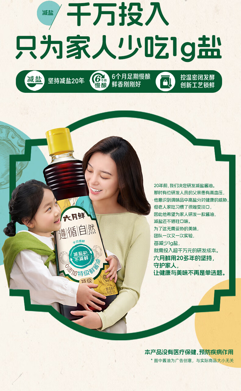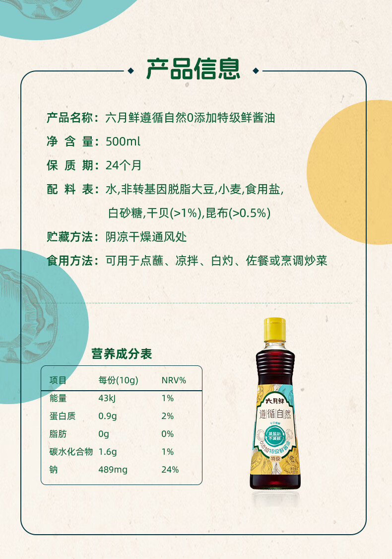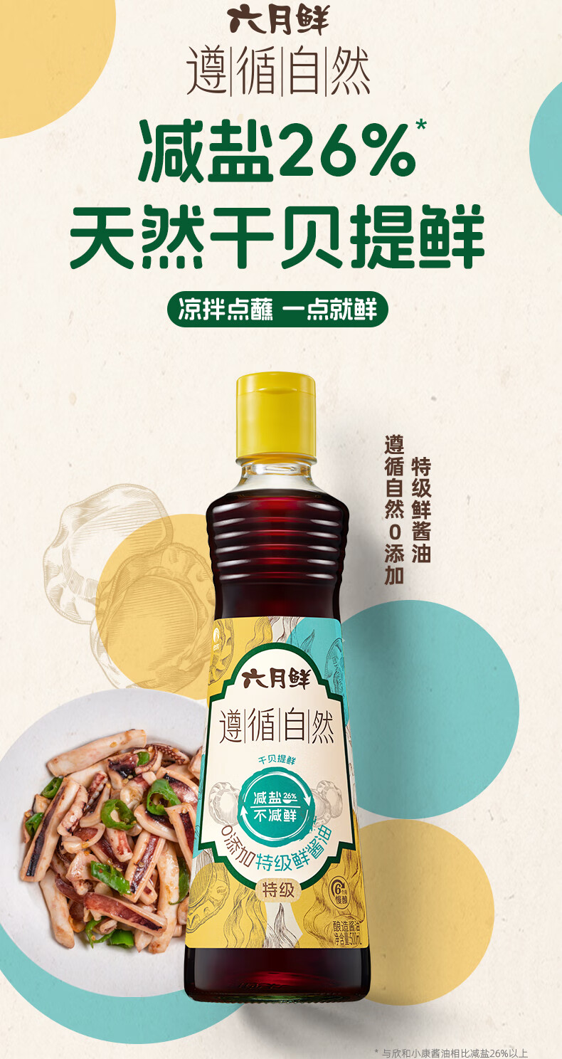 六月鲜遵循自然特级鲜酱油500ml【减盐 特级酱油】欣和出品