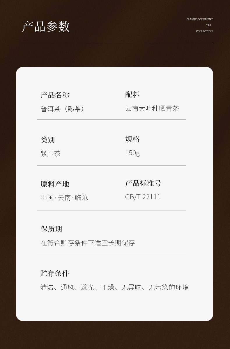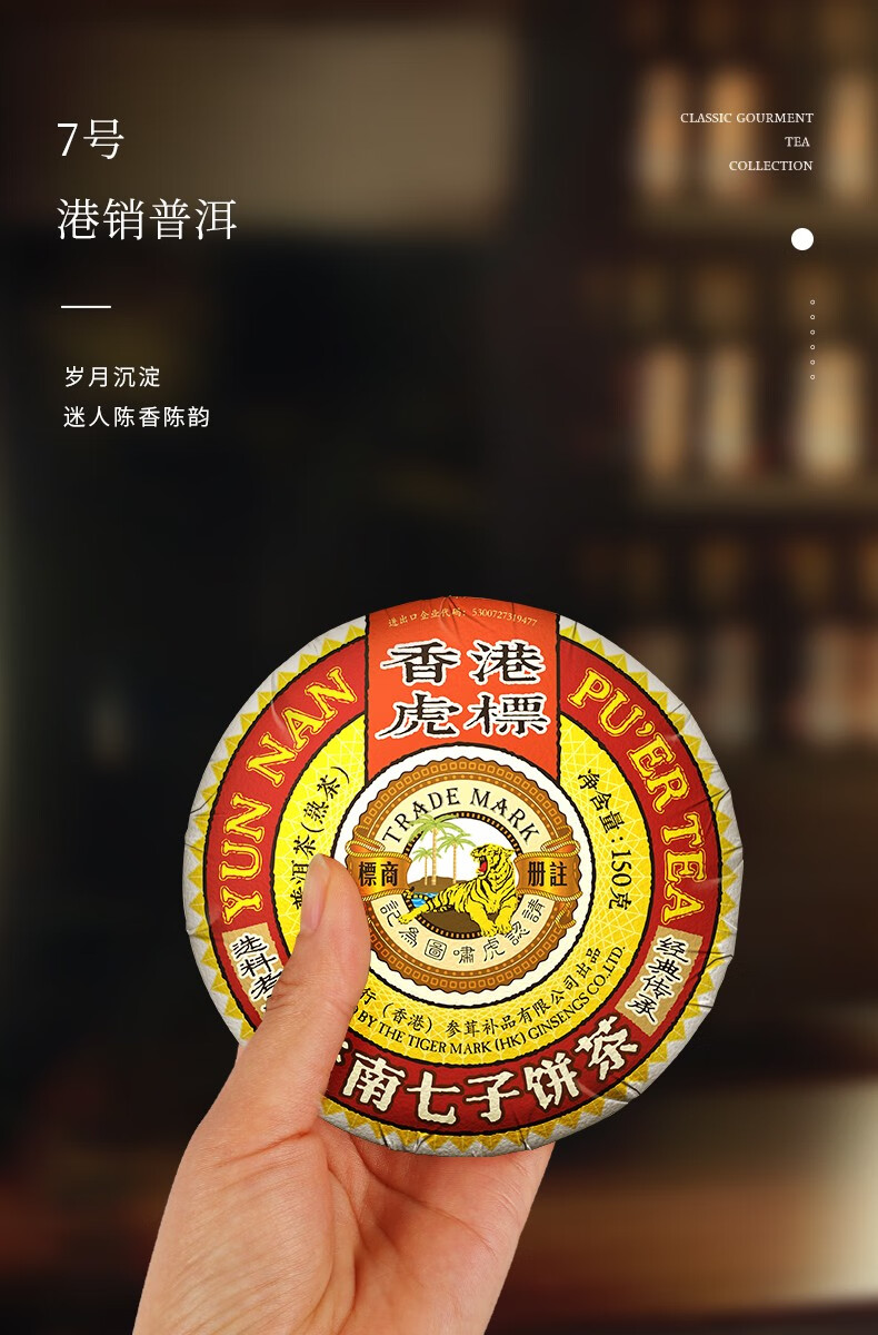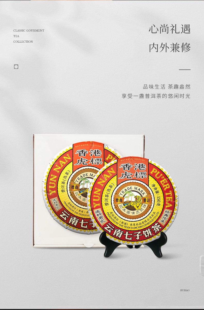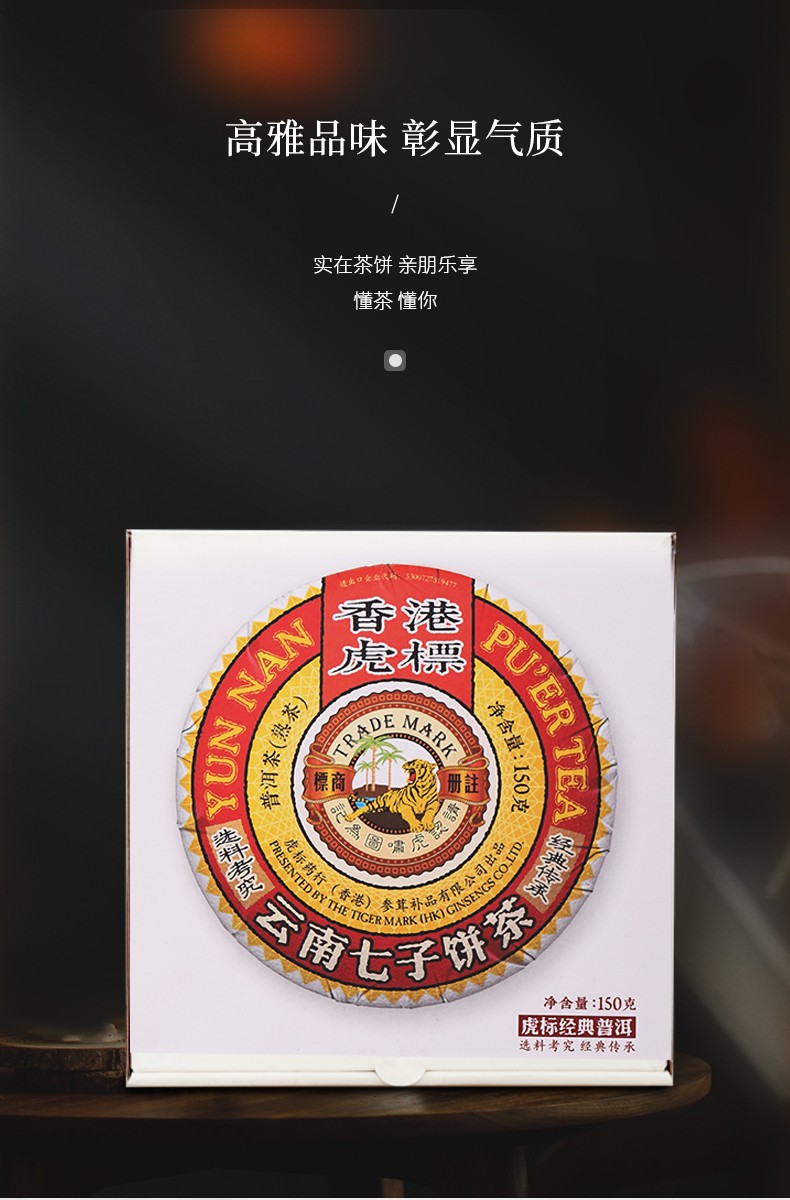 虎标 香港品牌 茶叶普洱茶熟茶 饼茶盒装150g/饼 经典标杆口粮茶自饮