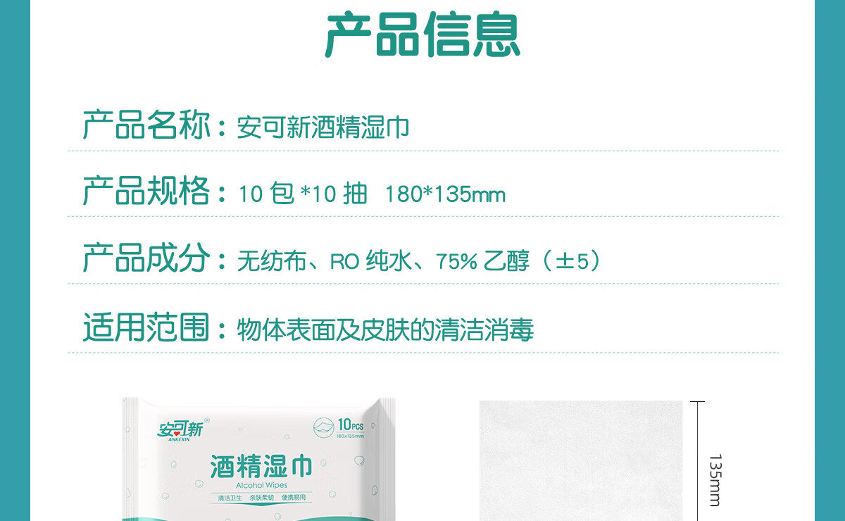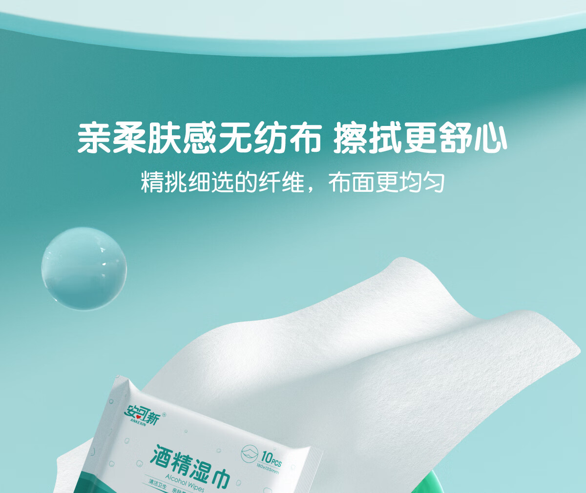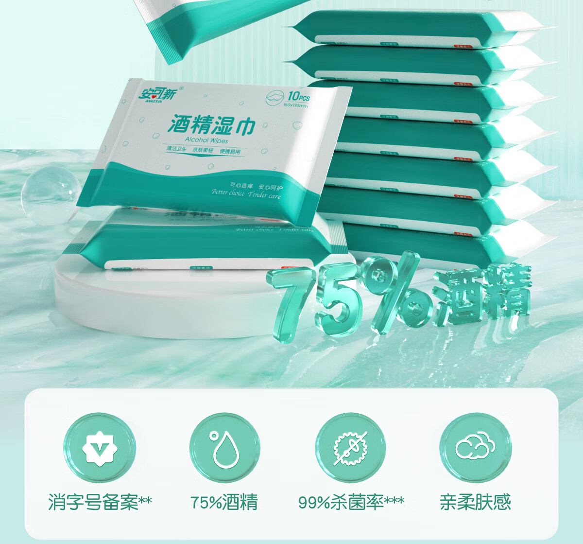 安可新 75%酒精湿巾【10抽*10包】大尺寸杀菌清洁湿纸巾儿童上学便携装