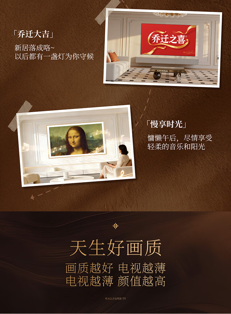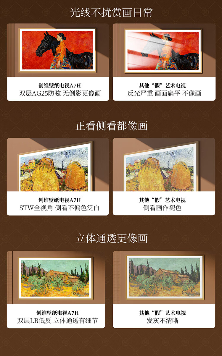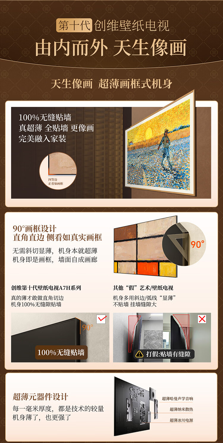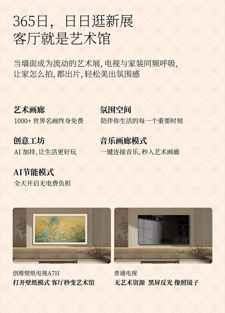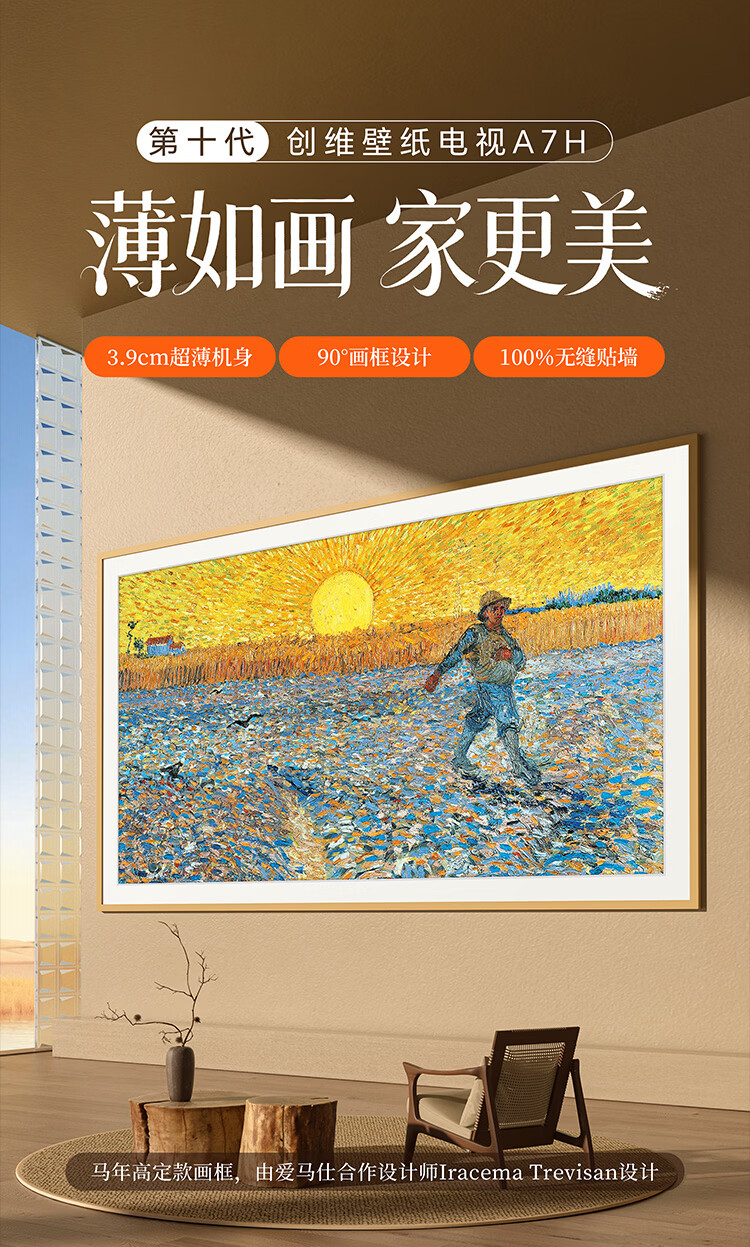 创维电视65A7H 65英寸艺术壁纸电视Mini LED 3.9cm超薄无缝贴墙 平板电视机 家电国家补贴 A7F升级款