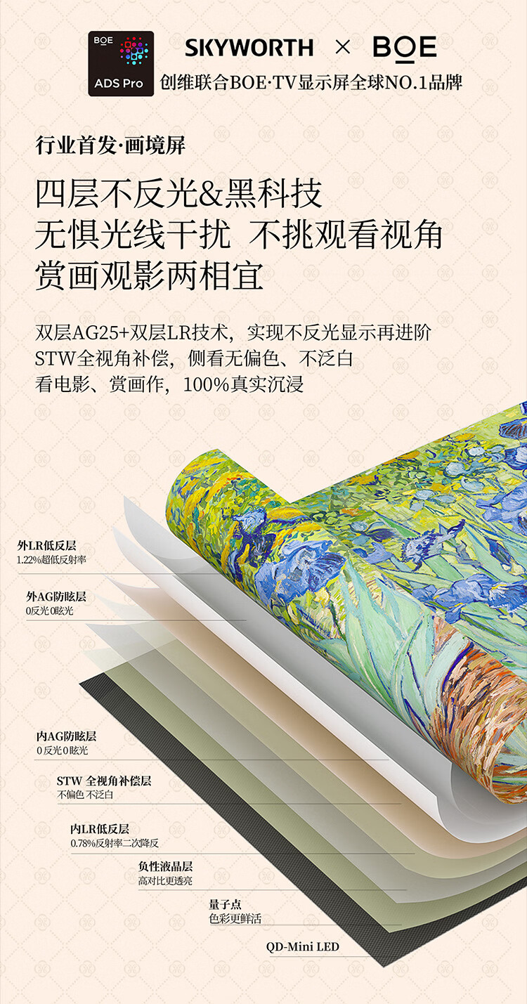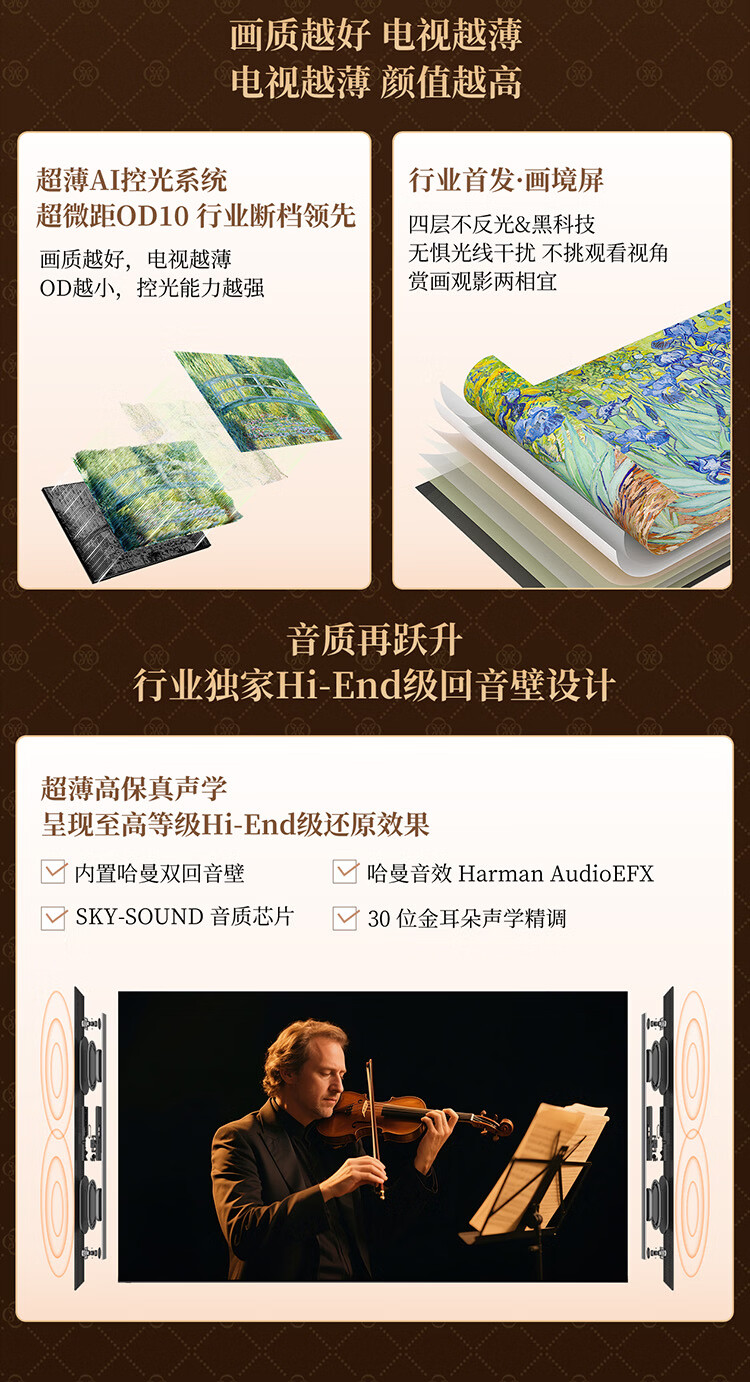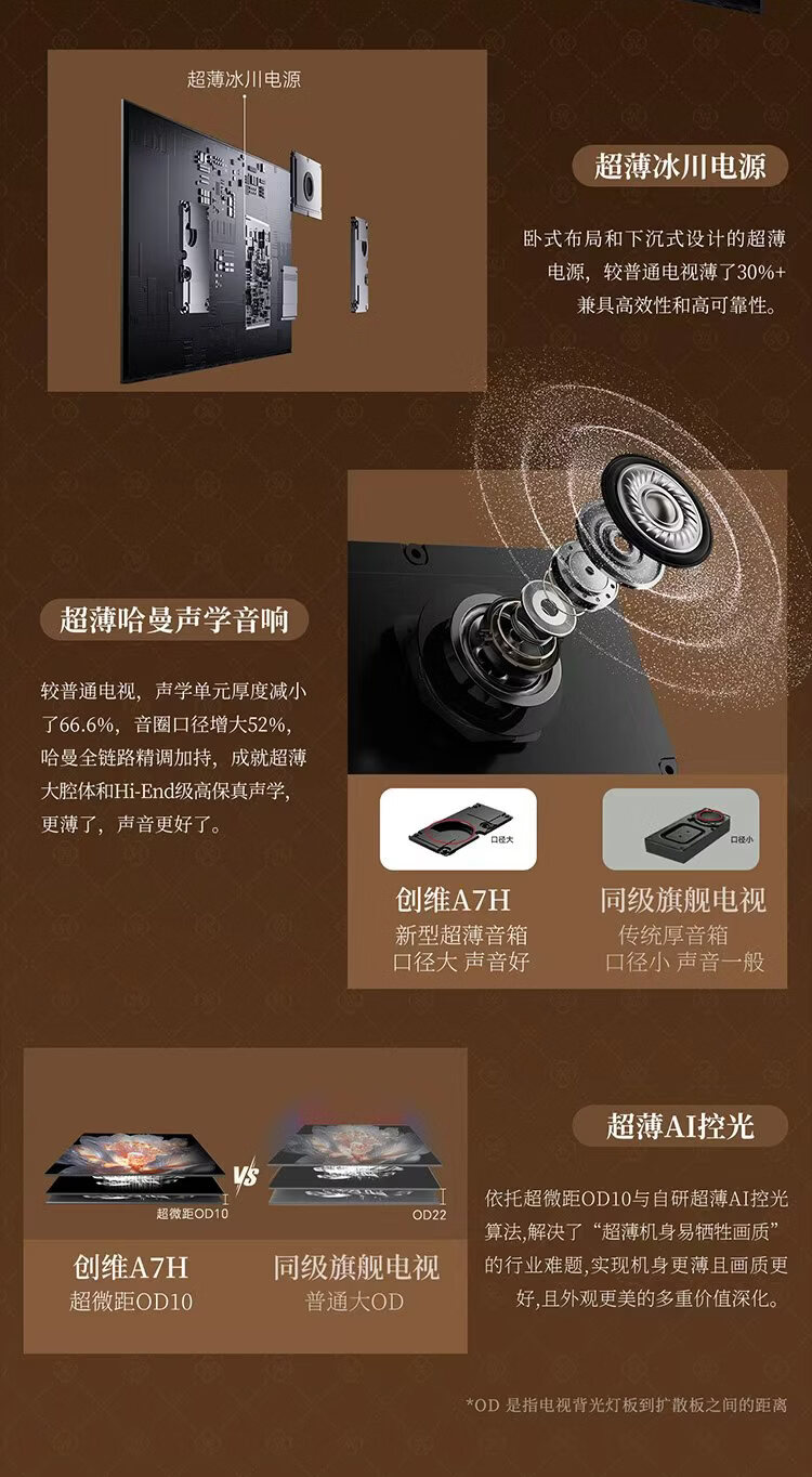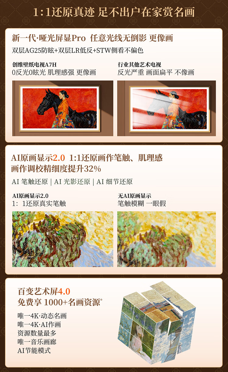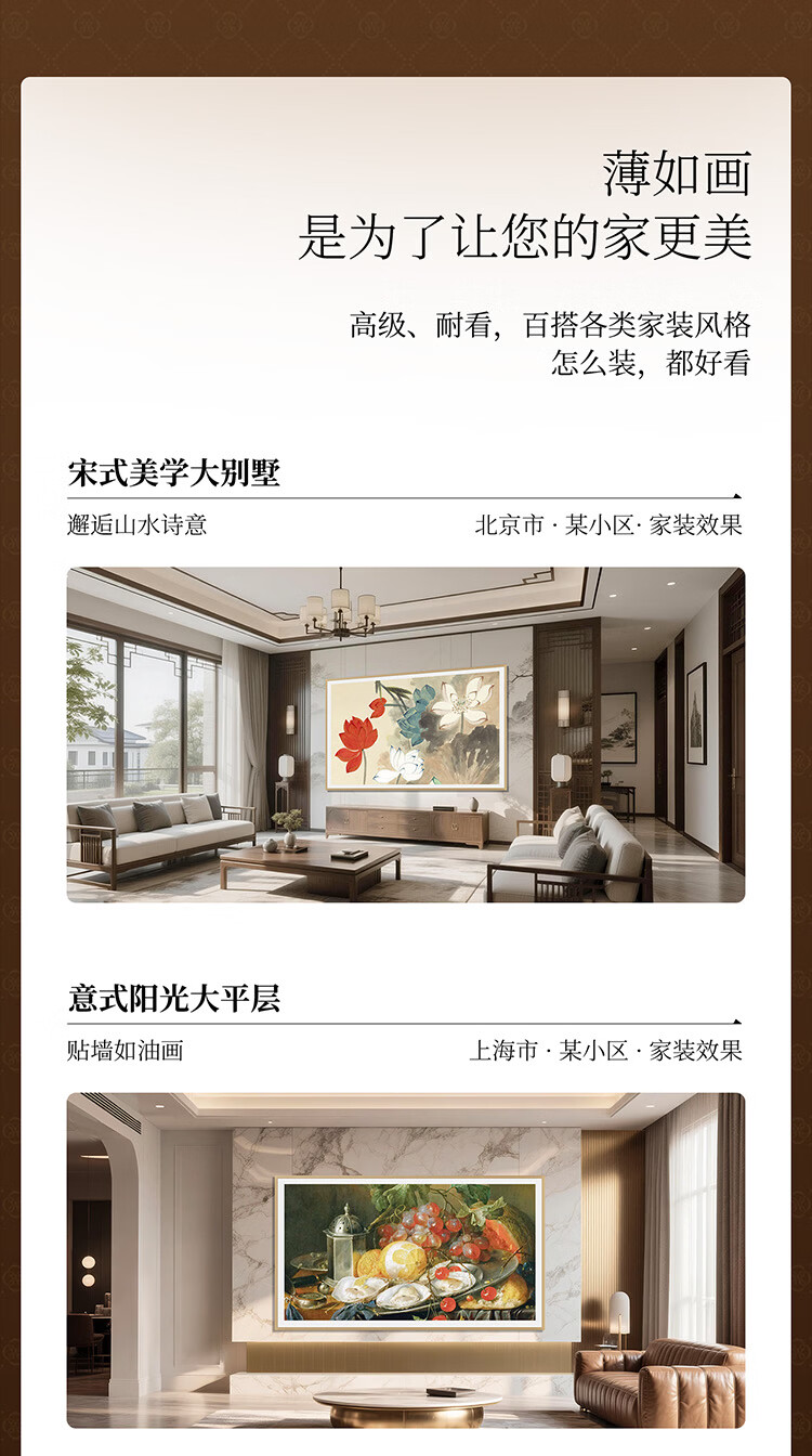 创维电视65A7H 65英寸艺术壁纸电视Mini LED 3.9cm超薄无缝贴墙 平板电视机 家电国家补贴 A7F升级款