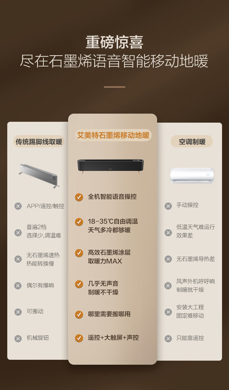 大宇(DAEWOO)石墨烯踢脚线取暖器/电暖器/电暖气/暖气片/烤火炉家用卧室加湿语音防水电暖风净化移动地暖 DY-QN01(石墨烯语音款)