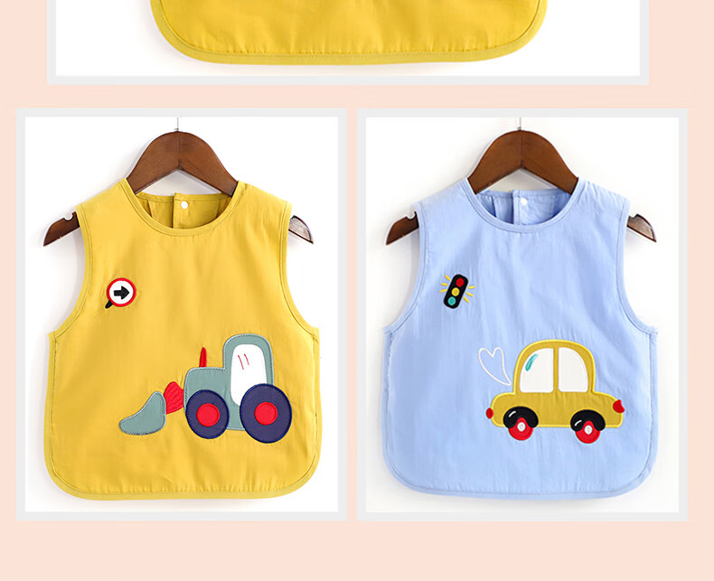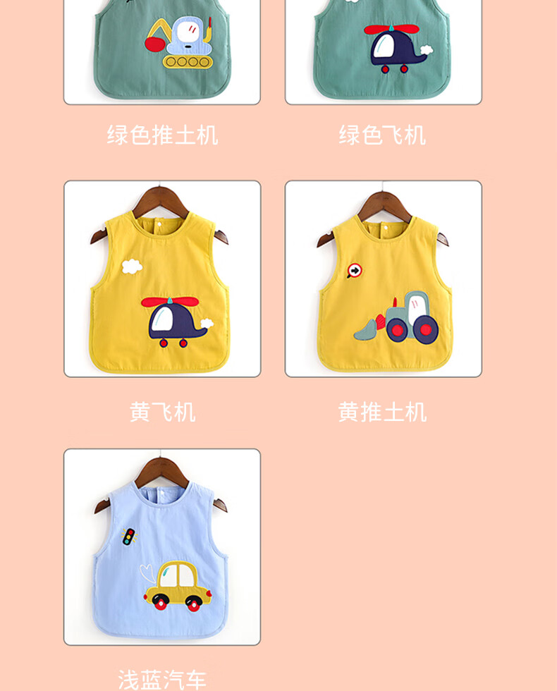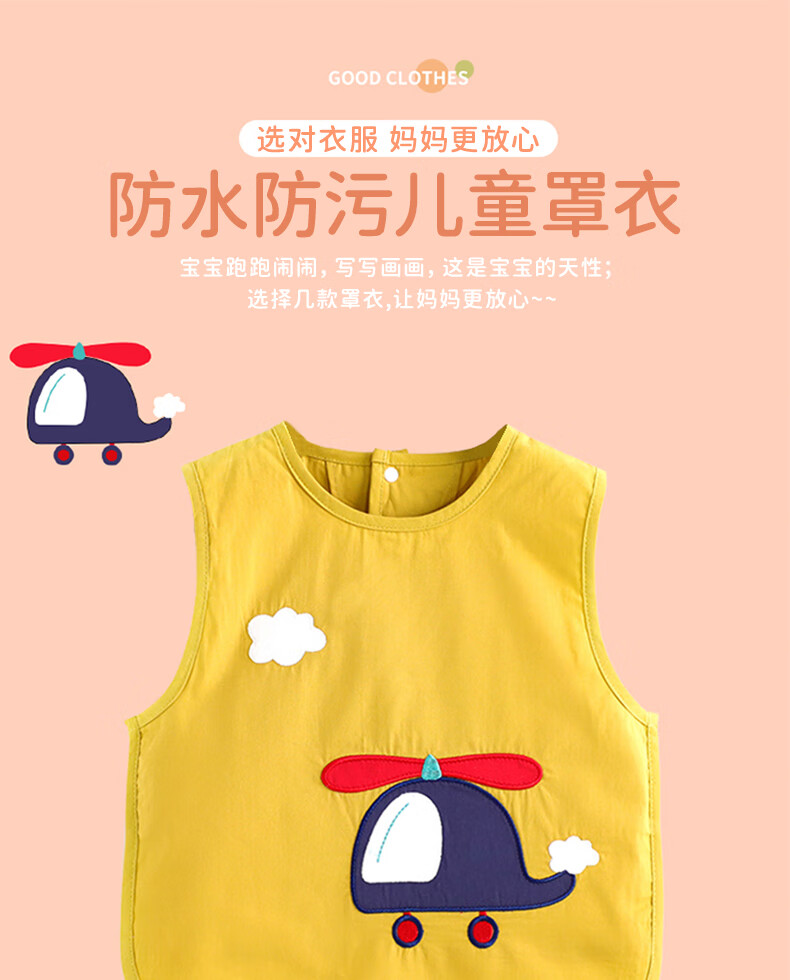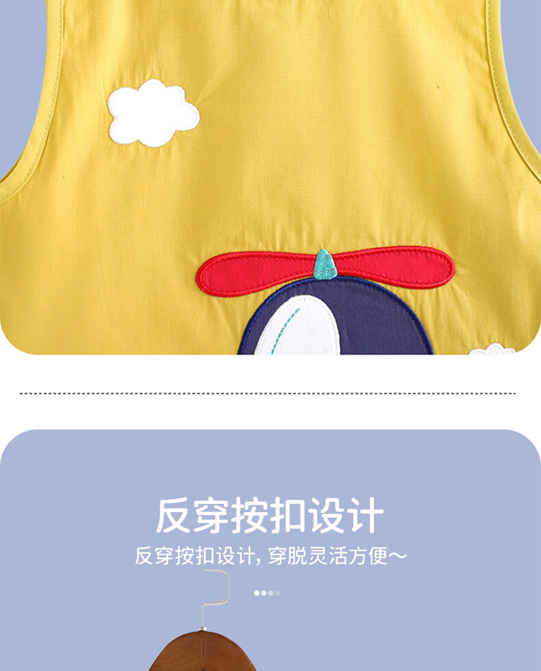 贝肽斯儿童罩衣冬季薄款无袖围裙男女宝宝婴儿防污防水围嘴饭兜口水兜 黄色飞机 90 (1-2岁,适用身高75-85cm)