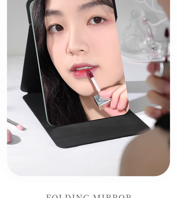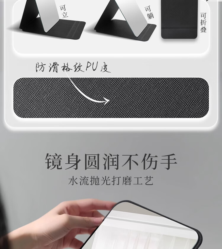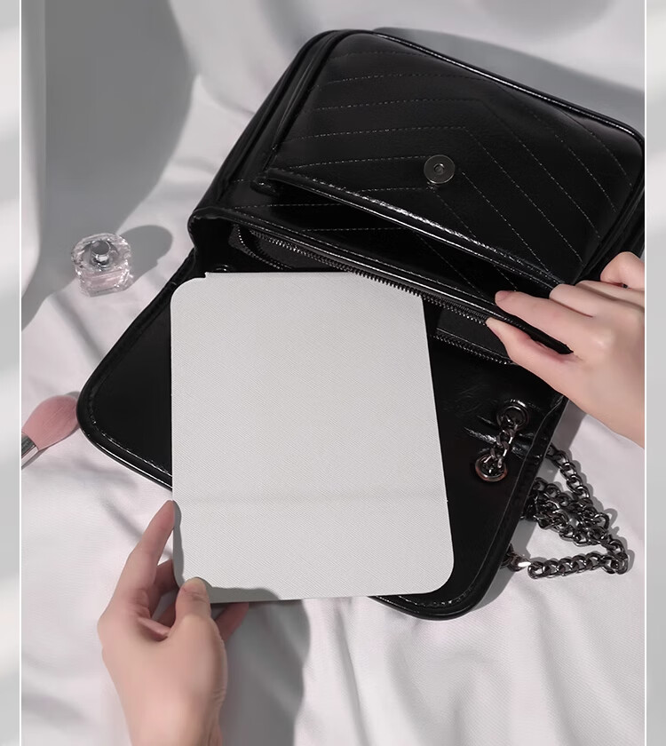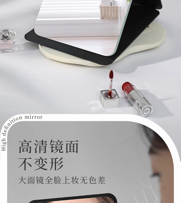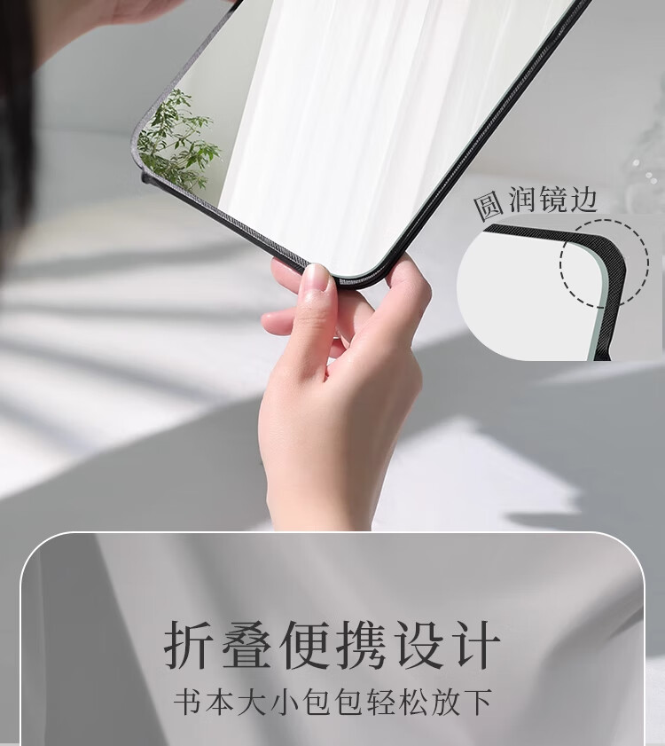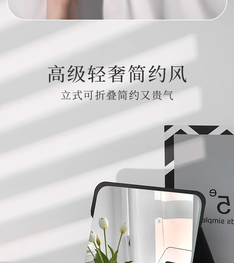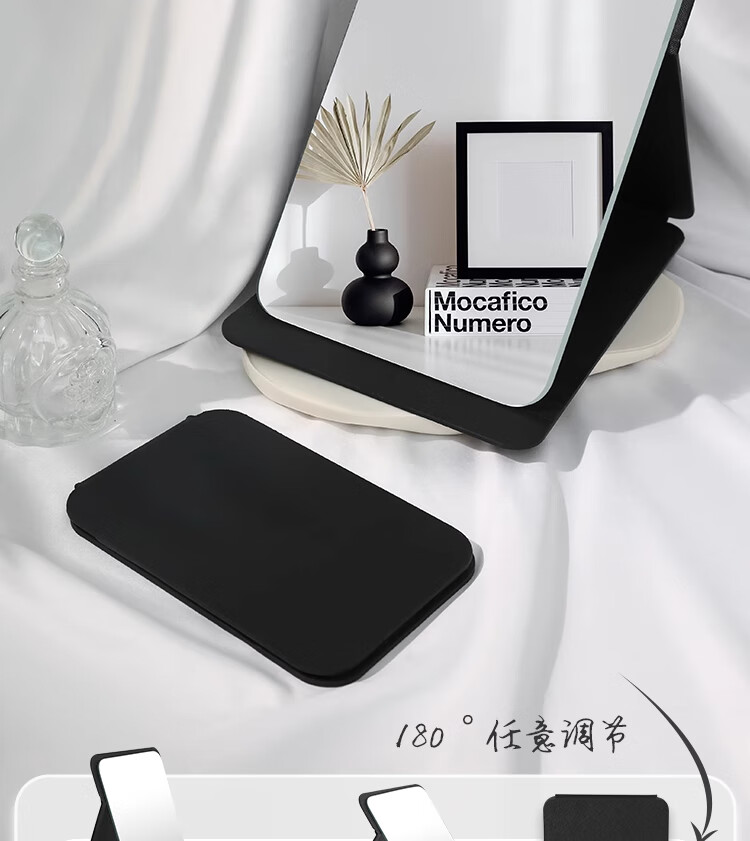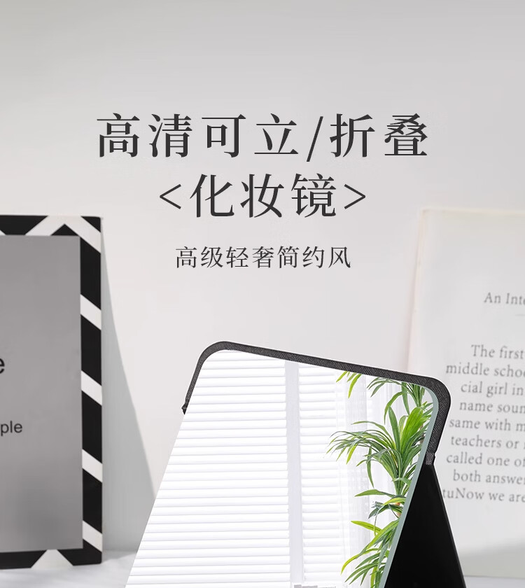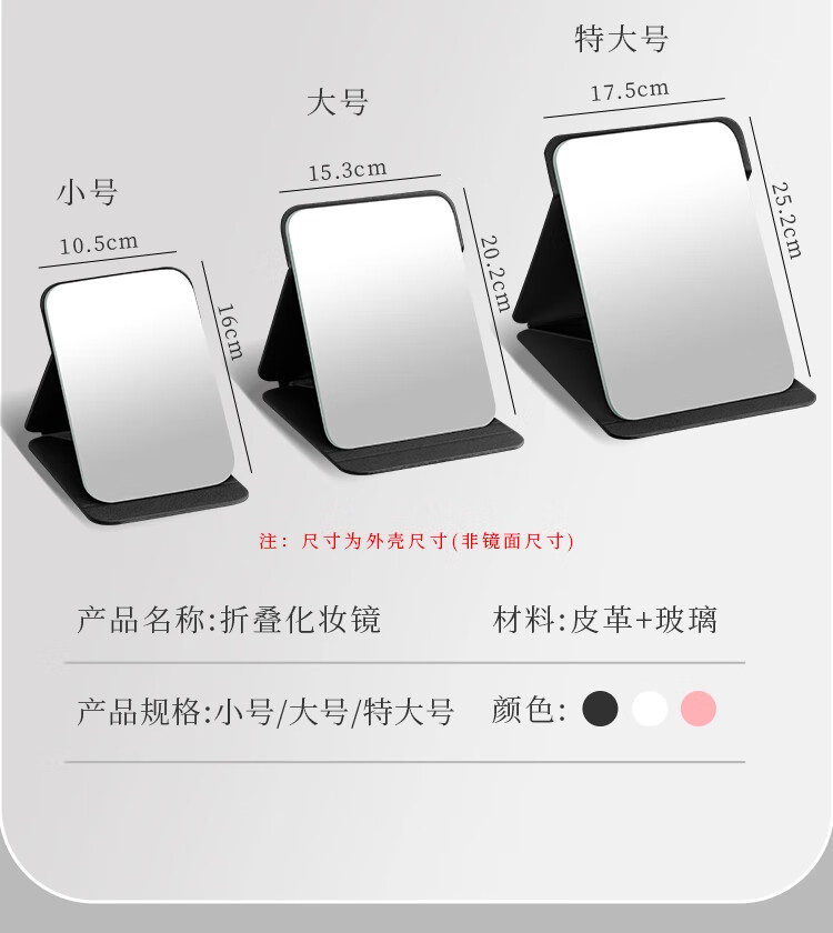 折叠翻盖式小镜子女随身化妆镜台式桌面可立学生宿舍便携办公室 白色-小号(10*7cm)