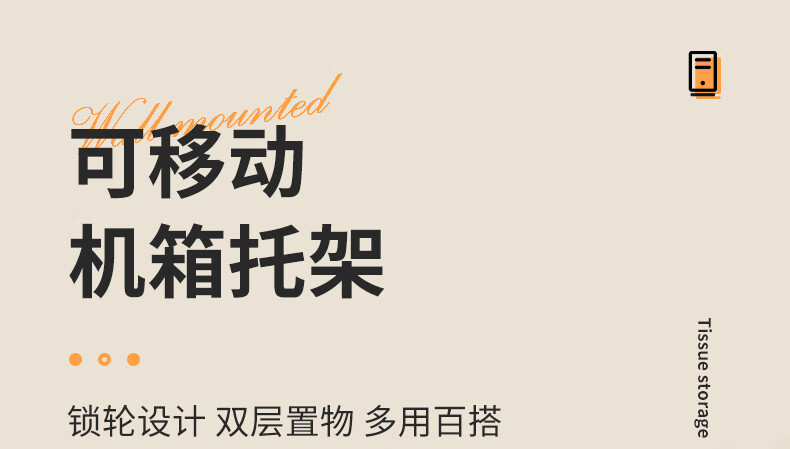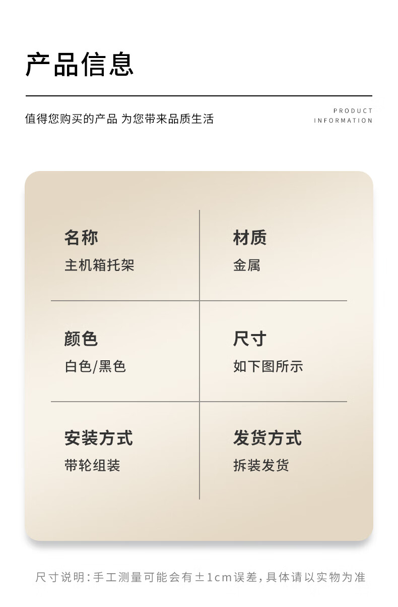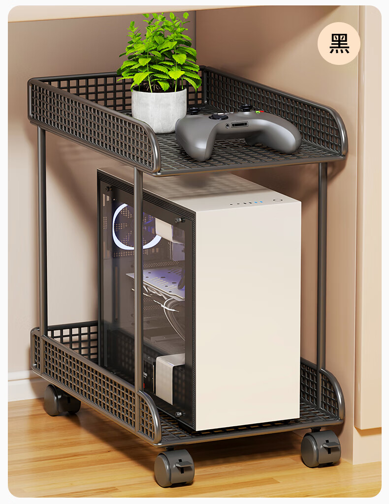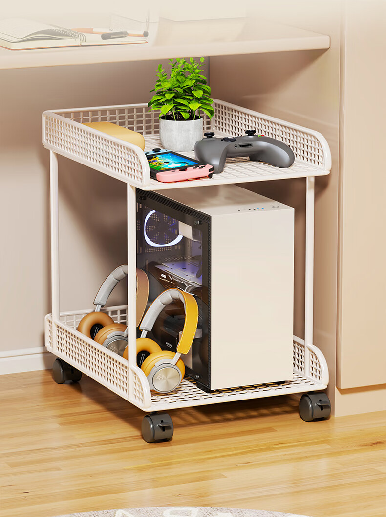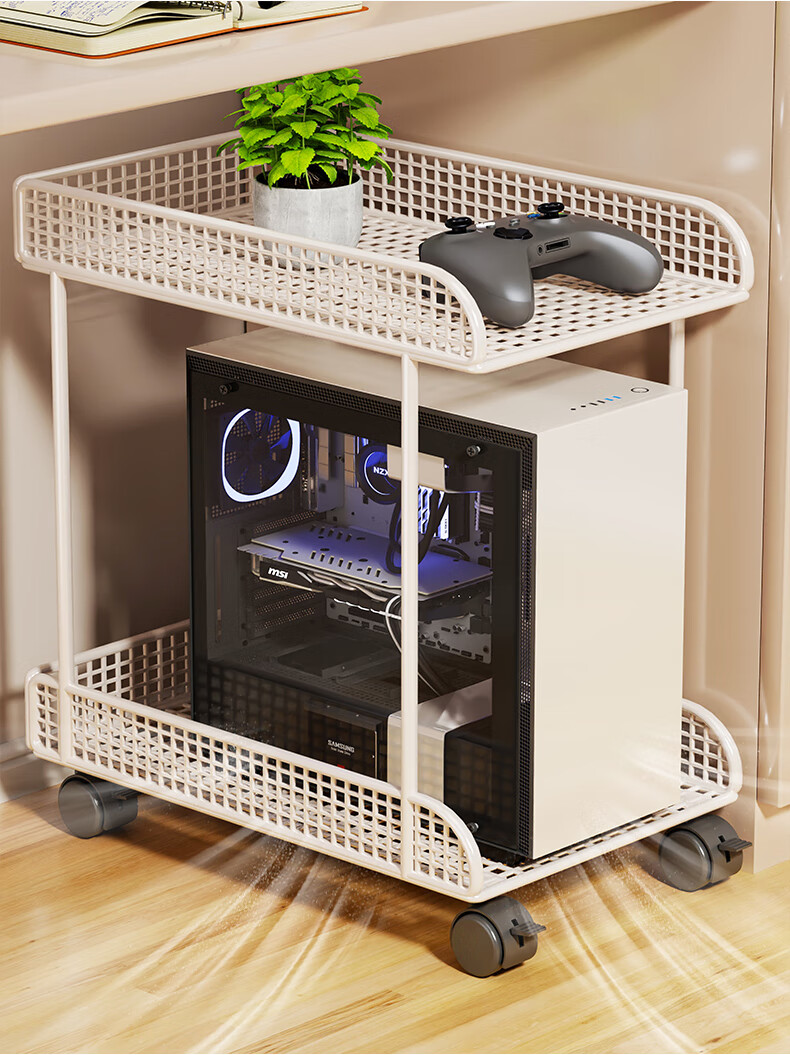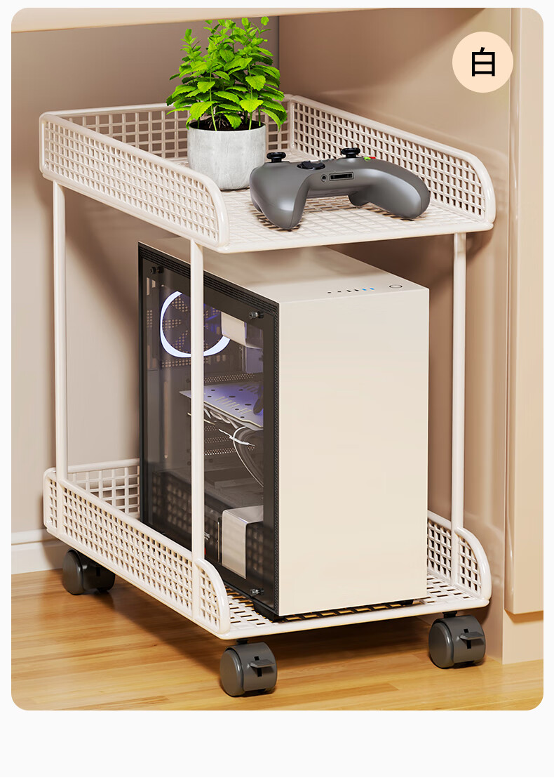 胖东来同款电脑主机放置架托架置物架台式机箱移动底座机架双层桌 白色小号单层主机架【可移动带刹