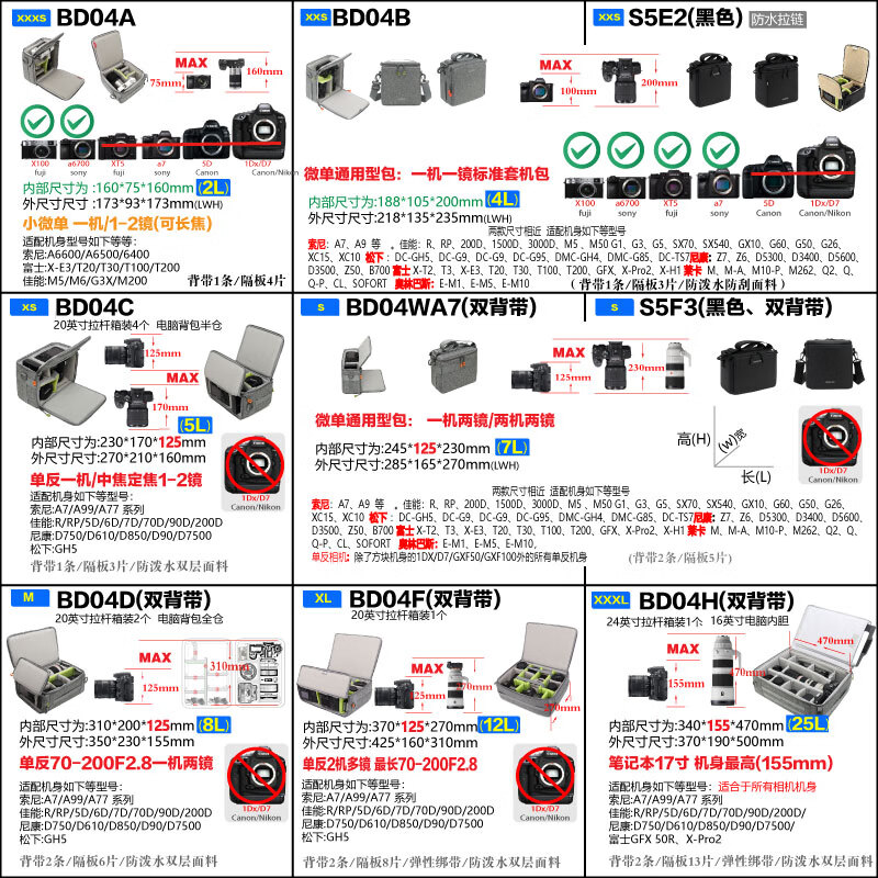 赛腾S5F3黑色防水抗压一机两镜相机包双开结构 适于索尼a7/佳能R/5D系等