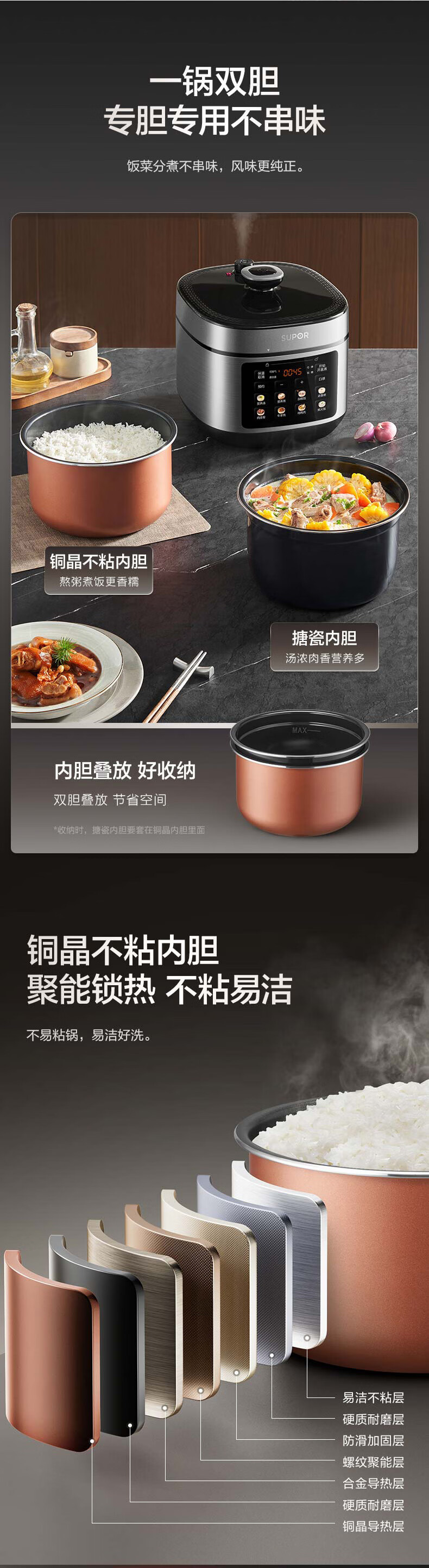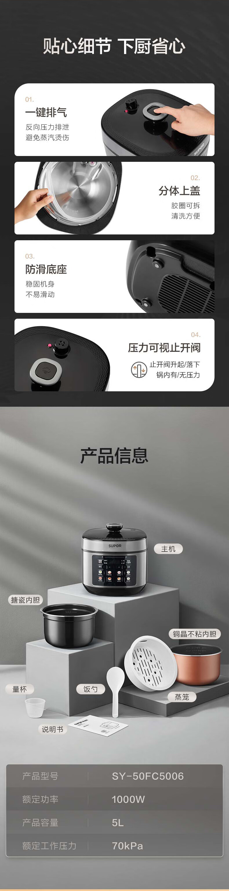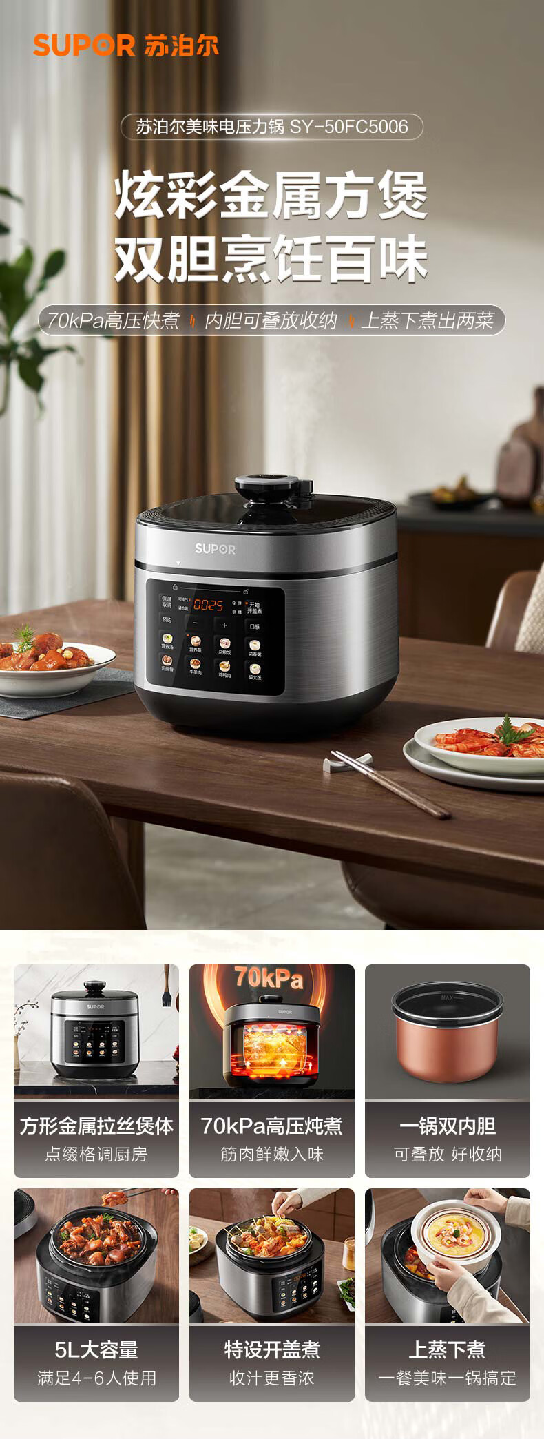 苏泊尔(SUPOR)【厨房好年货】电压力锅5L 智能控压开盖收汁一锅双胆预约4-6人家用电饭煲高压锅SY-50FC5006